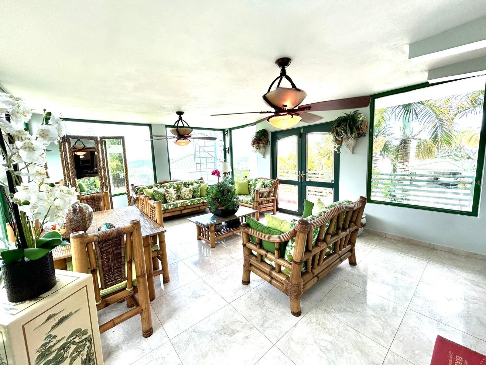 Uma propriedade excepcional que combina elegância e conforto num cenário natural incomparável. Esta espaçosa residência destaca-se pelos seus quartos generosos, cada um desenhado com um toque moderno e luminoso, oferecendo o espaço perfeito para o conforto de toda a família. O mirante é uma verdadeira joia, proporcionando vistas panorâmicas deslumbrantes do majestoso Mar do Caribe e da exuberante Floresta Nacional El Yunque. Imagine acordar todos os dias com paisagens naturais que o enchem de paz e energia. No exterior, a piscina é ideal para relaxar e desfrutar do clima tropical, enquanto o mirante convida a partilhar momentos inesquecíveis com a família e amigos, seja numa tarde de churrasco ou numa noite estrelada. O imóvel conta ainda com garagem com capacidade para quatro veículos, oferecendo comodidade e segurança para sua família e convidados. É a casa perfeita para quem procura espaço, luxo e ligação com a natureza, tudo a poucos minutos da cidade.