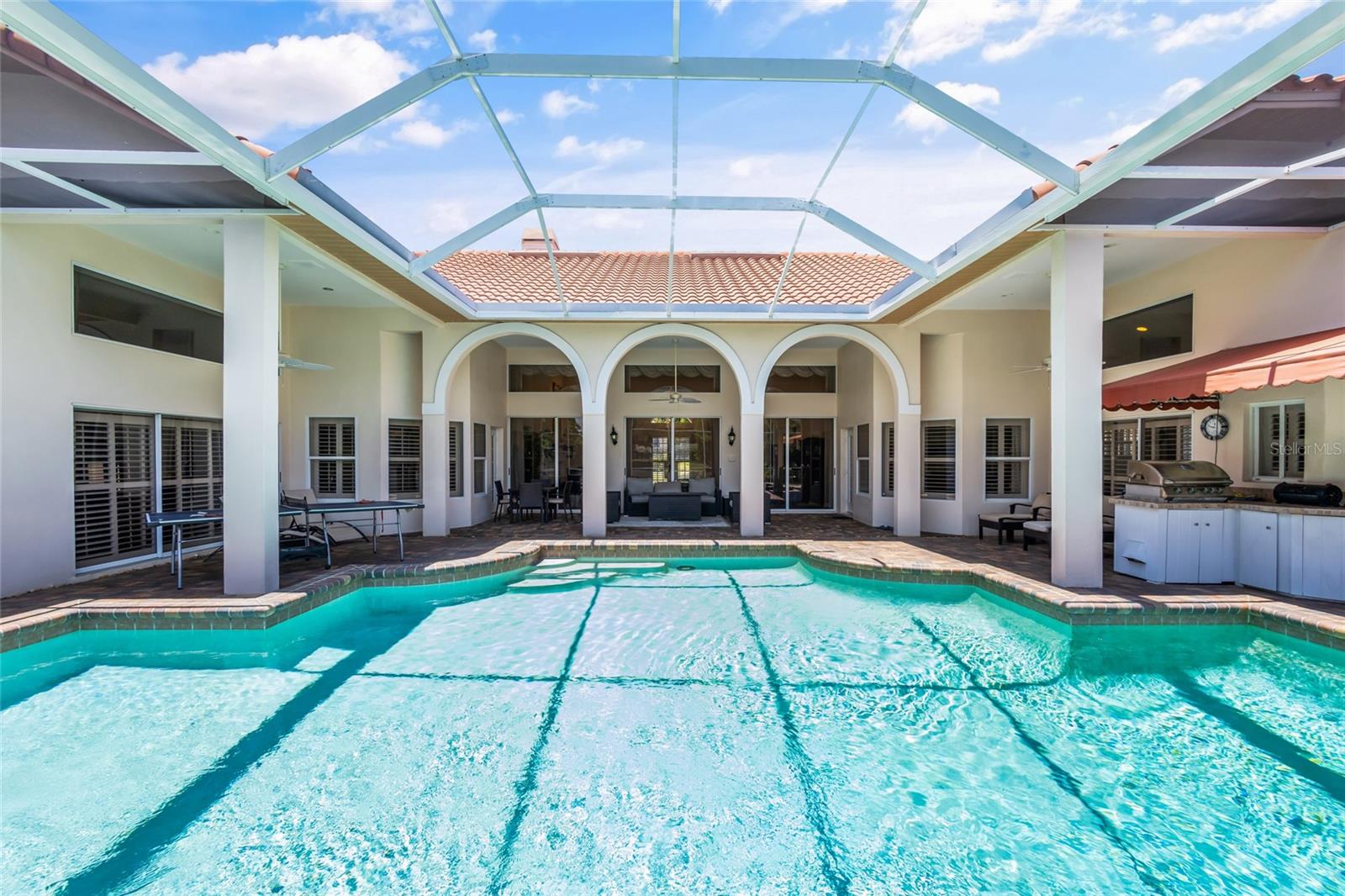 Melhoria de preço! Esta é sua chance de possuir a elevação mais procurada em The Manors At Crystal Lake! Bem-vindo ao seu pedaço de paraíso de 4.372 pés quadrados em um condomínio fechado 24 horas por dia, 7 dias por semana, com uma atmosfera de bairro vibrante, com eventos regulares e comodidades como playground, pavilhão e quadras de tênis/pickleball recentemente renovadas. Zoneado para a muito procurada Steinbrenner High School. Entre nesta casa meticulosamente mantida e seja recebido pelas áreas formais de estar e jantar com vistas deslumbrantes da piscina cintilante e da água. Admire os elementos arquitetônicos refinados, desde colunas majestosas até luxuosos detalhes em mármore, acentuados por tetos altos e uma lareira acolhedora. O coração da casa está na espaçosa cozinha gourmet, com bancada em Quartz e despensa ambulante, que se abre para a espetacular sala familiar, e uma área de BAR COMPLETA. Com amplo balcão, balcão para café da manhã e área para refeições, esta cozinha é o sonho de qualquer chef e artista! A planta dividida garante privacidade, com a luxuosa suite do proprietário num dos lados da casa, oferecendo não uma, mas DUAS casas de banho privativas e closets, com acesso à piscina a partir de qualquer zona deste magnífico quarto, e persianas para privacidade. Os destaques adicionais incluem uma área de ginástica com bar e geladeira, garantindo todo o conforto aos novos proprietários em seu retiro. No retiro do proprietário, você ficará surpreso com um quarto de 18’x 15’ usado como escritório, com estantes embutidas e um armário, que pode ser facilmente transformado em quarto. No lado oposto da casa existem 2 quartos muito espaçosos, uma casa de banho completa e uma lavandaria muito generosa. Com uma cozinha de verão personalizada, acesso conveniente à piscina cintilante de todos os cômodos voltados para a parte de trás da casa e muito espaço no pátio coberto/protegido para desfrutar de dias ensolarados e chuvosos, esta casa oferece a melhor combinação de vida interna e externa e honras. Florida vivendo no seu melhor, A cobertura de telha foi instalada em 2012 e foi construída para durar. Embora certos recursos do piso e da cozinha tenham sido atualizados, ainda há amplas oportunidades para os novos proprietários personalizarem e adaptarem esta incrível casa às suas preferências. A garagem para 3 carros oferece espaço para os seus carros e arrumação. A aspiração central tornará a limpeza muito fácil e o sistema amaciador de água fará seu cabelo/pele brilhar! Não perca a oportunidade de fazer desta extraordinária residência a sua própria casa!