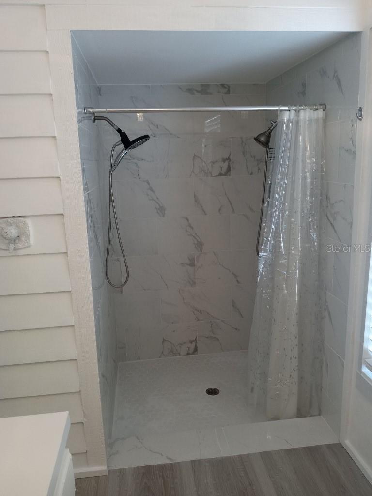 Chuveiro externo, calhas de chuva, calçada, portas de correr, armazenamento