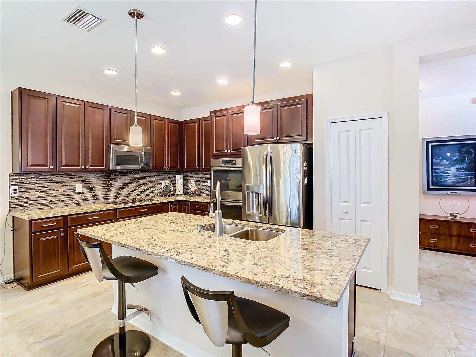 Redução de preços de US $ 50.000! Melhor do que a nova casa de dois andares com 3 quartos / 2,5 banheiros e garagem para 2 carros. O vendedor é o proprietário original construído em 2016 pela Mi Homes. A casa é preenchida com todas as atualizações oferecidas pelo construtor. Hall de entrada de luxo com nicho de arte embutida e iluminada de parede cheia e escada de trilho de madeira para o segundo andar. Atualizado o piso de ladrilhos em todo o primeiro nível, que inclui sala de estar, área de jantar fora da cozinha, 1/2 banho e sala de família / espaço flexível. A cozinha possui lindos balcões de quartzo, utensílios de aço inoxidável reluzente e armários de madeira do painel elevado atualizados. A cozinha espaçosa é perfeita para entreter com fornos duplos embutidos e despensa de cozinheira e armário. Tratamentos de janela personalizados de US $ 3.000 na sala de estar e sliders de cozinha. O segundo nível inclui todos os quartos e dois banheiros. O quarto primário possui um teto de bandeja luxuoso com armários duplos. O banho primário inclui pias duplas com balcões sólidos, banheira de jardim e chuveiro separado. Espaçosos quartos secundários com amplo espaço no armário e banheiro secundário também incluem pias duplas com balcões de pedra sólidos. Os destaques externos incluem espaçosos pátio 13x12 cobertos e rastreados com vista para o seu delicioso pátio traseiro verde. Exterior em casa pintado recentemente em novembro de 2023. cercas de vinil nos dois lados e na traseira. Localizado na comunidade de estilo de Long Lake Ranch, no condado de Pasco County, nas proximidades de refeições, compras e muito mais! A comunidade inclui 40 acres de lago, piscina com zona de respingo, tênis, basquete, áreas de piquenique, parque de cães, playgrounds e muito mais. Zoneado para a Charles Rushe Middle School e a Sunlake High School.
