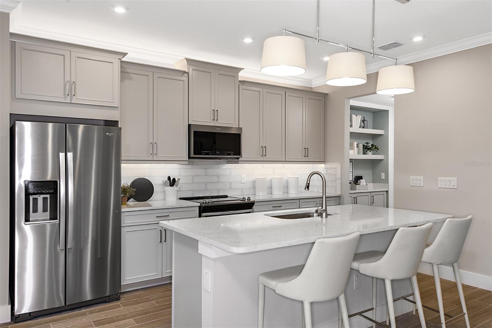 Pré-construção. Para ser construído. O 2.230 SF Sebring tem 3 quartos, 2,5 banheiros com uma sala bônus e garagem para 2 carros. O exterior do Sebring é a elevação do artesão muito popular, e esta casa está localizada na área muito popular da Capela Lutz/Wesley. Esta casa possui tetos de 9'4" no primeiro andar e entrada de 8' e porta de vidro deslizante para enfatizar a sensação de abertura. Lindos pisos de tábuas de azulejos fluem perfeitamente por todo o andar principal. A cozinha aberta é completa com armários pintados Harbour de 42", quartzo Cararra Breve bancadas, backsplash de azulejos de metrô dispostos em padrão de espinha de peixe e eletrodomésticos de aço inoxidável, incluindo a geladeira. O cozinheiro da casa irá desfrutar de todas as bancadas e da grande despensa e do armazenamento separado sob as escadas. A grande ilha central tem vista para a grande sala e a sala de jantar para que todos se sintam conectados. Ao lado da grande sala, você encontrará uma varanda pavimentada conectada por uma grande lateral de vidro e inclui uma tela com vista para o lago. No andar de cima, o retiro dos proprietários, separado dos quartos de hóspedes, oferece dois grandes closets, pias duplas e nosso aparentemente box de vidro para chuveiro. Também no andar de cima há uma enorme área de loft, perfeita para entreter ou relaxar após um longo dia. Os quartos secundários possuem closets e compartilham um banheiro amplo com pia dupla e armário de roupa de cama separado. Esta casa também possui uma lavanderia ampla, localizada no segundo andar para maior comodidade. Todas as nossas casas são conectadas com o que há de mais moderno em tecnologia de casa inteligente e são eficientes em termos energéticos, com janelas de vinil de painel duplo lo-E. Volanti se enquadra no distrito escolar de Veterans Elementary, Cypress Creek Middle School e Cypress Creek Highschool, a menos de 3 km do Tampa Premium Outlet Mall, do Shoppes at Wiregrass e do Wesley Chapel Groves. Volanti é um condomínio fechado com uma grande piscina aquecida, área para churrasco e fogueira ao ar livre. Sem taxas de CDD! A conclusão estimada desta casa é dezembro de 2024. Fotos, representações e plantas são apenas para fins ilustrativos e nunca devem ser confiáveis e podem variar da casa real. As fotos são de uma casa modelo mobiliada e não da casa à venda.