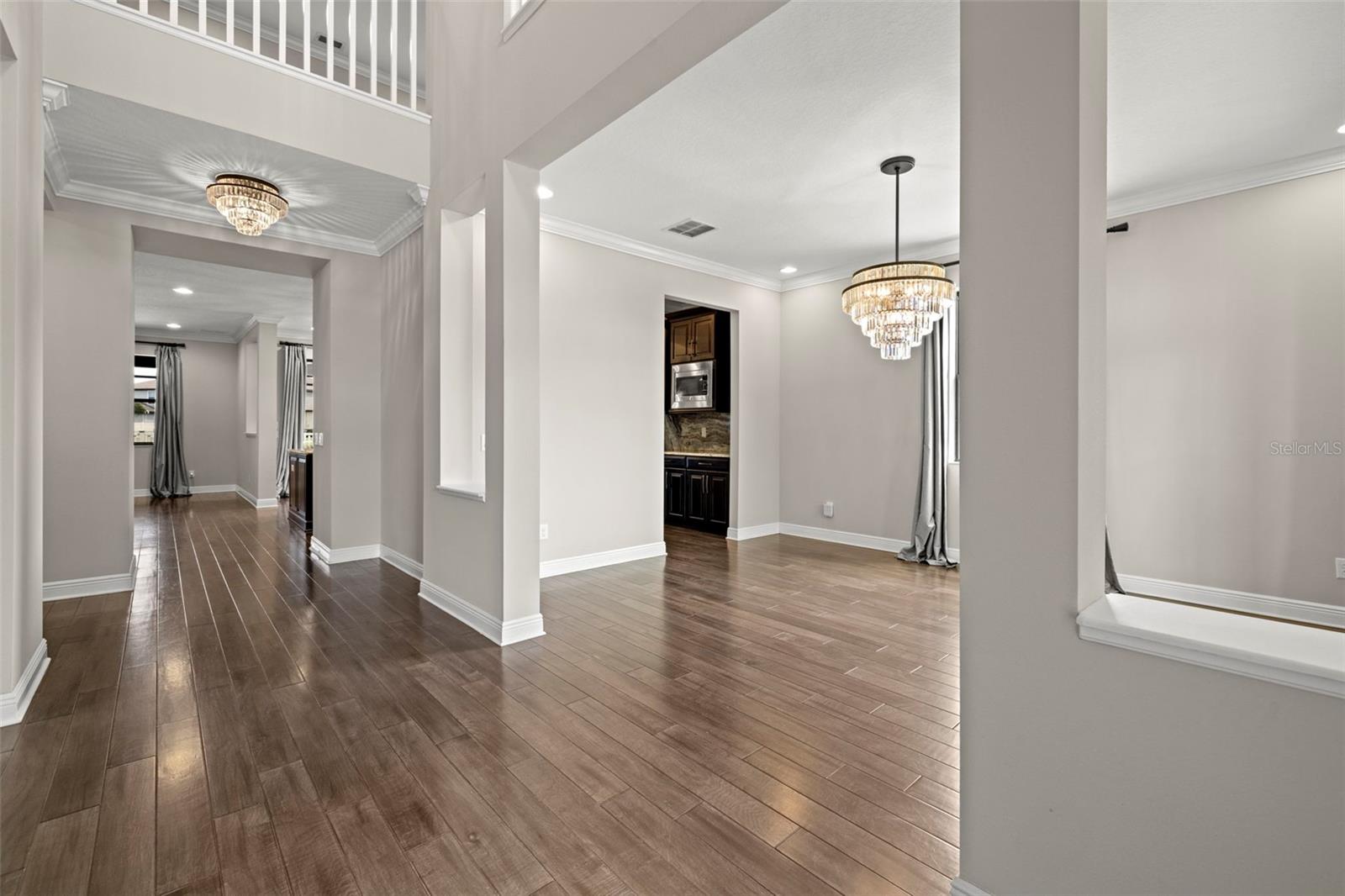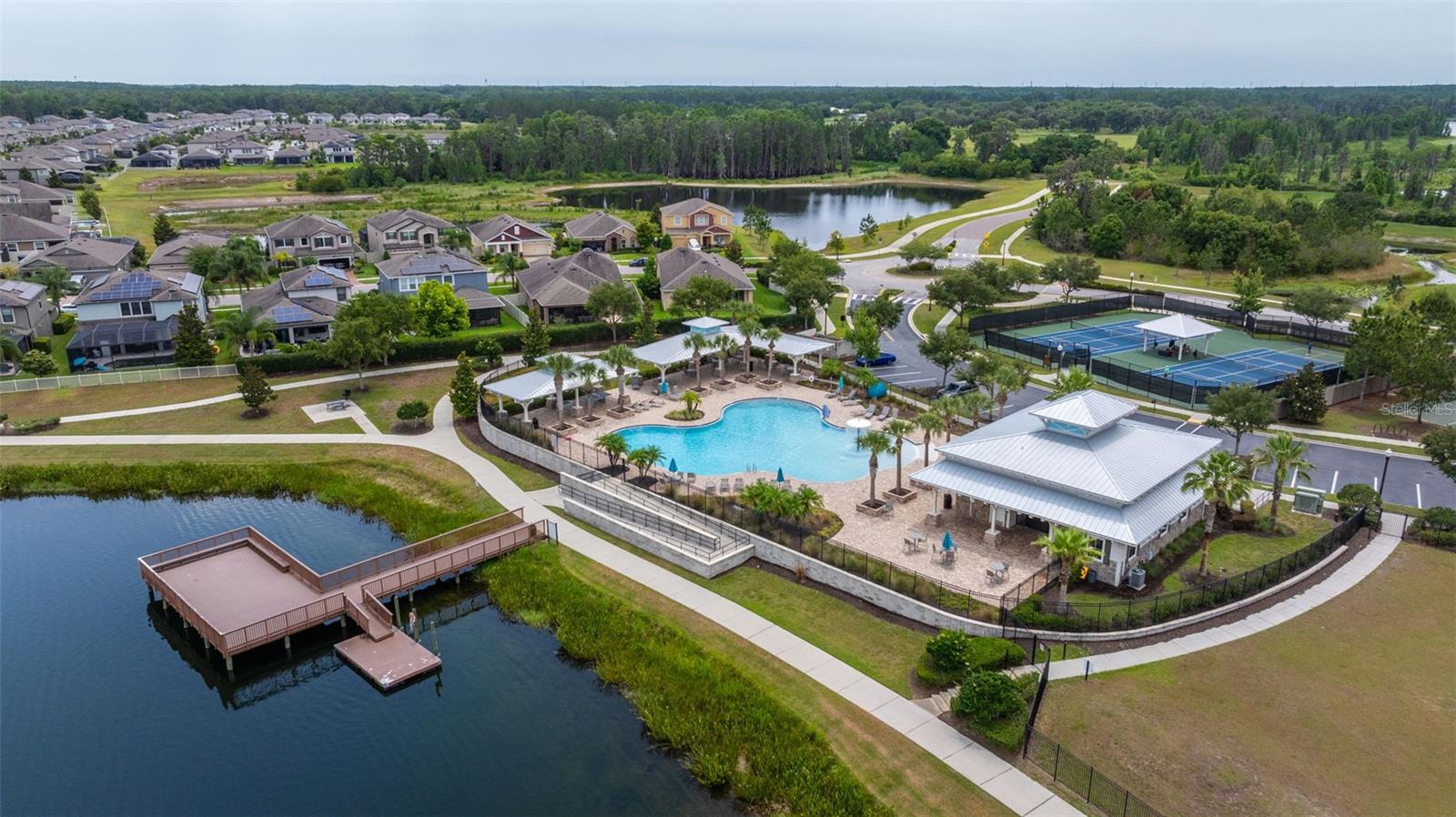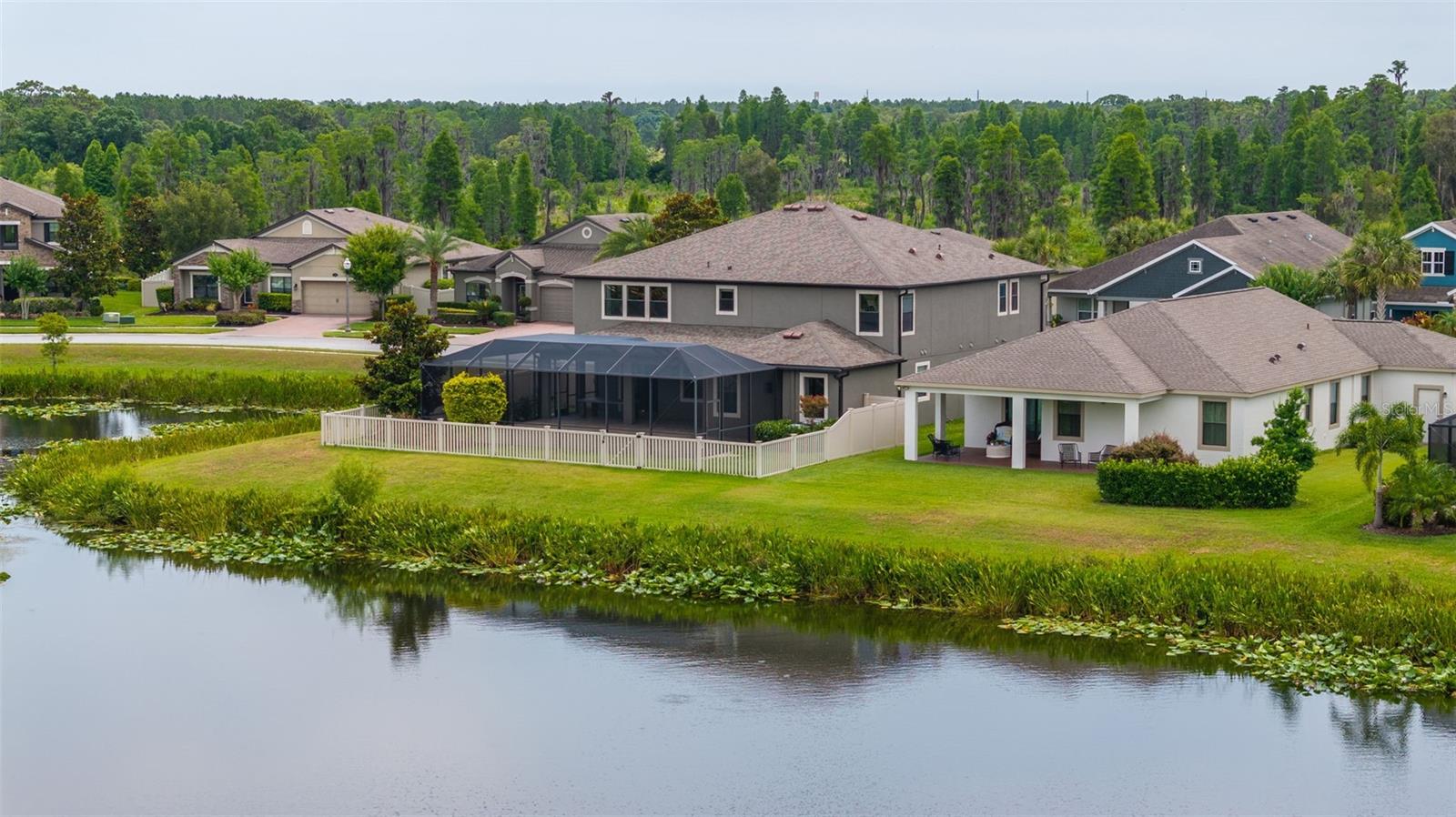 Pensada para uma vida confortável e luxuosa, 2 suítes, esta casa apresenta design impecável e acabamentos luxuosos, contando com 5 quartos (duas suítes, uma em cada andar), 3 banheiros completos e 1 lavabo. No interior, você encontrará piso de madeira requintado, tetos altos, um grande hall de entrada, sala de jantar formal, uma escadaria elegante e uma cozinha de chef. Delicie-se com a cozinha gourmet com portas de armário maciças/vidro e equipada com eletrodomésticos de última geração em aço inox, incluindo forno duplo, fogão a gás, bancada em granito L4 e backsplash em granito. A ampla ilha com assentos, elegantes armários de café expresso de bordo com sancas, ferragens de bronze, despensa e cafeteria de mordomo contribuem para seu charme sofisticado. Combinação de cozinha, aberta e arejada, a grande sala ao lado da cozinha, é o local perfeito para relaxar e assistir TV enquanto contempla a bela parede de pedra. A suíte master do primeiro andar oferece um retiro espaçoso com dimensões generosas, um closet grande e um banheiro luxuoso com banheira de imersão, chuveiro separado, pia dupla com balcões de granito e backsplash, azulejos atualizados, nicho de xampu, e uma porta de vidro com moldura de bronze. Subindo as lindas escadas de madeira, você encontrará três quartos de proporções generosas e dois banheiros, cada um com amplo closet. Além disso, há uma área de loft considerável que pode funcionar como sala de família ou espaço de trabalho, oferecendo uma vista pitoresca sobre o hall de entrada adornado com lustres graciosos. O andar de cima oferece amplas oportunidades de relaxamento, entretenimento ou criação do ambiente ideal para trabalhar em casa, com uma infinidade de espaços versáteis para você escolher. No exterior, uma grande área blindada com pavimentação voltada para um belo lago onde é permitida a pesca, perfeita para entretenimento ao ar livre enquanto aprecia a vista do lago atrás da propriedade. Com muito espaço para móveis e atividades ao ar livre, você pode imaginar realizar grandes reuniões sem se preocupar com os mosquitos. Além disso, há muitas áreas gramadas para diversão. Situado em Long Lake Ranch, E A UMA CURTA DISTÂNCIA DE TODAS AS COMODIDADES DA COMUNIDADE, este retiro elegante faz parte de uma comunidade meticulosamente planejada que oferece inúmeras casas com vista para o lago e uma variedade de comodidades ao ar livre. Desfrute de momentos tranquilos no cais à beira do lago de 40 acres, faça um piquenique na área designada ou relaxe no mirante. Como alternativa, aproveite a piscina comunitária em estilo resort com entrada zero, playgrounds, lotes para crianças ou parque para cães. Mantenha-se ativo com trilhas para caminhada bem iluminadas, quadras de basquete e tênis. Lutz oferece um cenário ideal para jogar golfe, fazer compras, relaxar e jantar. Com uma variedade de escolas que atendem a todos os níveis educacionais e acesso conveniente a instalações médicas, proporciona um estilo de vida completo.