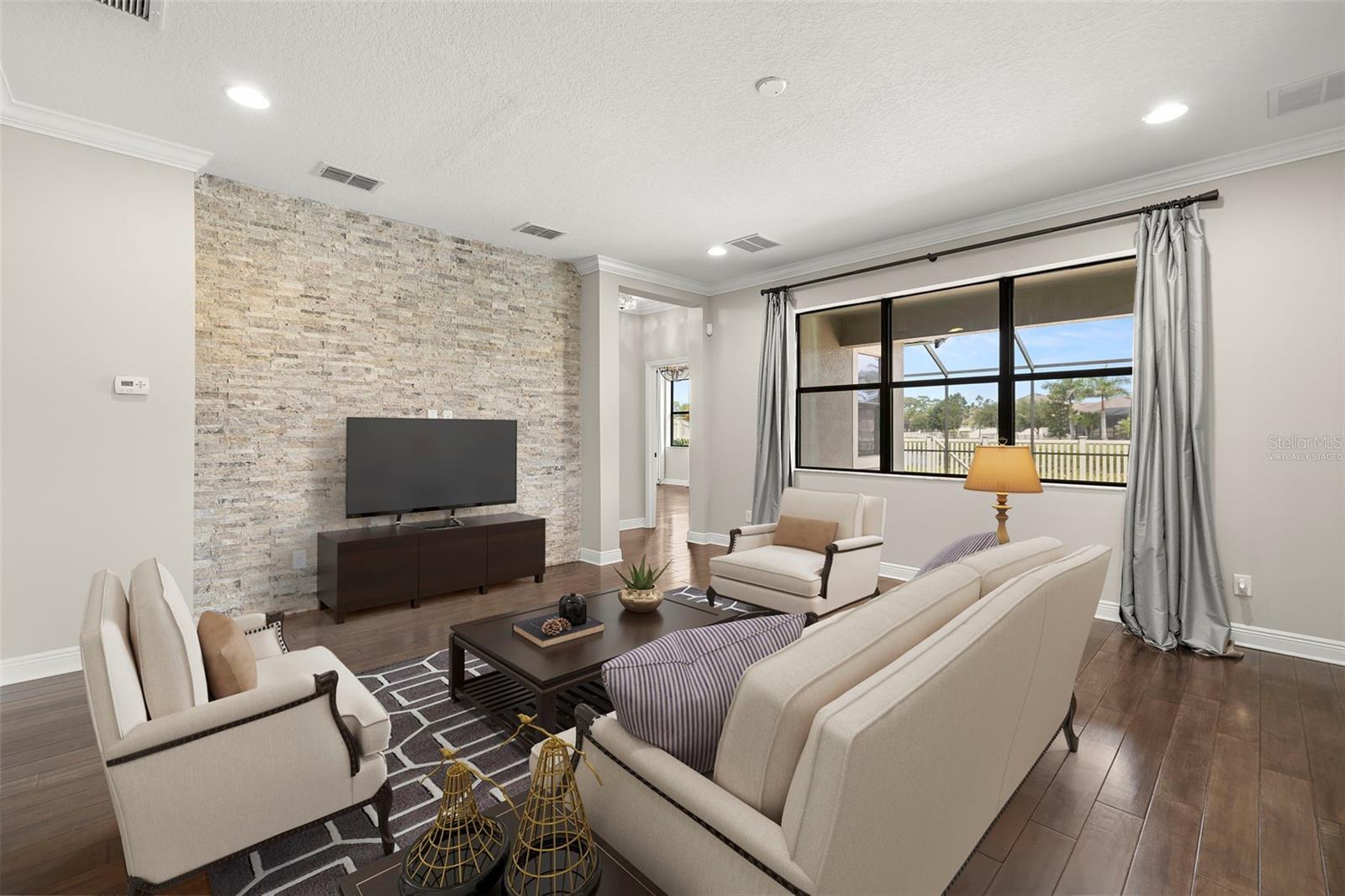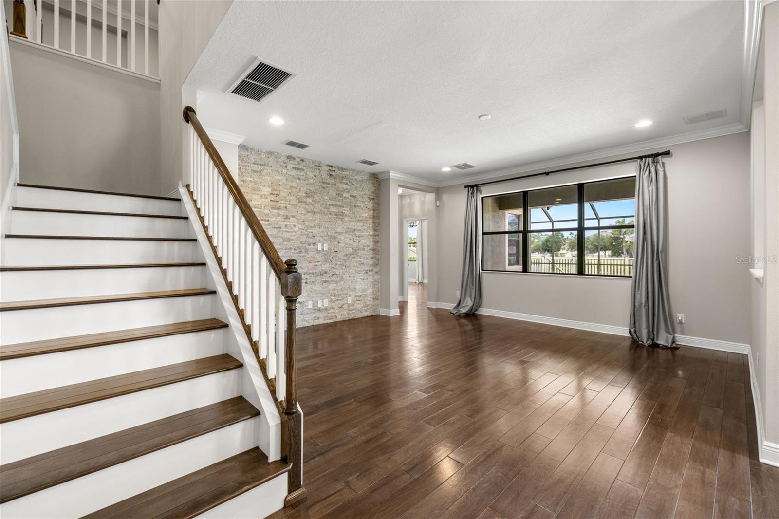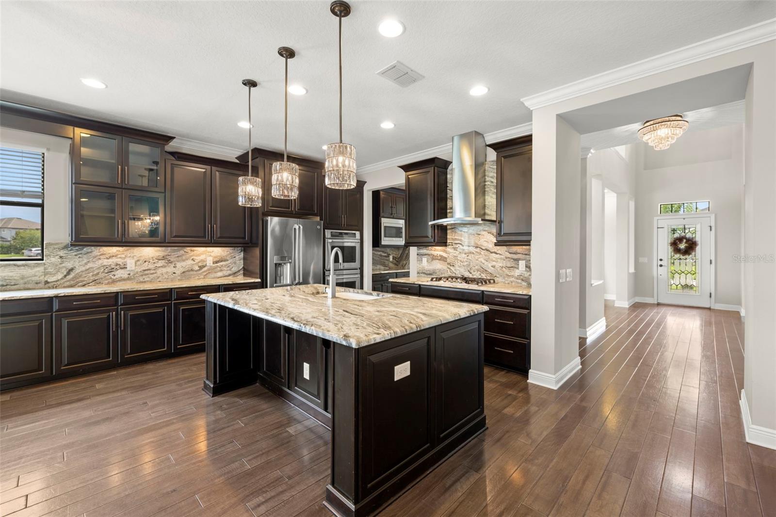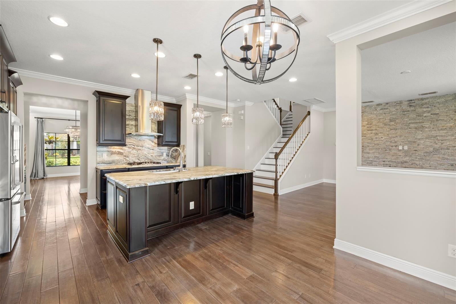 Pensada para uma vida confortável e luxuosa, 2 suítes, esta casa apresenta design impecável e acabamentos luxuosos, contando com 5 quartos (duas suítes, uma em cada andar), 3 banheiros completos e 1 lavabo. No interior, você encontrará piso de madeira requintado, tetos altos, um grande hall de entrada, sala de jantar formal, uma escadaria elegante e uma cozinha de chef. Delicie-se com a cozinha gourmet com portas de armário maciças/vidro e equipada com eletrodomésticos de última geração em aço inox, incluindo forno duplo, fogão a gás, bancada em granito L4 e backsplash em granito. A ampla ilha com assentos, elegantes armários de café expresso de bordo com sancas, ferragens de bronze, despensa e cafeteria de mordomo contribuem para seu charme sofisticado. Combinação de cozinha, aberta e arejada, a grande sala ao lado da cozinha, é o local perfeito para relaxar e assistir TV enquanto contempla a bela parede de pedra. A suíte master do primeiro andar oferece um retiro espaçoso com dimensões generosas, um closet grande e um banheiro luxuoso com banheira de imersão, chuveiro separado, pia dupla com balcões de granito e backsplash, azulejos atualizados, nicho de xampu, e uma porta de vidro com moldura de bronze. Subindo as lindas escadas de madeira, você encontrará três quartos de proporções generosas e dois banheiros, cada um com amplo closet. Além disso, há uma área de loft considerável que pode funcionar como sala de família ou espaço de trabalho, oferecendo uma vista pitoresca sobre o hall de entrada adornado com lustres graciosos. O andar de cima oferece amplas oportunidades de relaxamento, entretenimento ou criação do ambiente ideal para trabalhar em casa, com uma infinidade de espaços versáteis para você escolher. No exterior, uma grande área blindada com pavimentação voltada para um belo lago onde é permitida a pesca, perfeita para entretenimento ao ar livre enquanto aprecia a vista do lago atrás da propriedade. Com muito espaço para móveis e atividades ao ar livre, você pode imaginar realizar grandes reuniões sem se preocupar com os mosquitos. Além disso, há muitas áreas gramadas para diversão. Situado em Long Lake Ranch, E A UMA CURTA DISTÂNCIA DE TODAS AS COMODIDADES DA COMUNIDADE, este retiro elegante faz parte de uma comunidade meticulosamente planejada que oferece inúmeras casas com vista para o lago e uma variedade de comodidades ao ar livre. Desfrute de momentos tranquilos no cais à beira do lago de 40 acres, faça um piquenique na área designada ou relaxe no mirante. Como alternativa, aproveite a piscina comunitária em estilo resort com entrada zero, playgrounds, lotes para crianças ou parque para cães. Mantenha-se ativo com trilhas para caminhada bem iluminadas, quadras de basquete e tênis. Lutz oferece um cenário ideal para jogar golfe, fazer compras, relaxar e jantar. Com uma variedade de escolas que atendem a todos os níveis educacionais e acesso conveniente a instalações médicas, proporciona um estilo de vida completo.