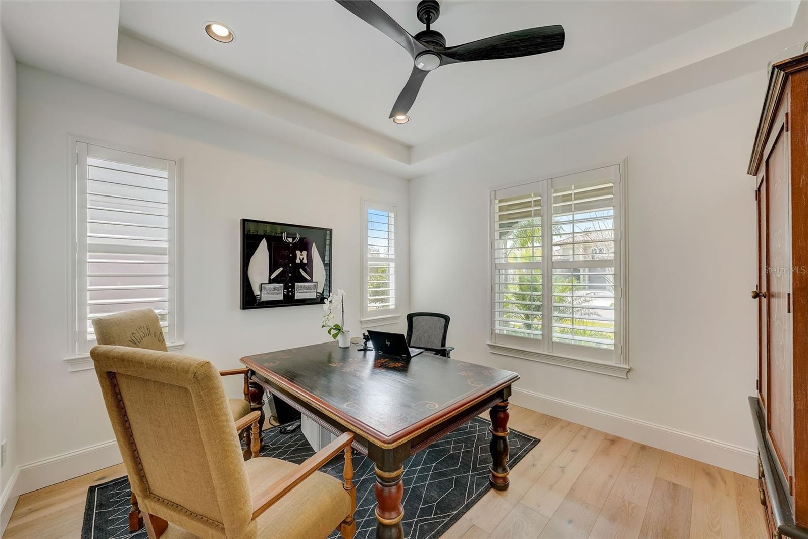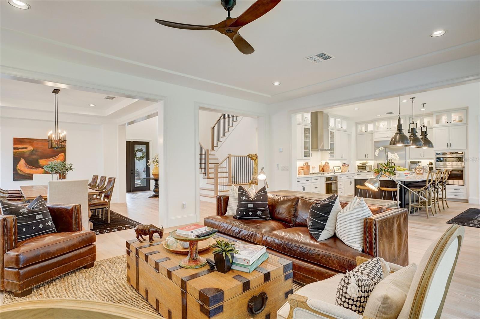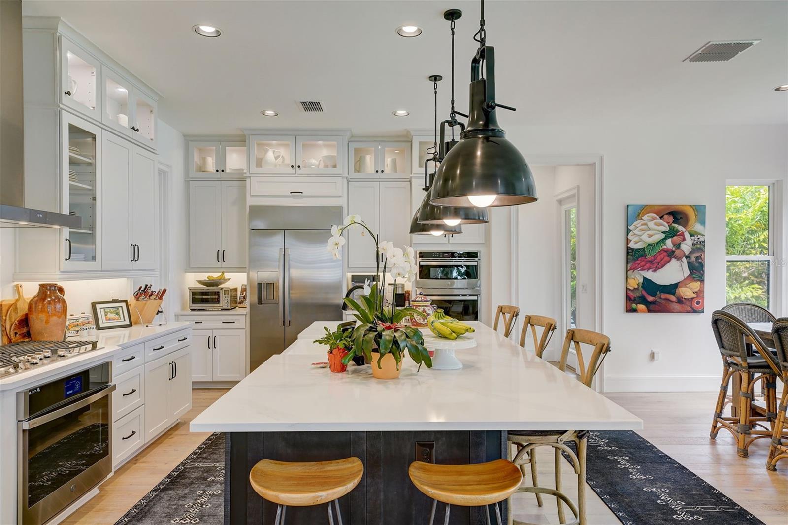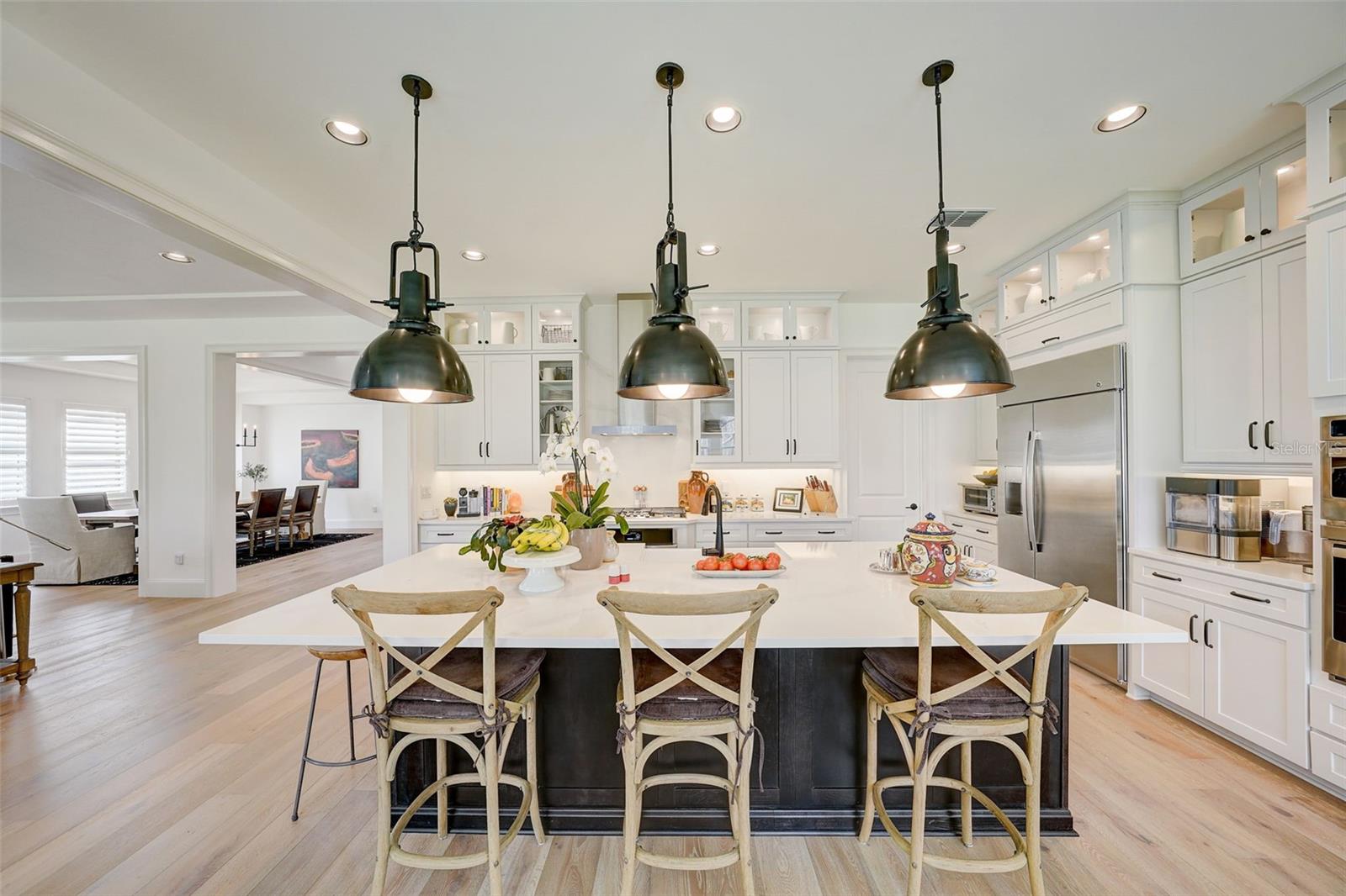 Impressionante casa de 2 anos! Esta casa de 5 quartos e 5 banheiros no distrito escolar de Steinbrenner tem 4.663 pés quadrados e está situada em um enclave fechado privado de 40 casas. Calçada de pavimentação de tijolos, varanda frontal e pátios levam para dentro. para a entrada do teto da catedral com 2 lustres redondos de ferro RH. Características incluem pisos de tábuas largas de carvalho francês, escadas de ferro, drywall liso, marcenaria personalizada, portas de painel de 8'- 2, venezianas largas e luzes embutidas com dimmers. Uma mini cozinha bem concebida no andar de cima, com geladeira, lava-louças, lavadora e secadora LG empilhadas e um pia profunda de aço inoxidável. A cozinha inclui bancadas de quartzo, backsplash de altura total e, em uma ilha enorme, uma pia de casa de fazenda em aço inoxidável eletrodomésticos, fogão a gás, exaustor moderno, geladeira lado a lado de 42", fornos duplos, micro-ondas de convecção e lava-louças silenciosa, iluminação grande crie uma aparência moderna de casa de fazenda. A grande suíte dos Proprietários tem uma varanda privativa com vista além do terreno do tamanho da piscina para um pântano natural. Proprietários O banheiro tem banheira de imersão, chuveiro espaçoso de vidro com duas cabeças e tampos de quartzo em pias separadas e um grande armário conectado com estantes de madeira com fenda. Três quartos de hóspedes possuem banheiro privativo, pisos de metrô e cômodas Kohler atualizadas. O quarto de hóspedes no andar de baixo tem um banheiro adjacente com box amplo. A sala bônus no andar de cima com parede shiplap e portas de celeiro de 8' torna-se um refúgio ideal para filmes ou música.A garagem revestida com epóxi possui dois carregadores de carros elétricos, vagas de estacionamento extra profundas, racks de armazenamento montados no teto; uma água para toda a casa sistema de purificação que filtra e condiciona a água de cada torneira. Surpreenda e encante o comprador mais exigente que aprecia o detalhes mais sutis, eles vão adorar!