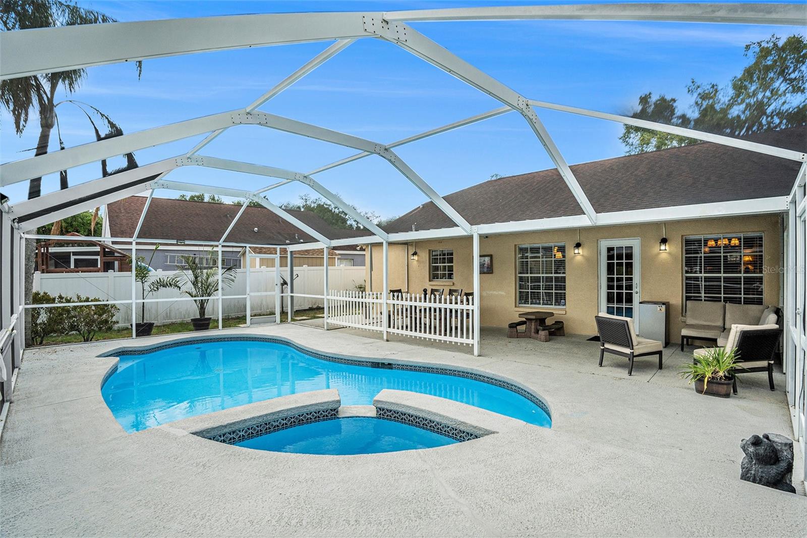 EXCELENTE CASA EM ÓTIMA LOCALIZAÇÃO!!! Esta garagem para três quartos, dois banheiros e dois carros possui uma ampla sala de estar aberta para a sala de jantar. A espaçosa cozinha tem vista para a sala de jantar e de estar através da passagem. A suíte master também tem teto abobadado, closet e banheiro privativo. O banheiro principal tem pia dupla, box amplo e armário de roupa de cama. Nos fundos fica o quintal cercado com churrasqueira e uma linda PISCINA para desfrutar de reuniões familiares. Telhado novo há 4 anos. A baixa taxa anual de HOA e NO CDD NO Flood tornam esta comunidade uma ótima escolha! Convenientemente localizado em um bairro tranquilo e de baixo tráfego, com fácil acesso à I-75 e I-275 e 54 State Road. Fácil acesso a muitas lojas e restaurantes excelentes nas proximidades, incluindo Tampa Premium Outlets, The Grove, cinema, Wiregrass Mall, restaurantes, golfe, praias, parques de diversões, entretenimento, Aeroporto Internacional de Tampa e muito mais. Esta comunidade única também tem acesso ao Tampa North Flight Center, um aeroporto público de pequenos aviões com hangares para alugar e ao restaurante The Happy Hangar Café, tornando-o perfeito para os entusiastas da aviação. Tantas características marcantes desta casa! Preço para vender! Este não vai durar muito! Ligue hoje para seu tour privado!