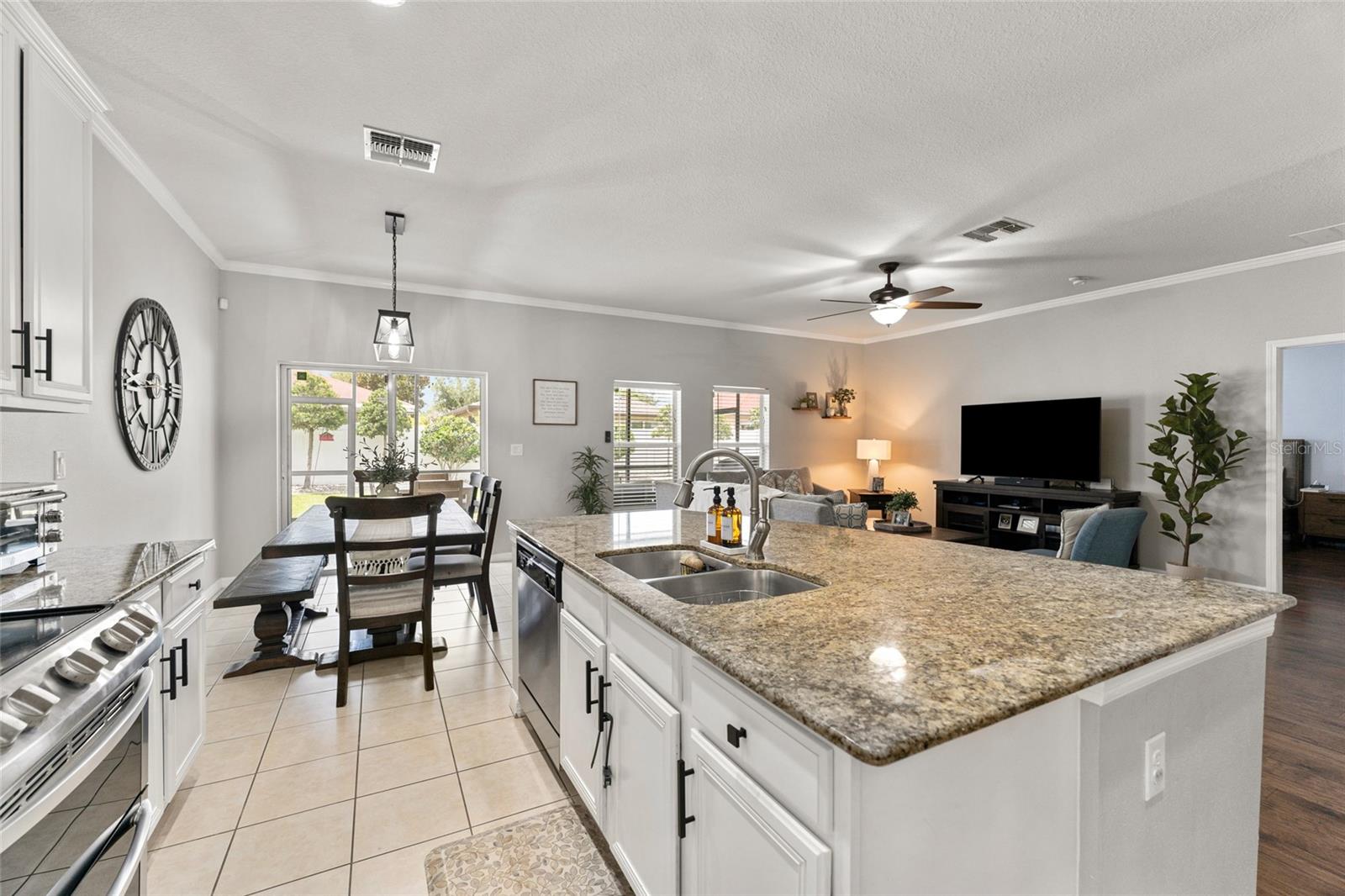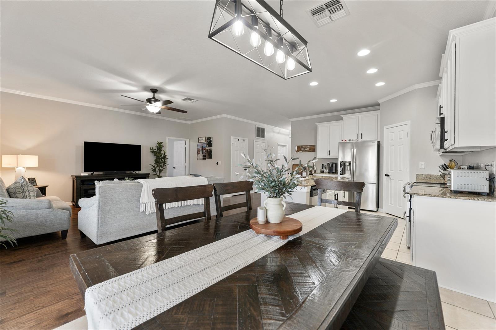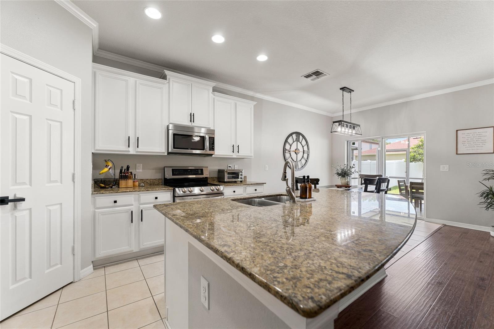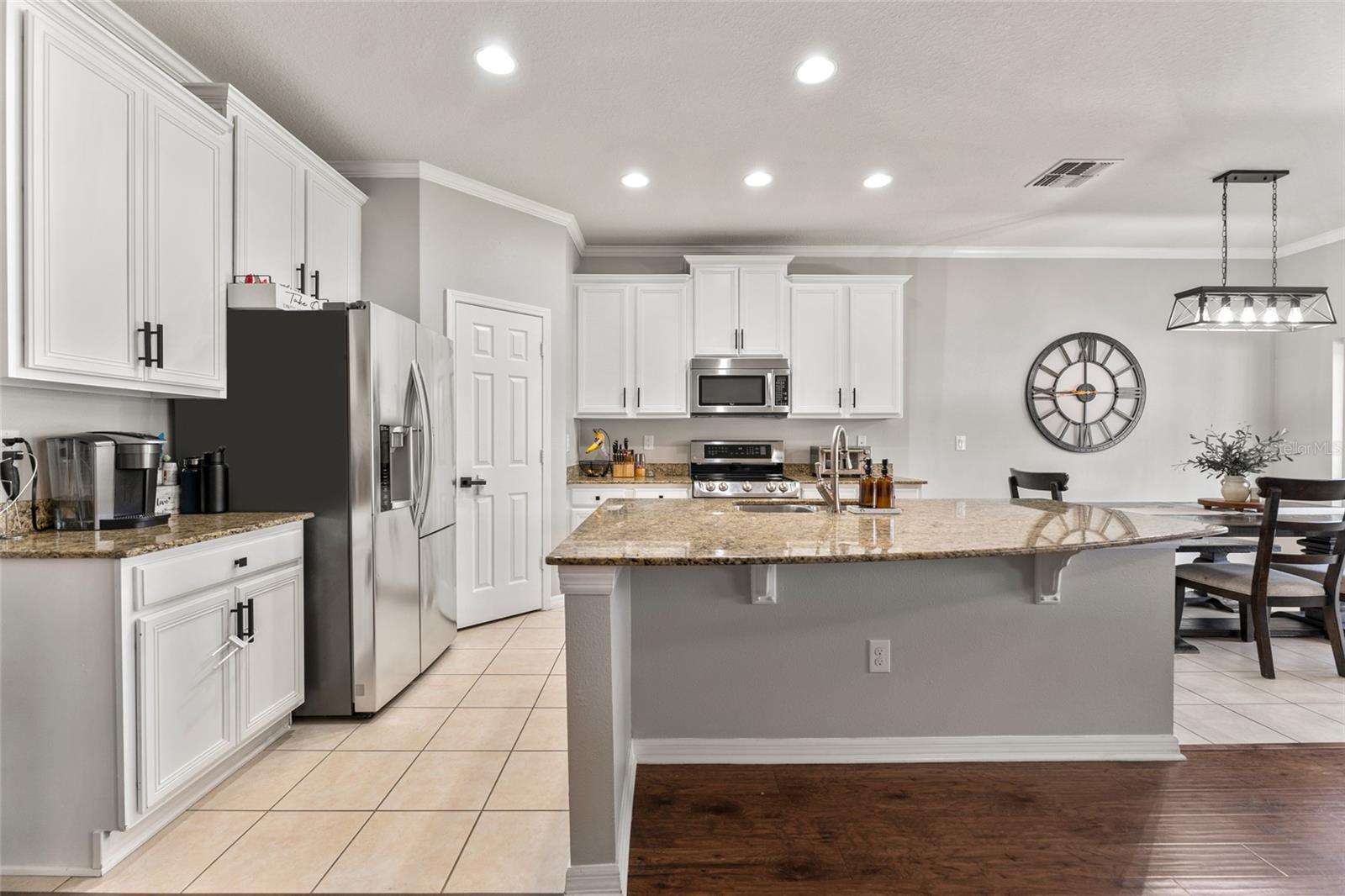 NOVIDADE NO MERCADO! Esta casa unifamiliar bem conservada está localizada no bairro altamente "procurado" de Stonebrier, localizado no enclave fechado de Sweetgrass. A bela porta frontal de vidro gravado dá-lhe as boas-vindas a esta popular planta baixa "Riviana" com um layout aberto com 3 quartos, 2 banheiros completos e uma garagem para 2 carros. Ao entrar na casa, você é imediatamente recebido com piso de madeira projetada que se estende desde o Hall de entrada e por todas as áreas de estar, 2 quartos e 1 banheiro completo na frente da casa. A área de estar possui tetos de 10 pés com sancas, iluminação embutida e tons neutros de pintura interna. A cozinha gourmet possui lindas bancadas de granito com pia embutida, amplos armários de bordo de 42 polegadas com sancas, uma ilha com barra de café da manhã, todos os eletrodomésticos incluindo forno duplo com forno de convenção na parte inferior e armário despensa. Área separada da sala de jantar. O elegante banheiro principal possui closet, pia dupla com bancada de granito e pias sob montagem, banheira de jardim e box amplo de azulejos com portas de vidro. O espaço do quintal é perfeito para entretenimento e tem uma cerca de privacidade total e uma varanda espaçosa construída em 2017. Há um sistema HVAC de 3 toneladas que foi instalado em 2019. Outras características incluem um amaciante de água para toda a casa, novas luzes de carro, sprinkler sistema (quintais dianteiros e traseiros), exterior e interior recém-pintados e muito mais. Stonebrier é um bairro meticulosamente cuidado, dividido em zonas para o distrito escolar de McKitrick, Martinez e Steinbrenner HS. As maravilhosas comodidades da comunidade incluem uma piscina de entrada zero com toboágua, academia, playgrounds, campos de futebol e muito mais! Não perca esta rara oportunidade!