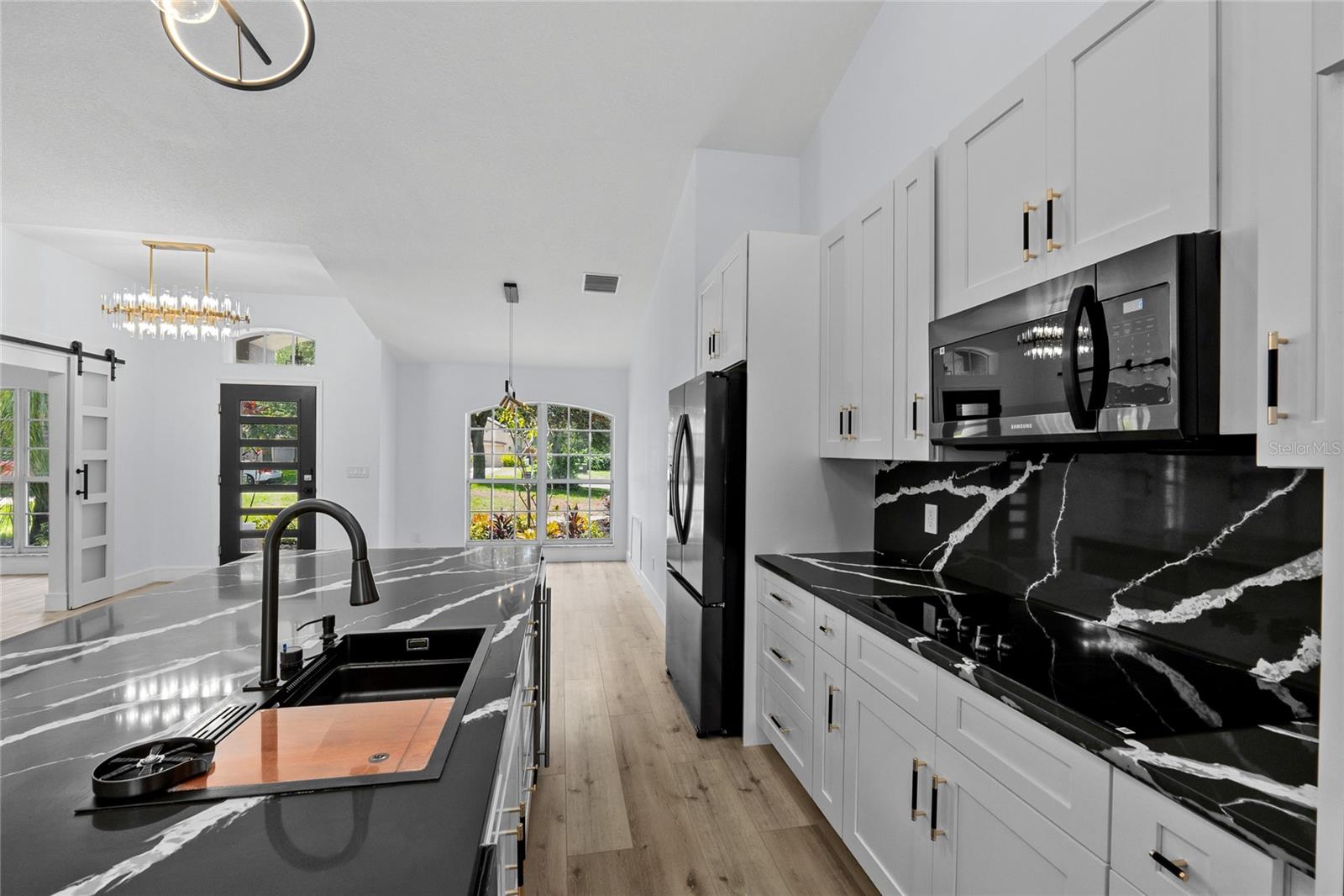 Bem-vindo à casa dos seus sonhos no exclusivo condomínio fechado de Wyndgate. Esta deslumbrante residência de 5 quartos, 3 banheiros e escritório exala elegância e luxo modernos, ostentando um telhado totalmente novo instalado em junho de 2024 e uma remodelação completa interior e exterior. Ao entrar, você é saudado por tetos altos e uma abundância de luz natural que preenche as espaçosas áreas de estar. O andar principal oferece um retiro no quarto principal, oferecendo privacidade e conveniência, enquanto no andar de cima, um versátil quarto/sala bônus oferece flexibilidade para as necessidades da sua família. O coração da casa é a cozinha gourmet, com elegantes bancadas de quartzo, de última geração. -novos aparelhos de arte e acessórios contemporâneos que combinam estilo com funcionalidade. Adjacentes à cozinha, as áreas de estar e de jantar em plano aberto criam o espaço perfeito para receber convidados ou relaxar com a família. Saia para a varanda coberta, onde um convidativo spa no solo o aguarda, cercado por uma paisagem exuberante e oferecendo um oásis privado para relaxar após um longo dia. O amplo quintal oferece amplo espaço para atividades ao ar livre e ainda tem espaço para uma futura piscina, tornando-o ideal para aproveitar o clima ensolarado da Flórida o ano todo. Esta casa combina elementos de design moderno com recursos práticos, como amplo armazenamento, atualizações de eficiência energética, sistema de amaciamento de água, novos sprinklers subterrâneos e um layout projetado para conforto e sofisticação. Esteja você organizando reuniões ou desfrutando de momentos tranquilos, cada detalhe desta casa foi cuidadosamente selecionado para melhorar seu estilo de vida. Não perca a oportunidade de personalizar esta residência requintada e experimentar o epítome da vida moderna na Flórida. Agende hoje mesmo o seu tour privado e imagine-se nesta casa excepcional.