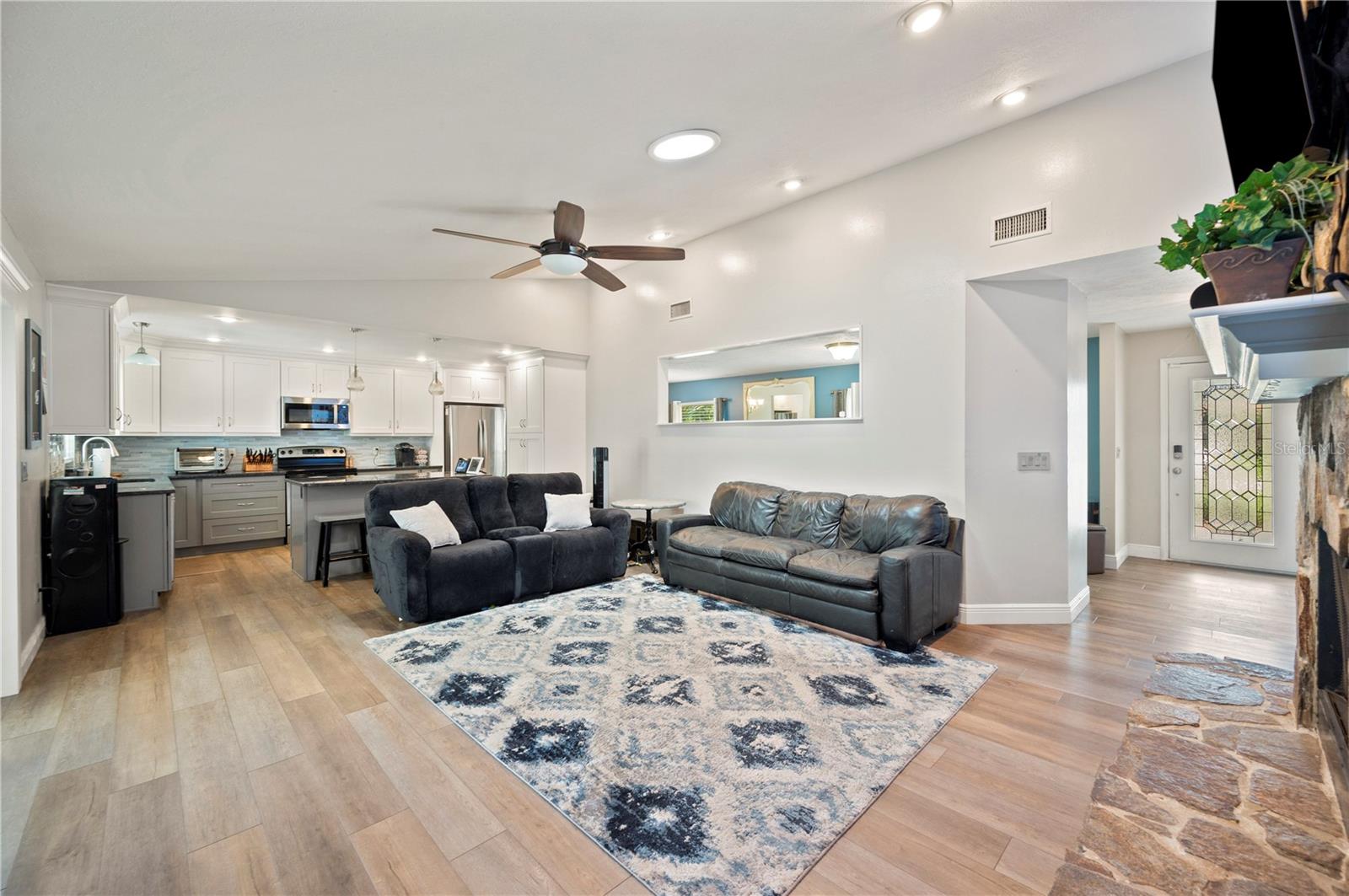 De volta ao mercado sem culpa dos vendedores - Telhado sendo substituído nas próximas semanas, NÃO RELACIONADO COM FURACÃO!! Linda casa ALTAMENTE ATUALIZADA em um tranquilo CUL-DE-SAC em um grande lote de 1/2 acre! Os recursos de renovação e atualização incluem - remodelação completa da cozinha, incluindo eletrodomésticos de aço inoxidável, novas pranchas de vinil luxuosas nas áreas de estar, AC 2023, aquecedor de água quente 2022, nova porta de garagem, campo de drenagem substituído em 2023, cerca invisível. A casa também inclui tetos abobadados com clarabóias, lareira de pedra com estantes embutidas, janelas PGT de vidro duplo, amaciante de água, campainha, portas de madeira maciça por toda parte, banheiros reformados em 2019. O retiro principal tem closet e banheiro privativo com bancadas em granito e pias duplas. Todos os 3 quartos secundários são espaçosos. O banheiro do corredor tem pias duplas, armário de madeira maciça personalizado e bancadas de granito. Quer espaço adicional? Portas francesas que levam a LANAI de 575 pés quadrados com janela de passagem. Poço e bomba 7/2019, CARPORTO DE RV COBERTO de 34' x 18' individual com energia e água, traga seu RV, barco e ATV's! Antigos armários de cozinha em madeira maciça estão instalados na garagem para a oficina dos seus sonhos! Esta casa é imperdível! SEM SEGURO DE INUNDAÇÃO, SEM HOA, SEM RESTRIÇÕES DE ESCRITURA!