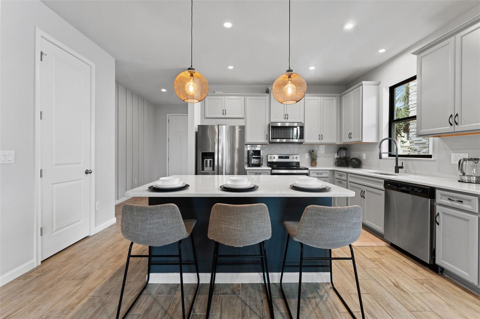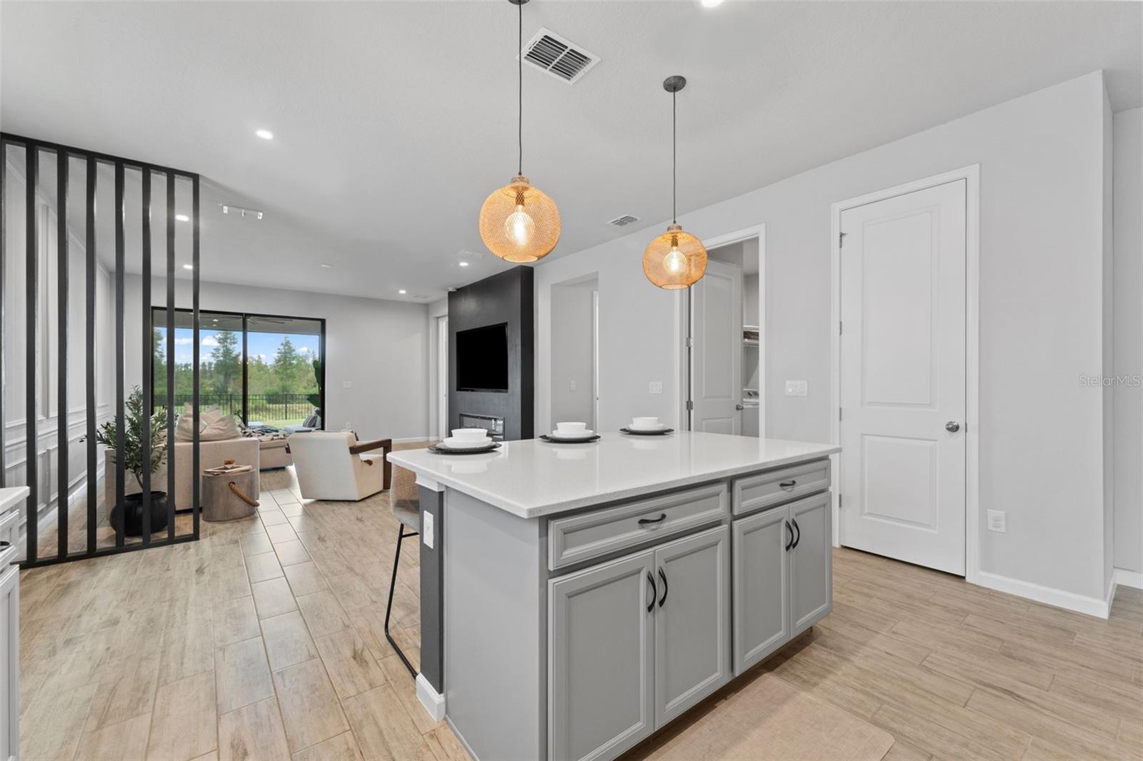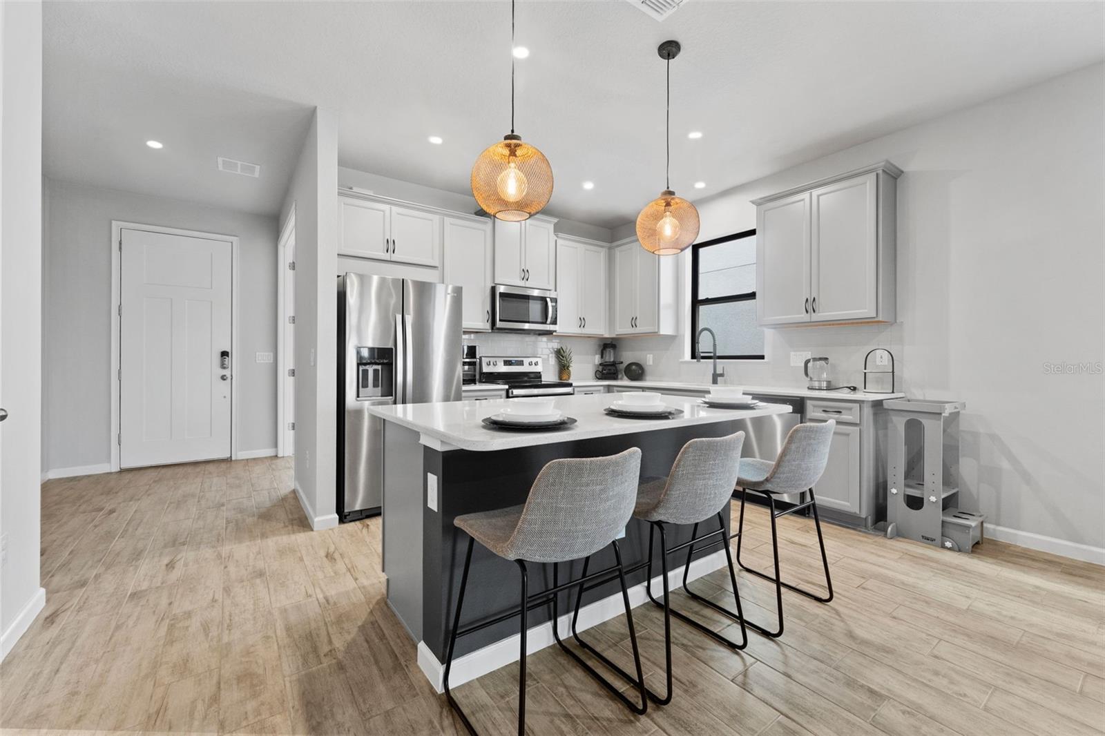 Bem-vindo a esta casa elegante e nova localizada em um distrito escolar de alto nível! Esta propriedade deslumbrante possui 3 quartos, 2 banheiros e um espaço de escritório designado com elegantes portas francesas de vidro. Você será recebido por portas de 2,5 metros que realçam o espaço e a elegância de sua nova casa. A área de estar principal possui piso de cerâmica e lareira elétrica embutida, adicionando calor e charme ao seu quarto familiar. O quarto principal oferece um teto de bandeja deslumbrante e um closet de designer embutido. Saia para o pátio coberto, ideal para entretenimento com um quintal totalmente cercado e desfrute do lote premium que oferece um lago sereno e vistas de conservação, perfeito para os amantes da natureza. Localizado em condomínio fechado com acesso rápido e fácil à 54. As comodidades incluem parque infantil, piscina e parque para cães. Convenientemente localizada a apenas 25 minutos do Aeroporto Internacional e a 40 minutos da praia, esta casa oferece um retiro tranquilo com fácil acesso a comodidades e atrações.