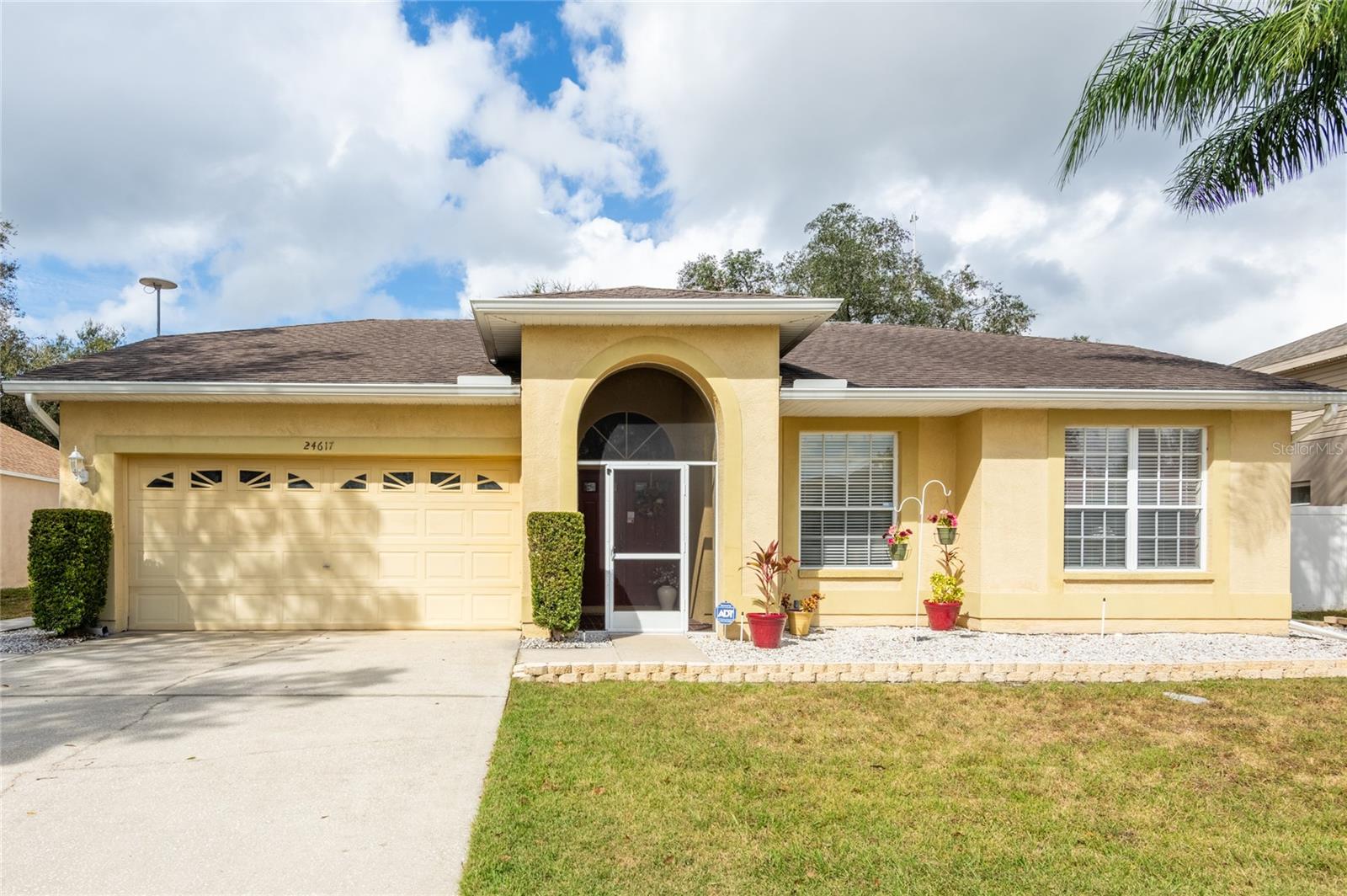 Bem mantida 3 quartos, 2 banheiros em casa está pronta para novos proprietários. Com seu belo piso plano aberto e tetos abobadados, ele certamente agradará. Há uma fileira de portas de vidro deslizantes que trazem muita luz natural e levam ao seu pátio de 10 x 23 precedido e rastreado. O pátio será ótimo para entretenimento! Além disso, há uma entrada de tela frontal. O quintal foi paisagístico com bom gosto com baixa manutenção em mente. Possui uma cerca de vinil mais recente que lhe dará segurança e cercada em privacidade. Lá dentro, você tem uma espaçosa sala de estar/sala de jantar, aberta à cozinha leve e brilhante. A casa tem uma lavanderia interna com uma pia de utilidade, portanto, não há necessidade de suar em uma garagem quente. A garagem construiu em prateleiras para maior armazenamento. O quarto principal é grande com tetos abobadados e moldagem por coroa e um encerramento de caminhada. O banheiro é brilhante e tem uma banheira de jacuzzi para acalmar suas preocupações. Existem mais 2 quartos espaçosos que compartilham um segundo banheiro em tamanho real. A casa possui um aquecedor de água a gás, alcance e calor a gás, que economizará em sua conta de energia elétrica. A casa possui impostos extremamente baixos no condado de Pasco e um total de US $ 245 e sem taxas de CDD. A comunidade tem muitos lagos com bancos e fontes para relaxar após um dia duro no trabalho. A propriedade está convenientemente localizada na County Line Road, perto das compras e da entrada da I-75. Esta casa pronta para se mudar pode ser sua se você agir rápido! Agende sua consulta hoje!