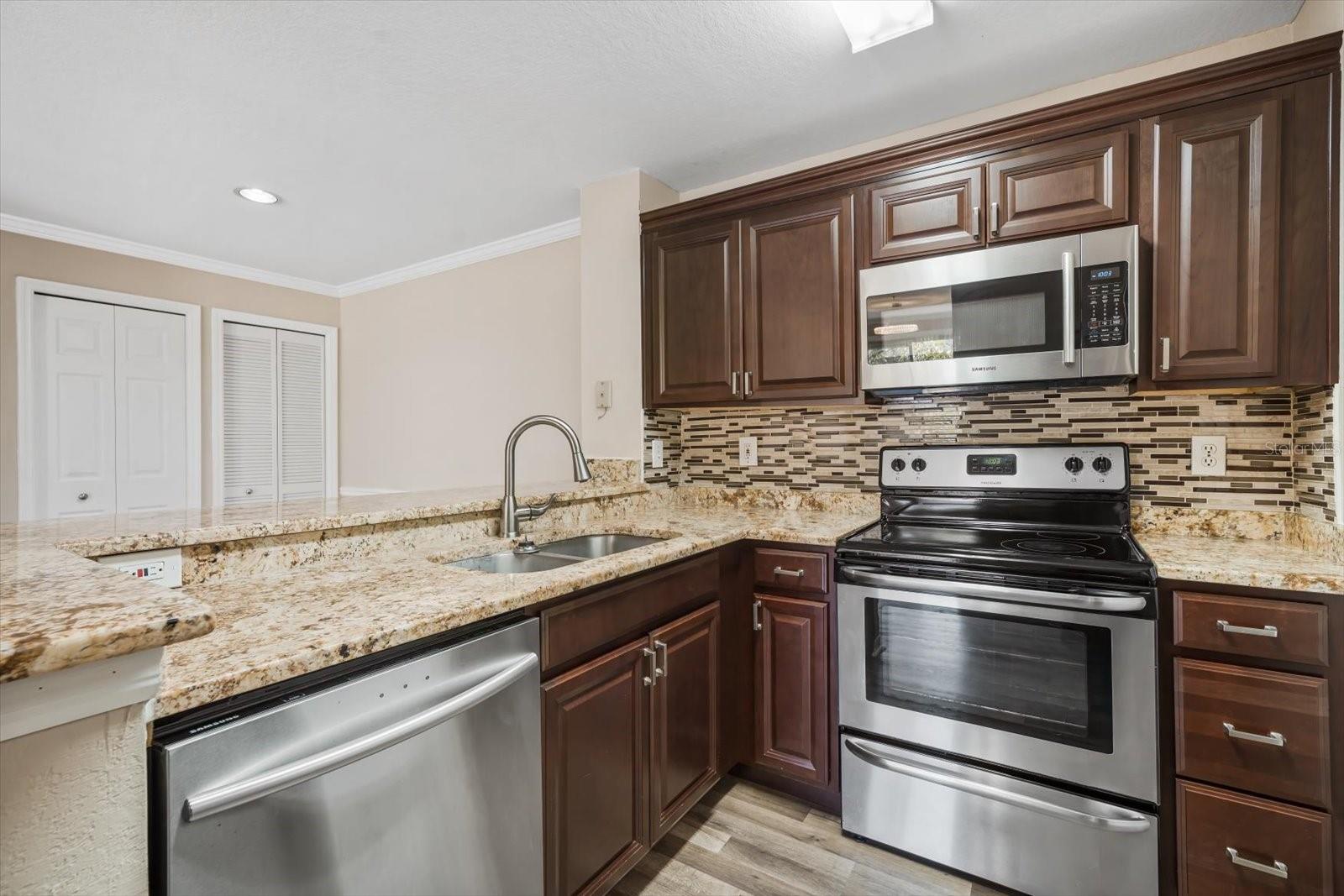 Uma ou mais fotos foram virtualmente encenadas. Entre na elegância moderna com este condomínio totalmente remodelado de 2 quartos e 2 banheiros em Lakeview em Calusa Trace! A partir do momento em que você entra, você ficará cativado pela planta aberta e pelo elegante piso laminado. O layout de quartos divididos cuidadosamente projetado oferece privacidade, com cada quarto apresentando armários espaçosos e seu próprio banheiro privativo. A cozinha possui bancadas de granito, eletrodomésticos de aço inoxidável e uma barra de café da manhã que flui perfeitamente para as áreas de jantar e de estar. Imagine sair para sua varanda privativa com tela - o local perfeito para relaxar com sua xícara de café matinal. Convenientemente, há um armário externo perto da porta da frente, oferecendo espaço extra para manter seus pertences arrumados e ao seu alcance. Este condomínio é mais do que apenas uma casa – é um estilo de vida! A comunidade possui comodidades, incluindo piscina e spa em estilo resort, academia, quadra de tênis e clube. Você também desfrutará de um parque para cães, churrasqueiras ao ar livre, área de lavagem de carros e coleta de lixo com manobrista para maior comodidade. Localizado atrás do St. Joseph's North Hospital, este local privilegiado fica a poucos minutos do Tampa Premium Outlets, do Citrus Town Center, do Aeroporto de Tampa e de uma variedade de opções de compras, restaurantes e entretenimento. O fácil acesso às principais rodovias garante viagens tranquilas para todos os seus destinos favoritos. Esta joia pronta para morar está esperando por você - agende seu tour hoje mesmo!