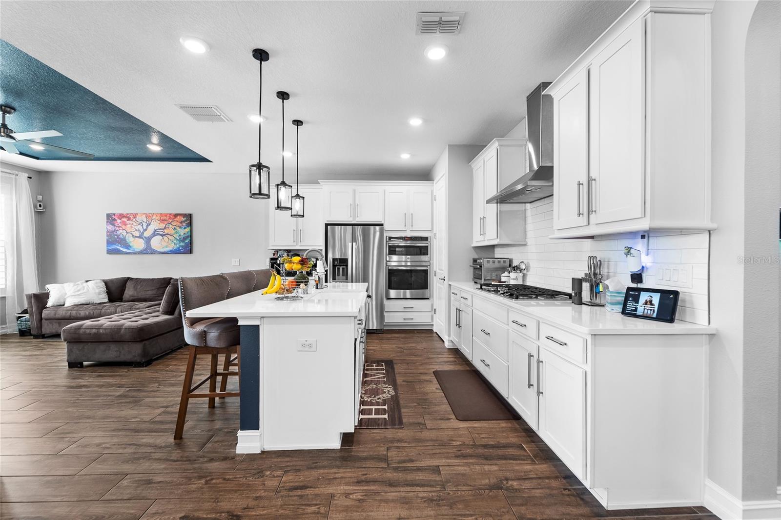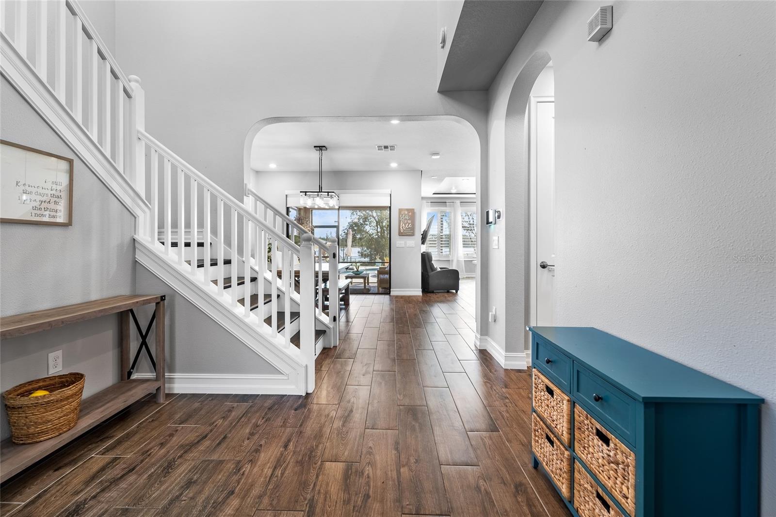 Vistas tranquilas para o lago em um bairro distinto próximo à interestadual com escolas excepcionais, impostos mais baixos e sem CDD? Esta casa tem tudo. Construída em 2020, esta casa em Waterside Arbors tem tudo o que você procura, planta aberta com cozinha moderna, incluindo bancadas de quartzo, armários de madeira de 42", eletrodomésticos GE de aço inoxidável e fogão a gás natural. O andar de baixo possui tábuas de madeira cerâmica azulejos, recentemente pintados, tetos de bandeja e rodapés de 5". No andar de cima tem o elegante banheiro principal e privativo. Há um quintal totalmente cercado com uma pista de corrida separada para cães e uma porta para cães da varanda com tela. Você vai se surpreender com a piscina aquecida de água salgada, totalmente automatizada por aplicativo e celular, o deck da piscina com pavimentação que não esquenta, com vista para o lago natural alimentado por nascentes com pântanos. Outros extras incluem janelas escuras com novas venezianas, sistema de amaciante de água completo, piso de epóxi na garagem para 2 carros, paisagismo rochoso na frente e na lateral da casa e ventiladores de teto por toda parte. Tudo isso com um HOA baixo de US$ 125/mês e sem CDD. O condado de Pasco tem impostos mais baixos e esta casa fica bem na fronteira, perto de tudo o que Pasco e Hillsborough têm a oferecer.