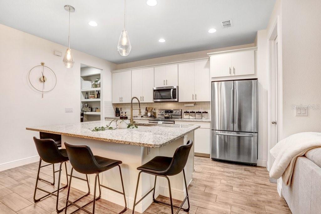 Localizada no muito procurado condomínio fechado de Lakeshore Preserve, esta deslumbrante moradia oferece 3 quartos, 2,5 banheiros e 2.307 pés quadrados de área útil cuidadosamente projetada. Ao entrar, você é recebido por um elegante piso de tábuas de madeira e persianas por toda parte, criando uma atmosfera refinada e acolhedora. O pátio fechado com pavimentação de tijolos oferece um espaço sereno para relaxar enquanto desfruta de uma vista tranquila e panorâmica. A cozinha é um sonho, com eletrodomésticos de aço inoxidável, bancadas de quartzo, backsplash de azulejos de metrô e uma espaçosa despensa com prateleiras personalizadas para maior comodidade. O layout aberto flui perfeitamente para as áreas de estar e jantar, perfeito tanto para uma vida casual quanto para entretenimento. No andar de cima, desfrute da máxima privacidade com um layout dividido que inclui uma grande área comum - ideal para um loft flexível no andar de cima, sala de família adicional, escritório ou área multiuso. A lavandaria, equipada com armários embutidos, está convenientemente localizada nas proximidades, enquanto dois quartos e uma casa de banho completa estão situados num dos lados. No lado oposto, a suíte master oferece tetos abobadados, dois closets e um generoso banheiro privativo repleto de luz natural. O banheiro possui pia dupla, chuveiro recém-reformado com backsplash de azulejos de metrô e armário de linho para armazenamento adicional. Esta moradia está situada num condomínio fechado e bem conservado, com uma bela piscina e churrasqueiras ao ar livre, oferecendo o local perfeito para relaxamento e reuniões. Além disso, está localizado em um distrito escolar altamente conceituado, proporcionando acesso a escolas com classificação A. Convenientemente localizado perto do Aeroporto Internacional de Tampa, hospitais, lojas, restaurantes e praias da Bay Area, este condomínio oferece luxo e conveniência em uma localização imbatível.