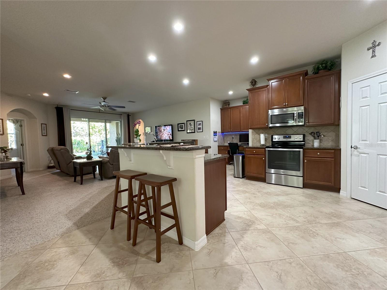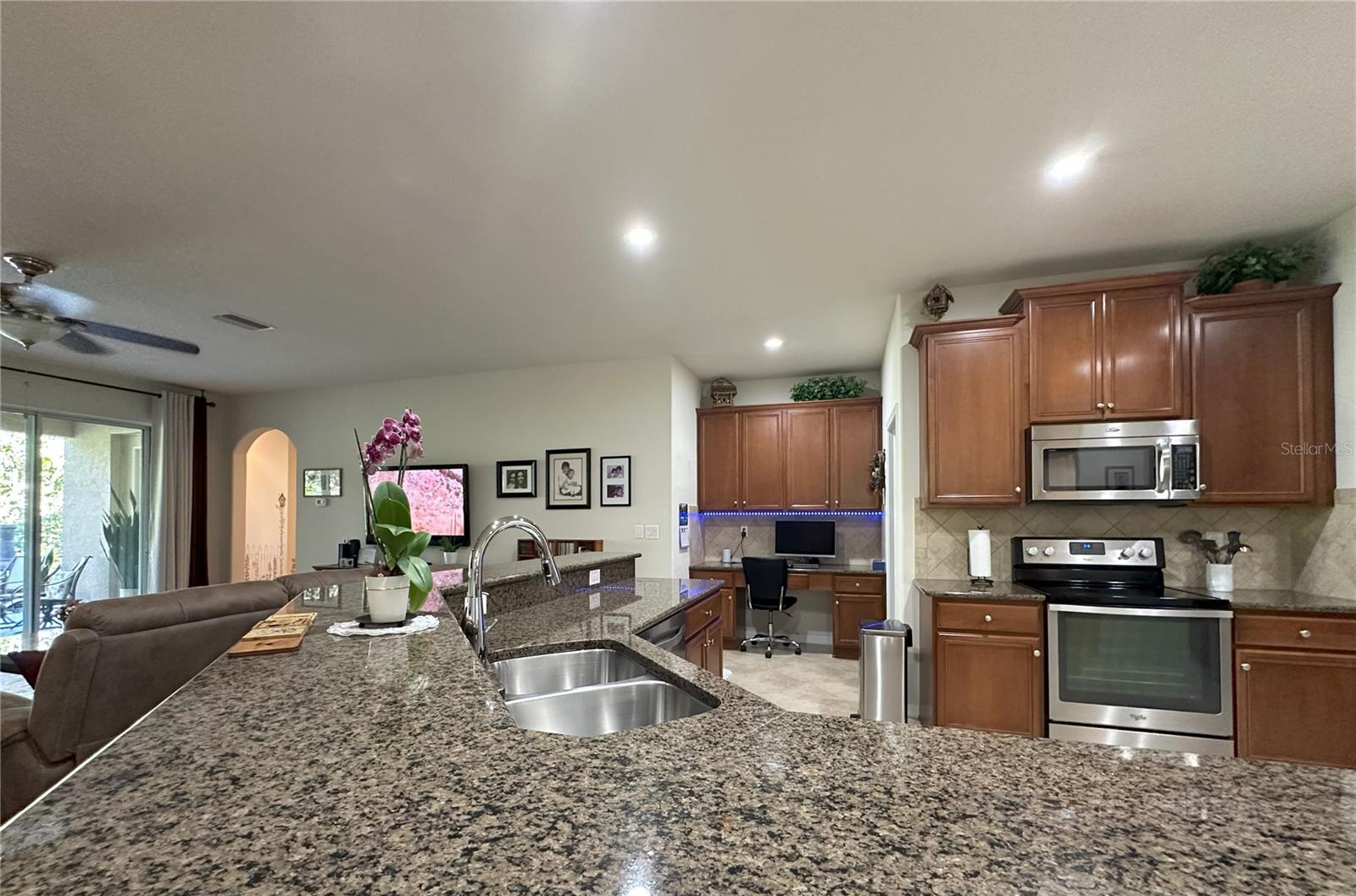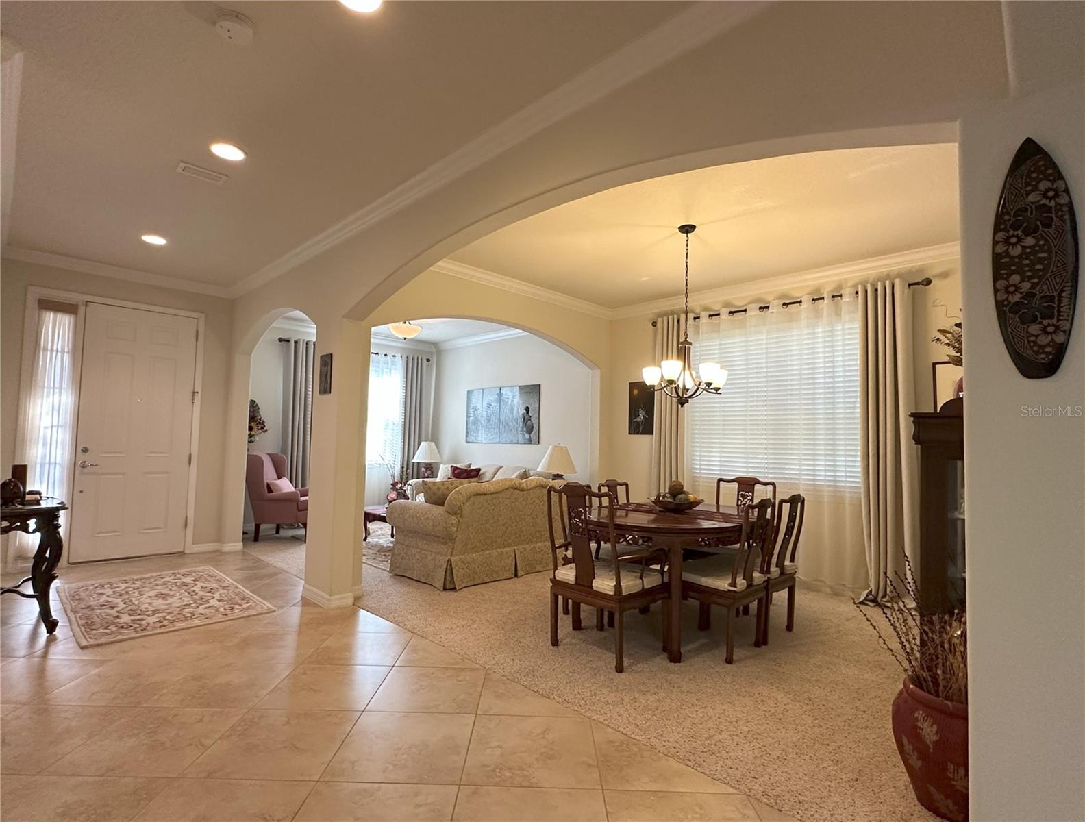 Esta casa bonita e bem conservada, localizada na subdivisão de Waterbridge altamente desejável da comunidade Stonebrier, possui 4 quartos, 3 banheiros e uma garagem em 3 carros. O expansivo hall de ladrão diagonal recebe você e seus convidados nas salas de vida e jantar formais separadas com arcos e oferece calor e uma atmosfera convidativa. A enorme cozinha possui uma grande ilha de bancada de granito, backsplash de azulejos, armários de madeira com várias camadas, todos os aparelhos de aço inoxidável, torneira touch, despensa, luzes de inundação direcionais de LED, interruptores de luzes inteligentes, área de mesa embutida e área de café da manhã separada para os pagamentos casuais. Esta cozinha central e de conceito aberto flui para a grande sala/sala da família, que é maravilhosa para reuniões ou entretenimento familiar durante as férias. A suíte do proprietário oferece um banheiro grande e privado com gabinete de chuveiro sem moldura, pias altas duplas, área de maquiagem, banheira de imersão e prateleiras personalizadas no closet. O plano de divisão de três vias fornece privacidade para todos os membros da família. O segundo quarto localizado na área frontal da casa vem com prateleiras personalizadas, tem seu banheiro privativo com bancada em granito e chuveiro de azulejos da Listello Decorativo. Os 3º e 4º quartos na área traseira da casa compartilham um banheiro com os mesmos recursos. A porta lateral da suíte do proprietário e as portas de vidro deslizantes da grande sala levam a um pátio coberto de travertino e também se abrem para um quintal verde de oásis com árvores frutíferas maduras e arbustos de privacidade circundantes. You can unwind and relax in this home's outdoor space or immerse in the community's resort style zero-depth entry pool with a splash area, waterslide, poolside cabanas and lounge chairs The Stonebrier community also features a fitness center, basketball court, soccer and cricket fields, playgrounds, and many nature preserved areas in addition to being zoned for highly-rated and desirable schools (McKitrick Elementary, Martinez Middle, and Steinbrenner High). Venha apreciar o estilo de vida relaxado que você está procurando!