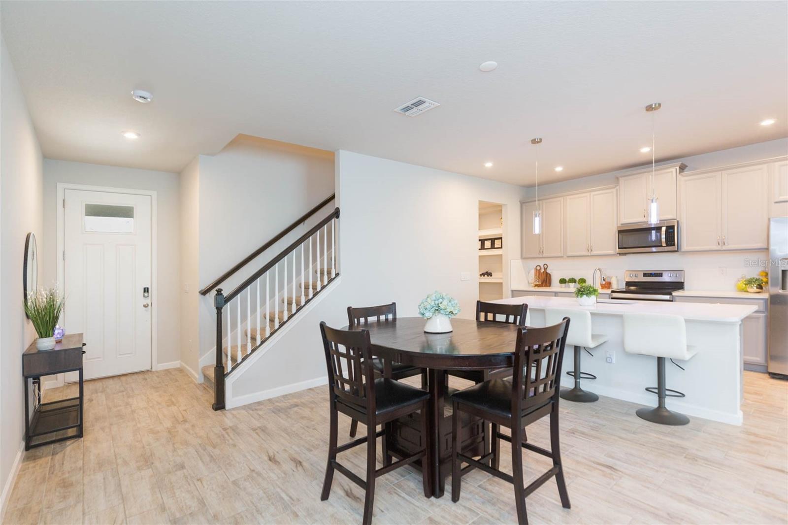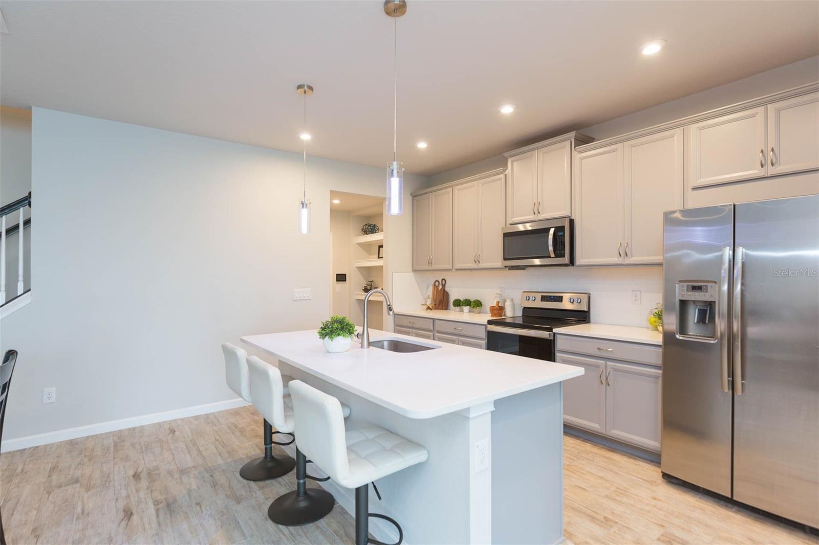Townhome requintada à beira -mar no premiado e fechado Comunidade de Parkview em Long Lake Ranch! Este condomínio foi construído em 2023, tornando -o quase novo! A Comunidade Parkview foi apresentada como a comunidade de 2021 do ano! Com 3 quartos, 2,5 banheiros, garagem de 2 carros, pouco menos de 2.300 pés quadrados e situada em um lote à beira -mar. Ao entrar, você ficará impressionado com as vistas deslumbrantes à beira -mar! O nível principal apresenta uma planta baixa que flui do jantar/cozinha para a área de estar. O nível principal é coberto de ladrilhos de madeira e acabado em uma cor de tinta neutra. A cozinha possui armários cinzentos, bancadas de quartzo, utensílios de aço inoxidável, despensa, ilha com área de comer e despensa com armazenamento abaixo da escada. Viver e jantar são imensos e oferecem acesso direto ao pátio privado, com vistas serenas e pisos com acabamento em pavimentadores. A sala de pólvora está localizada em particular na parte traseira do nível principal de um corredor recuado. Voltando ao andar de cima, você encontrará o quarto principal, dois quartos de hóspedes com banheiro, lavanderia e uma enorme área de bônus. A suíte primária está situada na parte traseira da casa e carrega aquelas vistas deslumbrantes à beira -mar! Dois armários de walk-in com um grande banheiro privativo apresentam pias duplas, chuveiro de walk-in, área do banheiro privativo e armário de linho. A área do loft está situada no centro do andar de cima, oferecendo privacidade à suíte principal dos quartos de hóspedes e oferece inúmeras possibilidades! Poderia ser usado como um cinema, sala de recreação, espaço adicional ou até mesmo um escritório em casa. Os dois quartos de hóspedes têm tamanho grande e apresentam armários. Os são entremelados por um banheiro de hóspedes com pias duplas, banheira/chuveiro e armário de linho. A comunidade de Long Lake Ranch é quase como morar em seu próprio resort particular! As comodidades são infinitas e algumas incluem: uma piscina, parque de cães, fogueira, cabana, doca com trilha de caminhada ao redor do lago e todos sendo meticulosamente mantidos. Localizado em Lutz, perto das linhas de Hillsborough e Pasco County, você está realmente no centro de tudo! Zonas escolares classificadas estelares! A menos de 5 quilômetros da via expressa dos Veteranos e nas proximidades da I-75! Tudo o que você precisa é de apenas momentos, incluindo: Publix, Mission BBQ, McDonalds, Starbucks, Dunkin Donuts, cozinha fresca e muito mais! HOA baixo de apenas US $ 265 por mês e inclui água! Este lugar realmente tem tudo!