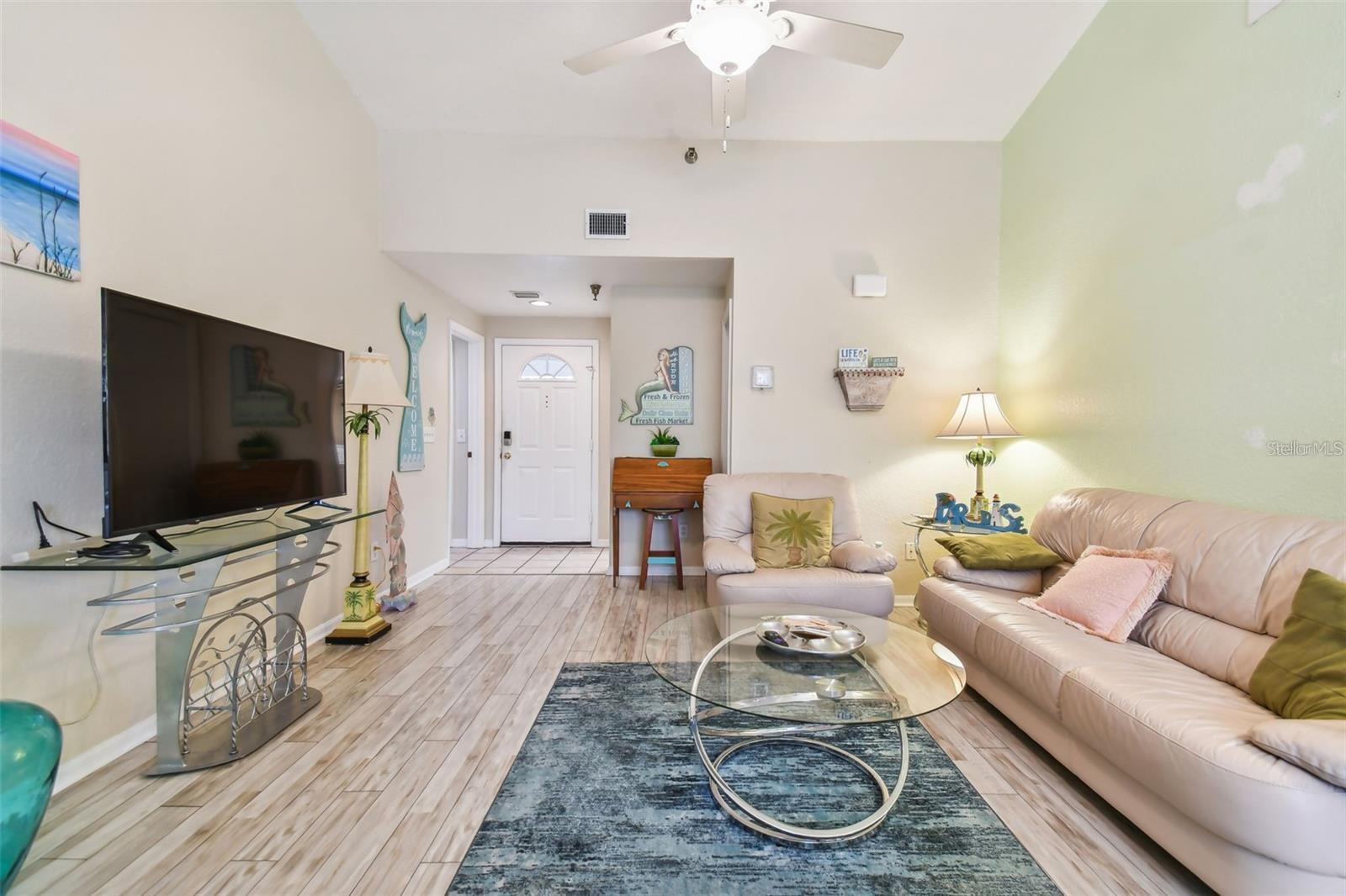 Oportunidade de renda !!! Condomínio mobiliado de 2 leitos/2 banheiros com tetos abobadados na comunidade opcional de nudistas/roupas das fontes em Paradise Lakes. A planta baixa de um único nível apresenta bloqueio de estúdio com entrada privada, varanda exibida, banho completo e cozinha compacta. O Studio possui inquilino e unidade principal de 12 meses que gera aluguel de Airbnb e atualmente está sendo avaliado quanto a aluguel de longo prazo por algumas perspectivas, o lado principal tem um quarto primário privado com varanda privada, vaidade dupla e chuveiro. A cozinha tem alcance, geladeira, microondas embutidas, lava-louças, descarte, armário de despensa, bar de café da manhã e muito armazenamento. Área leve e brilhante de vida/jantar com espaço para relaxar. Lavanderia interna com lavadora/secadora de tamanho completo e armário de armazenamento. Móveis e aparelhos. Um local de estacionamento coberto atribuído transmite com a unidade. O comprador é responsável por verificar todas as informações e dimensões. A aprovação da Associação de Condomínio do Comprador necessária, incluindo aplicação, taxa, verificação de antecedentes e associação de uma organização nudista reconhecida. Resort opcional de associação ao Paradise Lakes não incluído na taxa mensal da Associação de Condomínios. incluído na taxa mensal do condomínio,