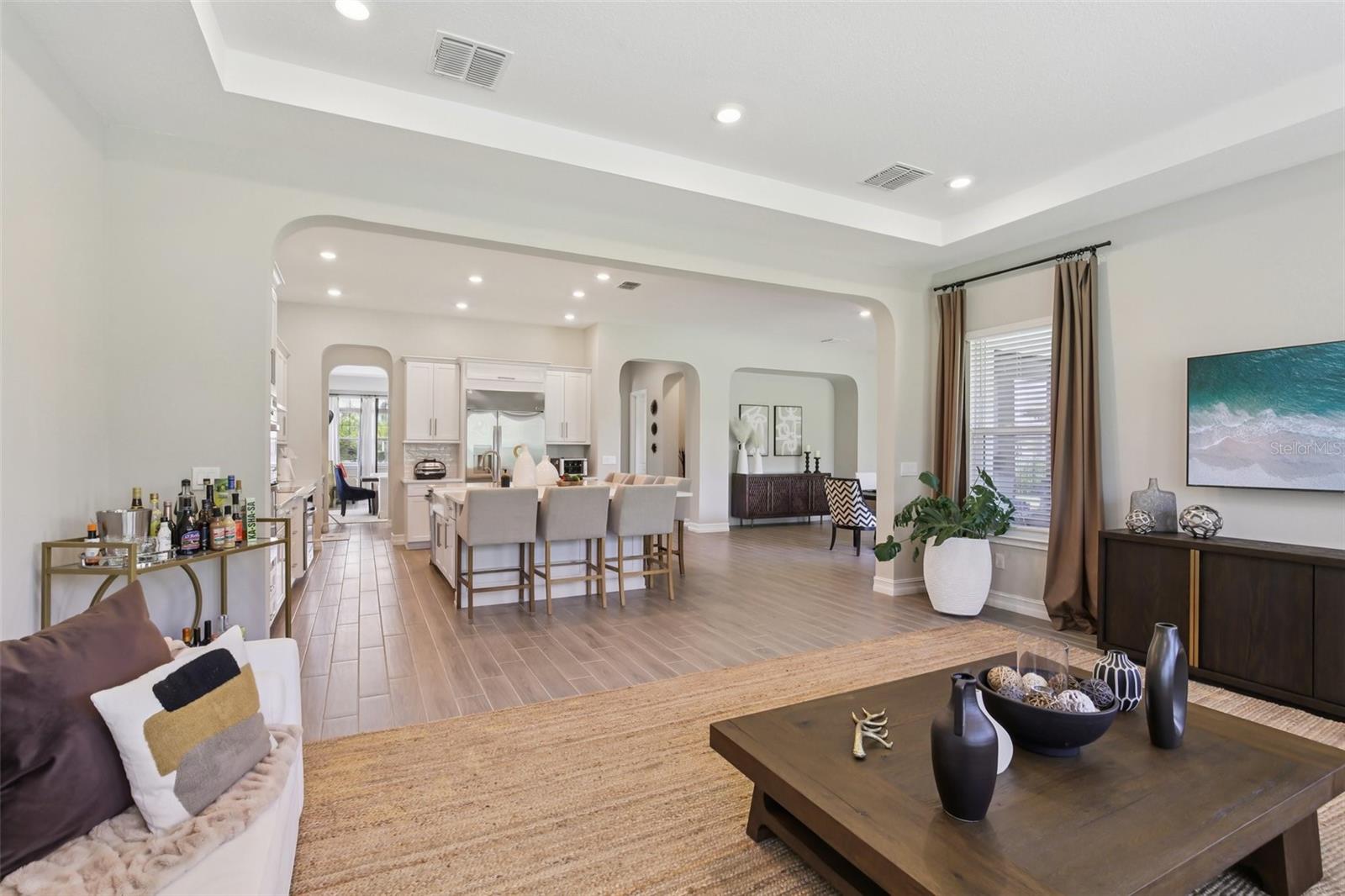 Delicie-se com um estilo de vida incomparável de elegância e conforto nesta magnífica casa de propriedade de 6 quartos e 4,5 banheiros, localizada na comunidade fechada e fechada da Cordoba Ranch Estates. Esse modelo quase novo Ventura foi construído pela WCI Homes em 2022 e oferece conforto e luxo incomparáveis. Ao pisar na grande entrada, você é recebido por tetos de 6 metros e uma escada variável. O design dramático e sofisticado, incluindo portas arqueadas graciosas e uma planta de conceito aberto, criam uma experiência de vida premium. Entreça com facilidade nas grandes salas de vida formal e de jantar, acentuadas por tetos elegantes da bandeja e luz natural abundante. Uma despensa bem equipada, incluindo um generoso bar seco e a despensa de sonho do chef, conecta perfeitamente a cozinha gourmet à sala de jantar formal, garantindo um serviço impecável para seus jantares. A cozinha impressionante e sofisticada é uma obra-prima de estilo e função. Os armários brancos primitivos são perfeitamente complementados por hardware de níquel escovado, bancadas de quartzo reluzente e uma grande pia de avental. Todos os detalhes foram cuidadosamente projetados, incluindo gavetas de perto e um backsplash de azulejos brancos que se estende até o teto. A expansiva ilha central, com assentos confortáveis para seis, é ideal para refeições casuais e conversas animadas. Uma sala de jantar secundária da cozinha, com deslizantes triplos que levam para fora, oferece um espaço brilhante e convidativo para refeições diárias. Dois quartos espaçosos, ambos com closets, estão convenientemente localizados no nível principal. A grande lavanderia é um modelo de conveniência, com amplas bancadas, uma pia e armários generosos. Suba a escada para descobrir um refúgio particular de relaxamento e recreação. Anfitrião noites de cinema inesquecíveis na espaçosa sala de teatro, onde você pode criar memórias duradouras com familiares e amigos, depois saia para a varanda adjacente para relaxar e apreciar o ar fresco juntos. A suíte primária é um verdadeiro retiro, com acesso privado a uma varanda coberta, um camarim privado com dois grandes armários e um banheiro privativo do tipo spa. Relaxe na banheira do jardim ou no chuveiro, completo com chuveiros duplos e um gabinete de vidro sem moldura. Um dos três quartos adicionais no andar de cima inclui seu próprio banheiro privativo, enquanto outro banheiro completo serve os quartos restantes. Um escritório dedicado com um teto dividido distinto oferece o santuário perfeito para o trabalho de casa. Saia para a extensa Lanai coberta com vista para o amplo quintal traseiro e lateral, oferecendo uma tela em branco para a sua piscina dos sonhos e cozinha ao ar livre. Viver em Cordoba Ranch Estates se estende além da sua linha de propriedades com um fabuloso centro comunitário de amenidade. Desfrute de um estilo de resort com uma piscina de entrada na praia, uma área de respingos para crianças e uma área de playground e piquenique. Mantenha -se ativo com quadras de basquete, raqueteball e tênis. Embora esta casa ofereça uma sensação pacífica e isolada, você apreciará a conveniência de estar a poucos minutos de hospitais de primeira linha como Moffitt Cancer Center, Hospital VA e Advent Health. Uma grande variedade de opções de refeições e compras também está próxima e você está a apenas 30 minutos de carro do Aeroporto Internacional de Tampa e do vibrante centro de Tampa.