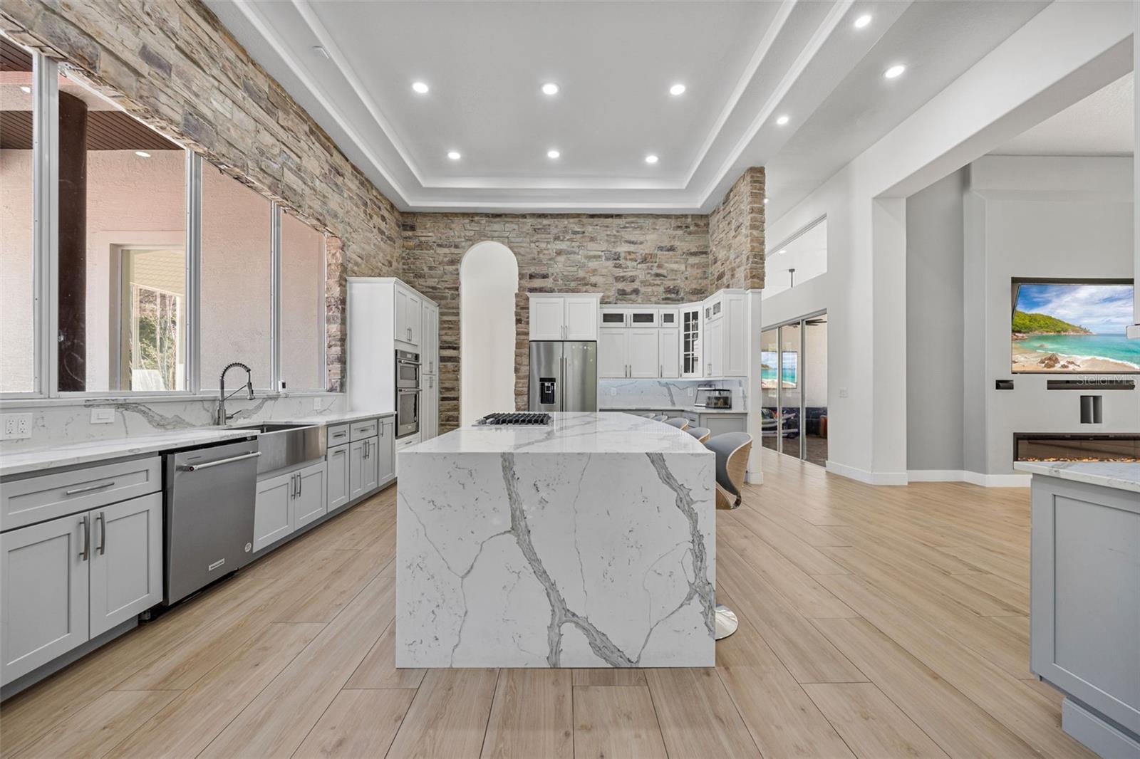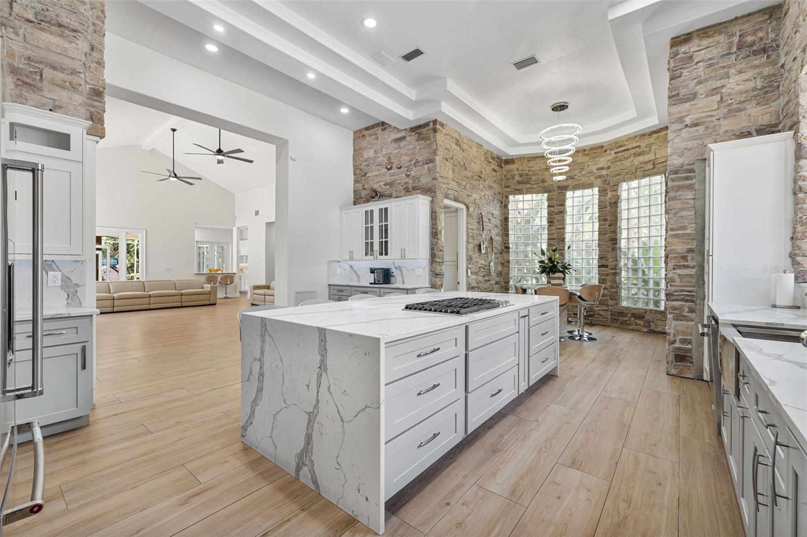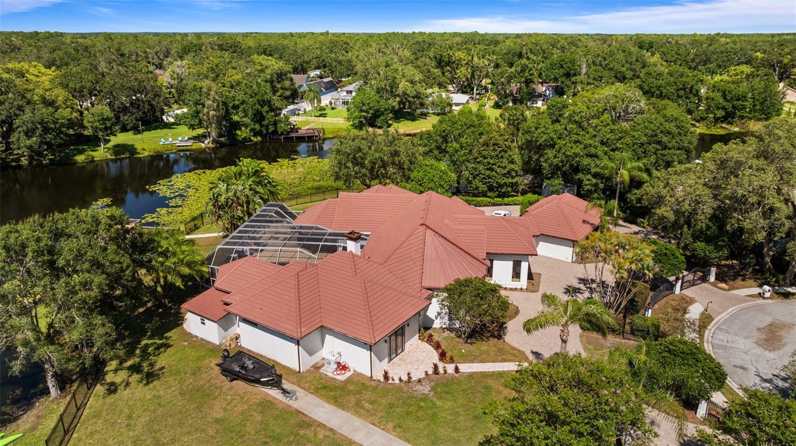 Melhoria de preços! Bem -vindo a Tiffany Lake Manors, onde a vida de luxo encontra uma felicidade serena à beira -mar. Esta propriedade à beira do lago recém-modernizada oferece 4 quartos, 3,5 banheiros, uma garagem de 3 carros com uma oficina dedicada e uma expansiva 5.220 pés quadrados de espaço elegante, todos situados em um lote privado de 2,5 acres, com vistas de água de 180 °, embutidas. Passe por suas portas de vidro de impacto de entrada dupla personalizadas em uma casa projetada para impressionar, com ladrilhos de porcelana com aparência de madeira por toda parte e acabamentos de ponta de alta com curadoria. A cozinha do chef possui uma fogão a gás de 6 queimadores, bancadas de cachoeira de quartzo, appliances de KitchenAid, uma geladeira embutida, pia da fazenda, cafeter bar e despensa com espaço para uma segunda geladeira. Paredes de sotaque de pedra e luz natural abundante criam uma mistura perfeita de elegância rústica e design moderno. A suíte primária é o seu santuário pessoal, com uma área de estar privada, dois armários enormes com ilhas, iluminação LED e uma banheira de broto de spa, com uma banheira de brotamento de spa. Adjacente é uma academia em casa dedicada com vista para o lago para o melhor com a conveniência do bem -estar. Vários espaços divertidos incluem uma sala familiar, uma sala de estar separada com tetos abobadados e uma elegante lareira moderna. Na parte de trás da sala, há um bar molhado que se abre para a área de piscina em estilo resort. Ao ar livre, desfrute da sua triagem em piscina de água salgada aquecida com decks de pavimentadora de tijolos, uma área de lounge de fogueira e um lanchone coberto-todos com vista para a doca particular em um lago de caiaque e pesca. Os quartos secundários oferecem privacidade e conforto-incluindo uma suíte de hóspedes com banheiro privativo e quartos adicionais compartilhando um elegante banheira de jack-and-jill, todos com chuveiros de chuva, pias de embarcação e acessórios de ponta. Todos os banheiros apresentam banheiros ANZZI BIDET sem toque com recursos avançados. Os destaques adicionais incluem: Novo Dutos A/C (2023) e All-Now (2020), sotaques arquitetônicos de bloqueio de vidro de impacto, propriedades totalmente cercadas e fechadas, torneiras ativadas por toque doméstico inteligentes por toda parte, Generac Home Generator. Esta peça de exibição oferece uma vida no estilo resort com privacidade, luxo e vistas inigualáveis ao lago, enquanto ainda oferecem acesso fácil ao centro de Tampa e tudo o que tem a oferecer. Não perca a oportunidade de possuir esta propriedade única da Flórida!