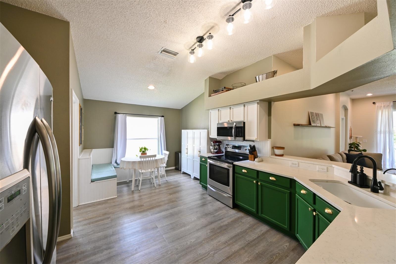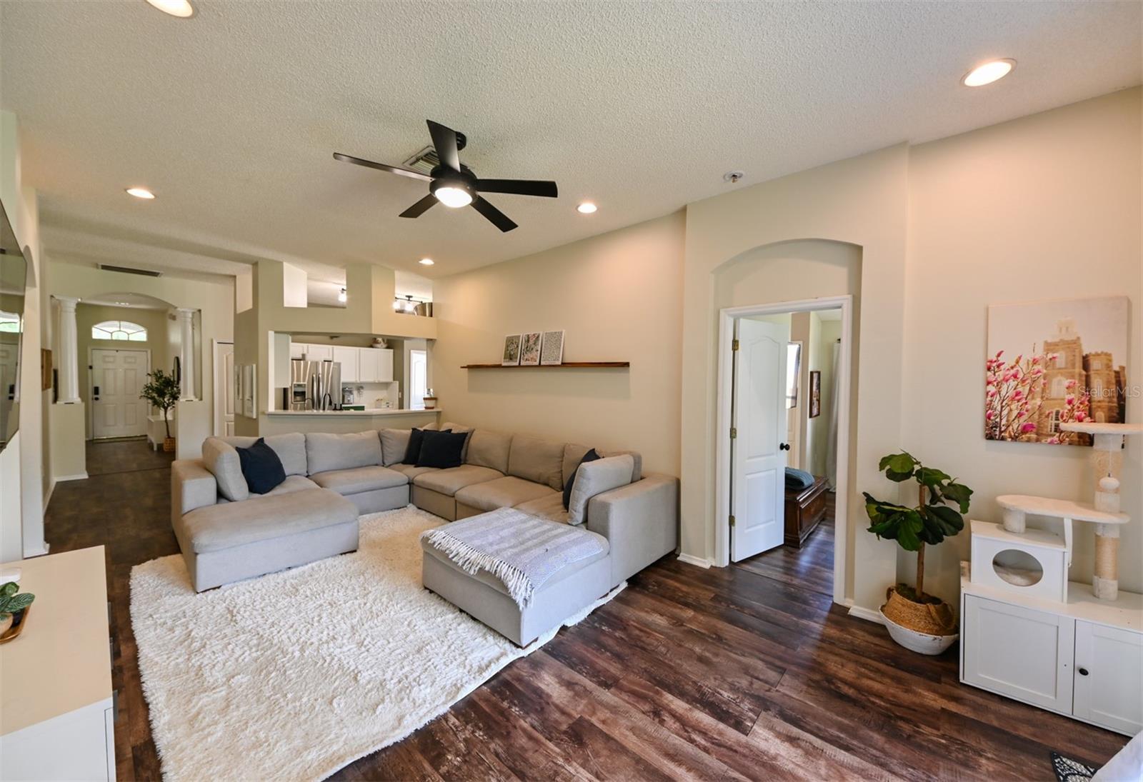 Descubra esta casa atualizada bem mantida no bairro de Villa Rosa, em Lutz, localizado nas escolas mais bem classificadas; McKitrick, Martinez e Steinbrenner. Apresentando 4 quartos, 2 banheiros e uma garagem convertida de 2 carros que é aquecida e resfriada pelo principal HVAC (não uma mini divisão). Esta casa tem muito a oferecer! Entrando na entrada da casa, você encontrará a área formal de estar e jantar. A planta aberta é ideal para se divertir com a cozinha no coração da casa, com bancadas de quartzo, utensílios de aço inoxidável, refeições para comer e muito espaço para preparação e armazenamento de alimentos. Piso de vinil por toda parte, tetos abobadados, quarto primário com suíte e grande closet, quartos secundários de tamanho amplo. A garagem é versátil, pode funcionar como garagem, oficina ou espaço habitável. O quintal está totalmente cercado. Telhado (2022), aquecedor de água sem tanque (2022), HVAC (2022). Localizado próximo a Publix Grocery (4 milhas), Veterans Expressway/Suncoast (1,4 milhas), Aeroporto Internacional de Tampa (18 milhas), campo de golfe TPC Tampa Bay (1,4 milhas) e muito mais.