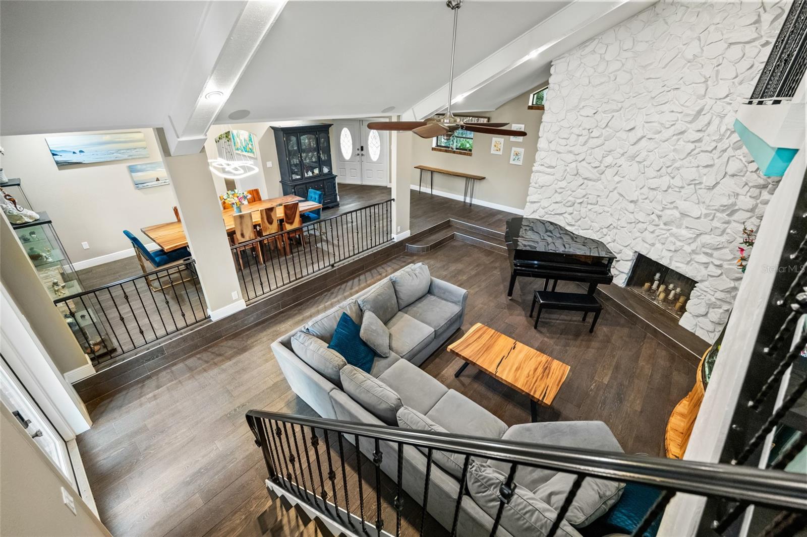 Bem-vindo ao 602 Druid Way, uma propriedade privada à beira do lago escondida em 2,63 acres no coração de Lutz. Com seis quartos, cinco banheiros e mais de 4.500 pés quadrados, esta casa com arquitetura distinta oferece total privacidade e 125 pés de frente para o lago, ideal para esportes aquáticos e vistas tranquilas do pôr do sol. Além do portão privado, você encontrará um interior totalmente atualizado que combina charme rústico com luxo moderno. A cozinha gourmet possui uma claraboia deslumbrante, armários personalizados e novos eletrodomésticos Bosch. Divirta-se com facilidade nas salas de estar e jantar formais ou relaxe ao lado da lareira na espaçosa sala familiar, completa com lareira de tijolos a lenha. A planta dividida inclui suítes primárias no andar de cima com varandas que oferecem vistas deslumbrantes do lago e das árvores cobertas de musgo. Saia e mergulhe em um paraíso da Flórida. A ampla varanda com tela abriga uma piscina cintilante e um spa, criando um retiro tranquilo a poucos passos da beira da água. Desfrute de refeições ao ar livre durante todo o ano, café da manhã à beira do lago ou noites sob as estrelas. O formato único do lote garante maior privacidade, com gramados exuberantes, paisagismo maduro e muito espaço para atividades recreativas, jardinagem ou simplesmente desfrutar da natureza. Sem HOA e com um ambiente que parece um resort privado, este é o melhor estilo de vida à beira do lago.