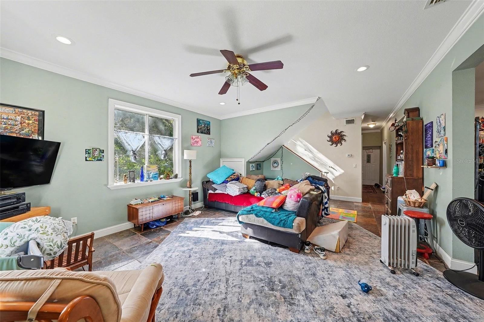 Oportunidade perfeita no altamente desejável distrito escolar de Steinbrenner! Esta propriedade única oferece flexibilidade e espaço excepcionais, ideal para habitação multigeracional ou personalização futura. O primeiro andar da casa principal possui três quartos - um com closet - duas cozinhas completas e uma espaçosa área de estar e jantar 15 x 22, perfeita para reuniões e vida cotidiana. O amplo segundo andar abriga o quarto principal com banheiro privativo, juntamente com uma grande área aberta de 28 x 19 que pode facilmente servir como quarto adicional, sala de mídia ou espaço bônus. Este nível é destacado por um teto de madeira personalizado e acesso a uma grande varanda, criando um retiro acolhedor e convidativo. Recursos adicionais incluem sancas, bancadas de superfície sólida, janelas atualizadas e armazenamento abundante por toda parte. Um estúdio independente com banheiro completo oferece excelente versatilidade - ideal para hóspedes, um escritório doméstico ou um espaço de artesanato/oficina. Situada em quase meio acre com amplo estacionamento, esta casa oferece espaço e privacidade. A propriedade é uma venda somente à vista e precisa de um pouco de TLC, sendo uma ótima oportunidade para agregar valor. Convenientemente localizado perto de escolas de primeira linha (divididas em Steinbrenner), lojas, restaurantes, parques municipais e muito mais. Agende sua exibição hoje mesmo!