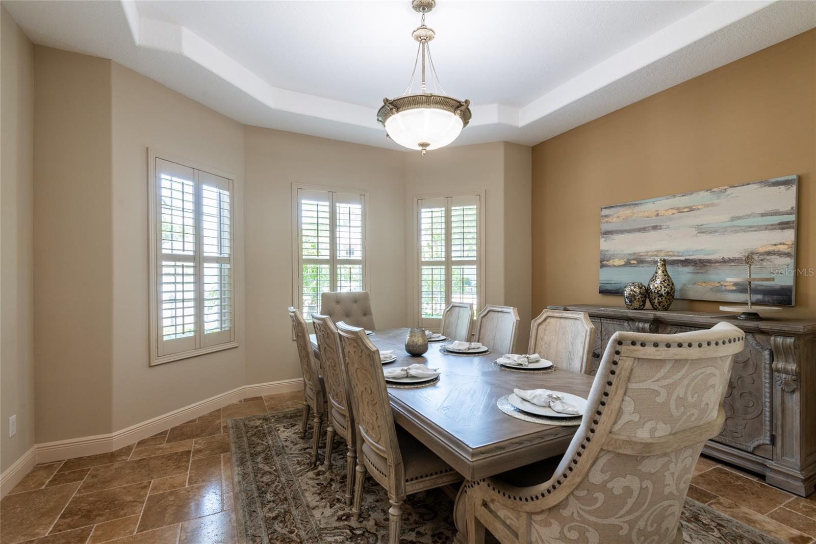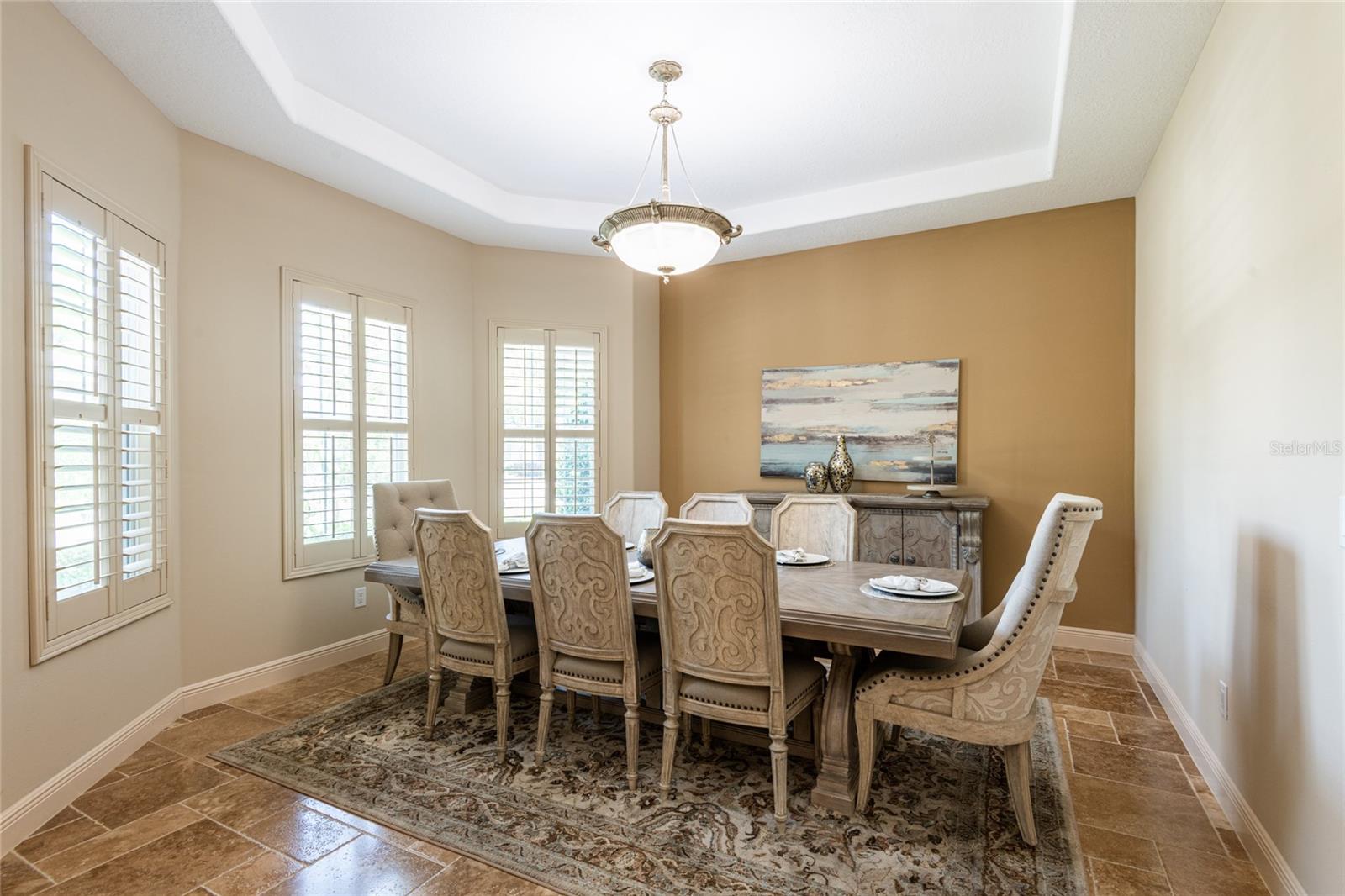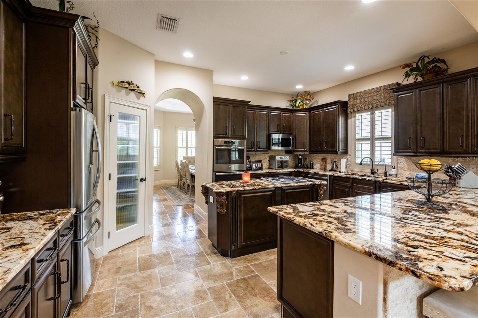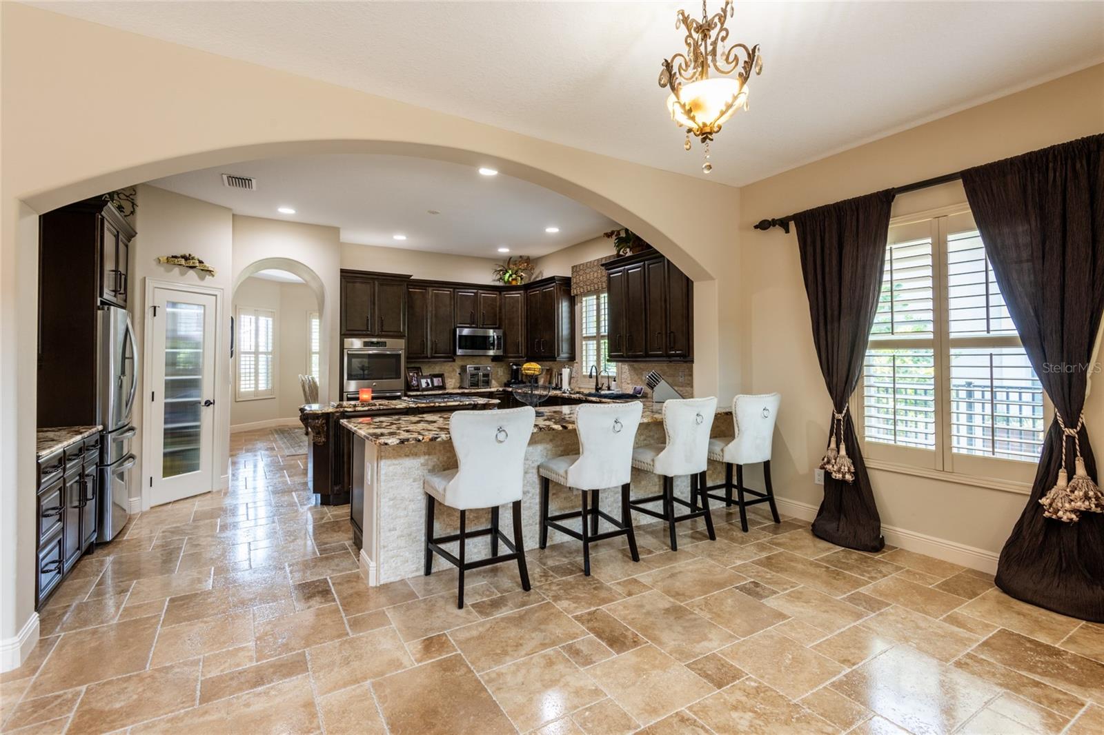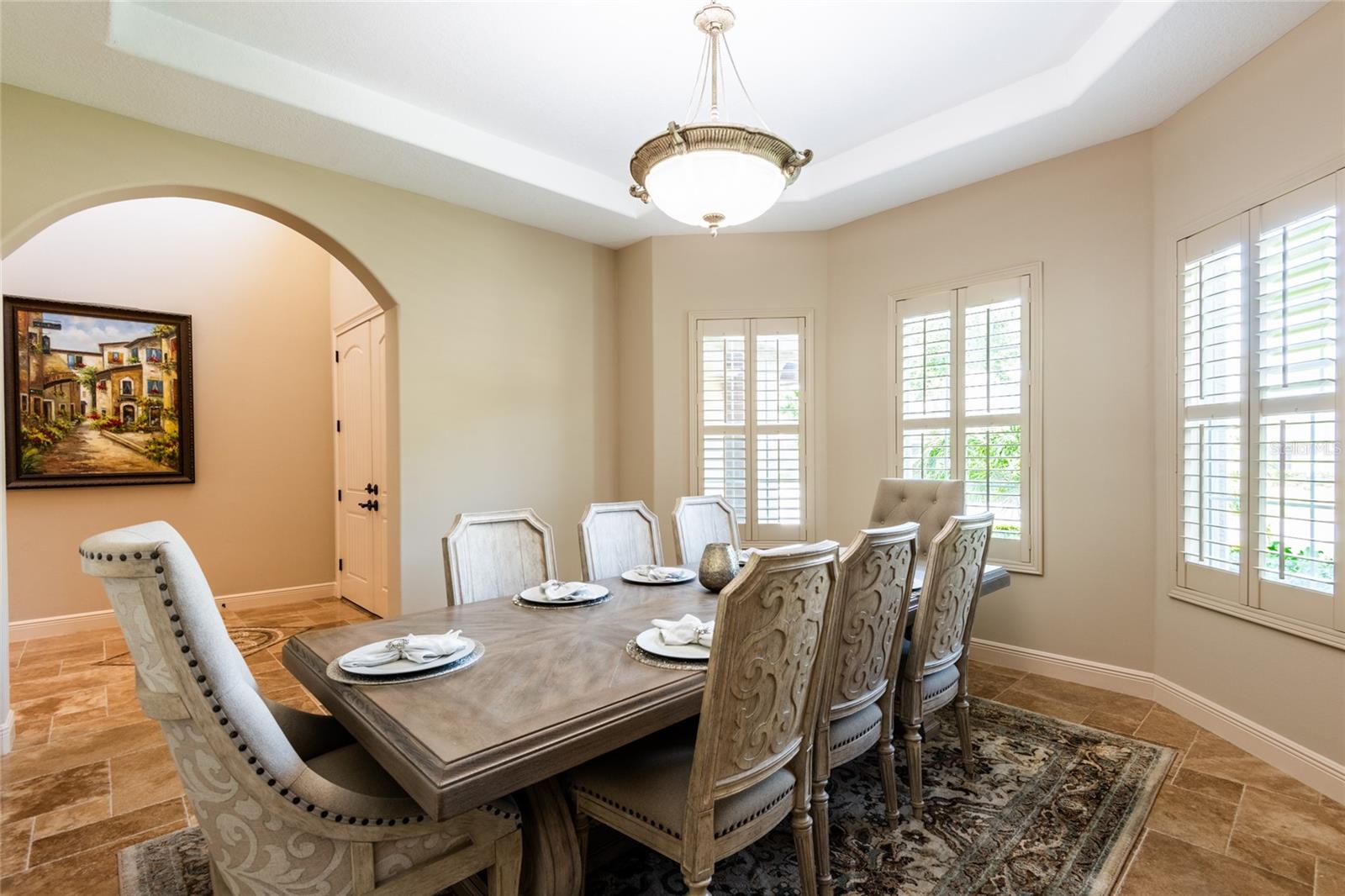 A serenidade o aguarda: a joia da Toscana redefine o golfe e os clubes de campo que vivem em Cheval! Esta casa personalizada de alta qualidade, construída para durar, com 3 quartos e 3,5 banheiros, oferece todo o conforto e comodidades de luxo que você poderia desejar. Uma grande entrada com 2 portas duplas dá o tom assim que você pisa no piso de mosaico de travertino em toda a área de estar principal do primeiro andar. Através da abertura em arco você é recebido pela grande área de jantar formal com teto em bandeja. Ao virar da esquina está a cozinha lindamente decorada com armários de 42 ”e assentos tipo península para 4 pessoas que se abrem para a sala de café da manhã e sala de família, lindas bancadas de granito, despensa com prateleiras embutidas, eletrodomésticos de aço inoxidável incluindo forno duplo, micro-ondas embutido, geladeira francesa e lava-louças Bosch. A ilha de borda chanfrada possui um fogão a gás e uma adega refrigerada Haier com bastante espaço para preparação. Pedra caída adorna o backsplash e frente da barra de café da manhã. O grande teto da sala Family chama a atenção para as janelas do clerestório que inundam a sala com luz. Muito espaço para se divertir com a família ou receber amigos. Fácil acesso através dos controles deslizantes triplos para a varanda com tela para vida ao ar livre. Entre na suíte principal pelas portas duplas e descubra luxuosos pisos de madeira de lei projetados em tábuas largas, um teto falso e portas francesas para a varanda. Seu banheiro principal é completo com 2 armários embutidos personalizados, pia dupla, banheira de imersão, chuveiro separado com nicho de toalete e vaso sanitário. Escondido na frente da casa está um banho de pó com pia e luminárias de bronze que destacam o toque toscano. O escritório privativo também é aprimorado com piso de madeira de lei projetada em tábuas largas. Através da lavanderia com armários de 42 ”e muito espaço dobrável, a garagem abriga 2 carros, armazenamento fixo no teto de aço, esquentador sem tanque, amaciante de água/sistema de osmose reversa e pia. Não perca o piso epóxi metálico! Os balaústres de ferro e as escadas de madeira transportam você para o segundo andar com um loft/sala bônus (facilmente convertido em um 4º quarto). Você encontrará um grande quarto com closet embutido, 2º banheiro e um 3º quarto ainda maior com banheiro privativo e amplo closet embutido dos seus sonhos. Todo o 2º andar é decorado com tábuas largas de madeira projetada, exceto ambos os banheiros que possuem ladrilhos de travertino caídos. As características especiais desta joia incluem telhado de telha cilíndrica, venezianas por toda parte, luminárias atualizadas, rodapés de 6 ”, portas de painel em arco de 8 pés com alavancas de bronze, cerca para cães, sistema de segurança ADT e armazenamento embutido em todos os armários. Pouco menos de 3 km do Clubhouse, com um restaurante recém-reformado e centro atlético, pickleball, piscina, basquete, tênis e playground. Cheval abriga um campo de golfe semiprivado de 18 buracos, com entrada de guarda tripulada 24 horas. Escolas com classificação A+ do lado de fora dos portões (Steinbrenner, Martinez, Mckitrick)! Fácil acesso ao aeroporto TPA, praias e outras atrações da região através da Via Expressa dos Veteranos. Configure sua exibição hoje!