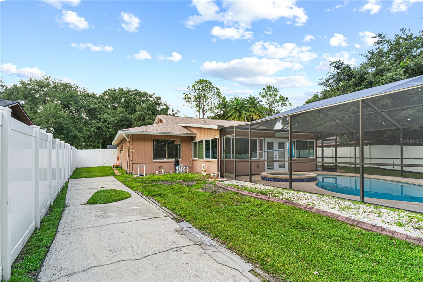Descubra esta bela casa unifamiliar em Wesley Chapel, idealmente localizada sem taxas de CDD ou HOA. Esta recém-renovada casa de três quartos e dois banheiros apresenta um design moderno de conceito aberto que conecta perfeitamente a cozinha e a sala de estar, criando uma área espaçosa e convidativa. Aproveite os benefícios de um telhado totalmente novo, banheiros atualizados e uma linda piscina privativa, perfeita para viver na Flórida. A casa possui garagem totalmente acabada com entrada privativa, banheiro completo e kitchenette, oferecendo flexibilidade para servir como suíte da sogra ou gerar renda adicional. A propriedade também inclui um quintal totalmente vedado, aumentando a privacidade e a segurança. Convenientemente localizada a poucos minutos do Tampa Premium Outlets, restaurantes, shopping centers e a apenas 30 minutos do Busch Gardens, esta casa apresenta uma excelente oportunidade de investimento. Não perca esta joia pronta para morar! ?