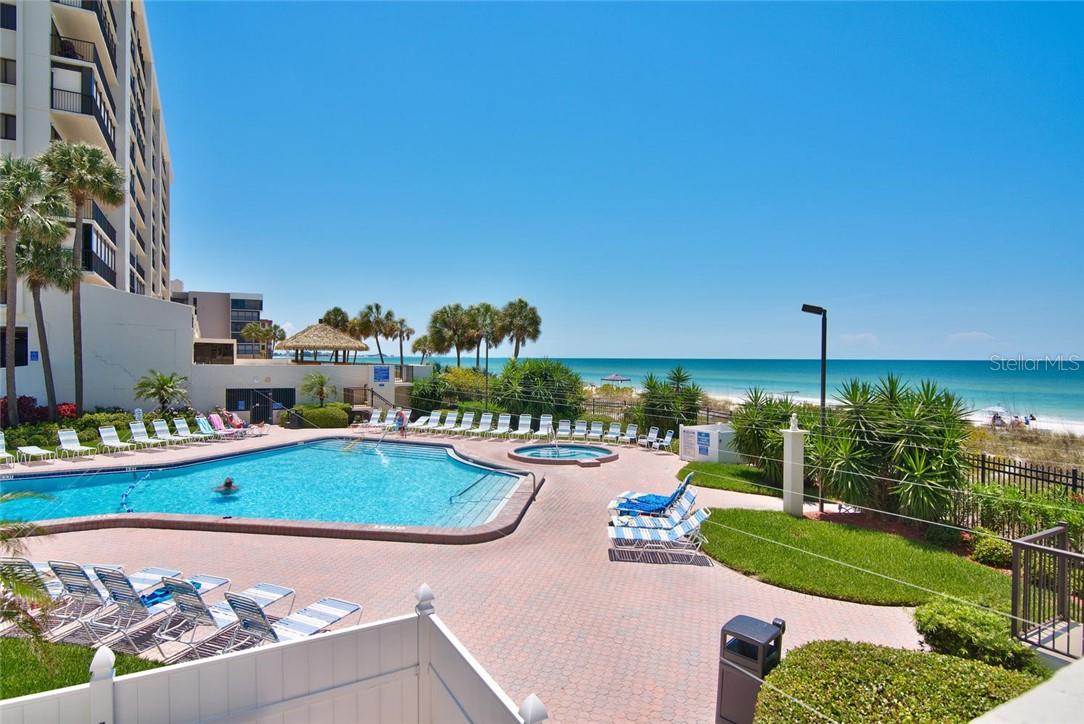 Na praia. Condomínio Ocean Sands. Varanda Privada no 11º Andar. Vistas espetaculares do Golfo e da Intracoastal, cozinha completa, banheiro e despensa com nova lavadora e secadora. Piscina comunitária, spa, cabana Tiki e churrasqueira. Garagem, uma milha ao norte de John’s Pass. Tudo está a uma curta distância. Financiamento do proprietário disponível.