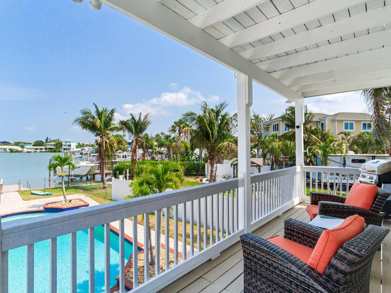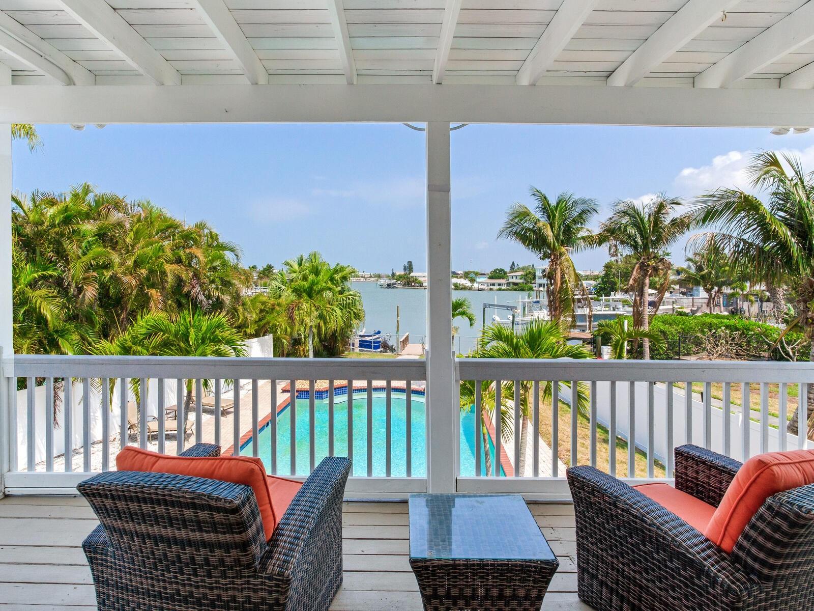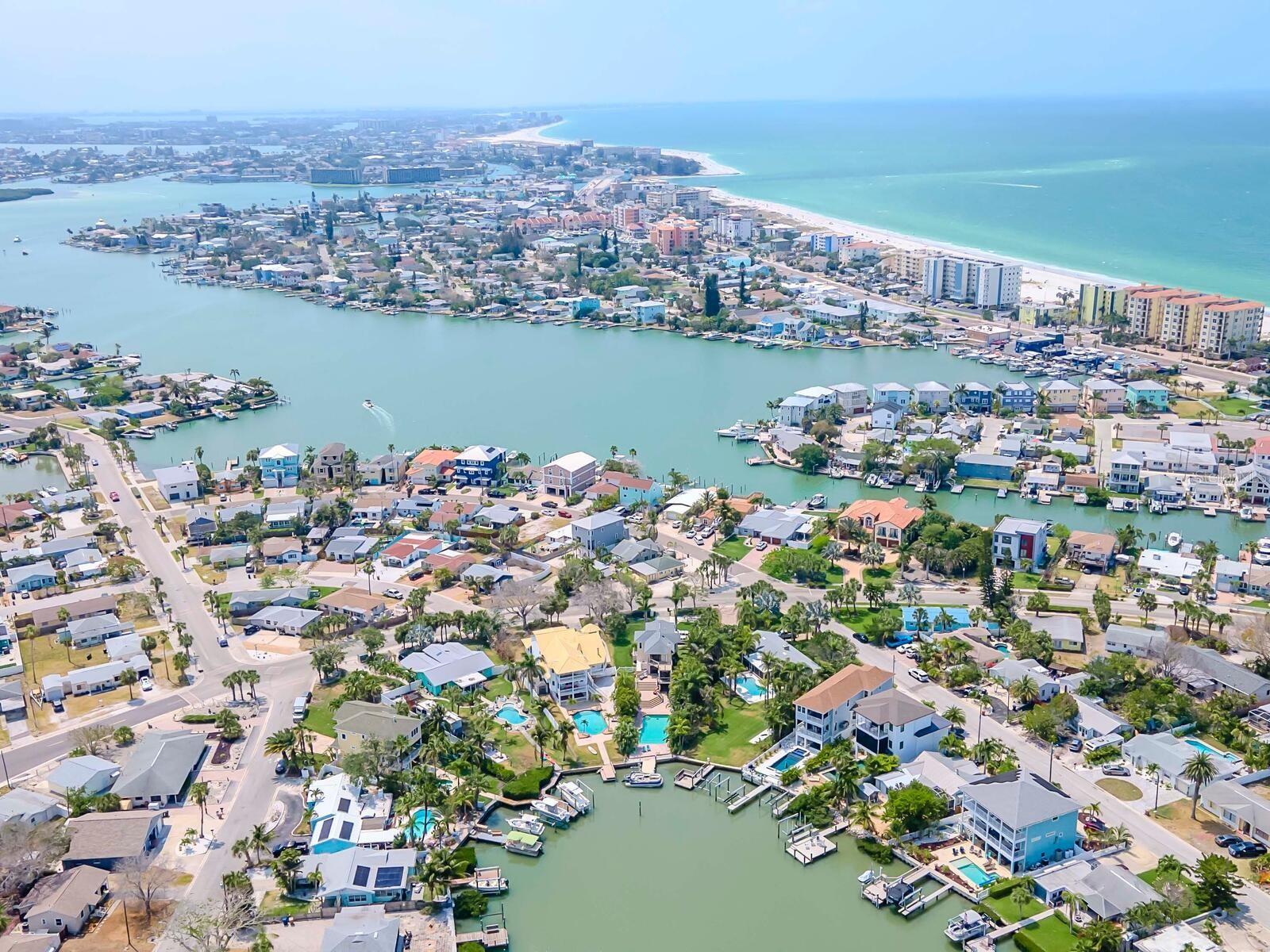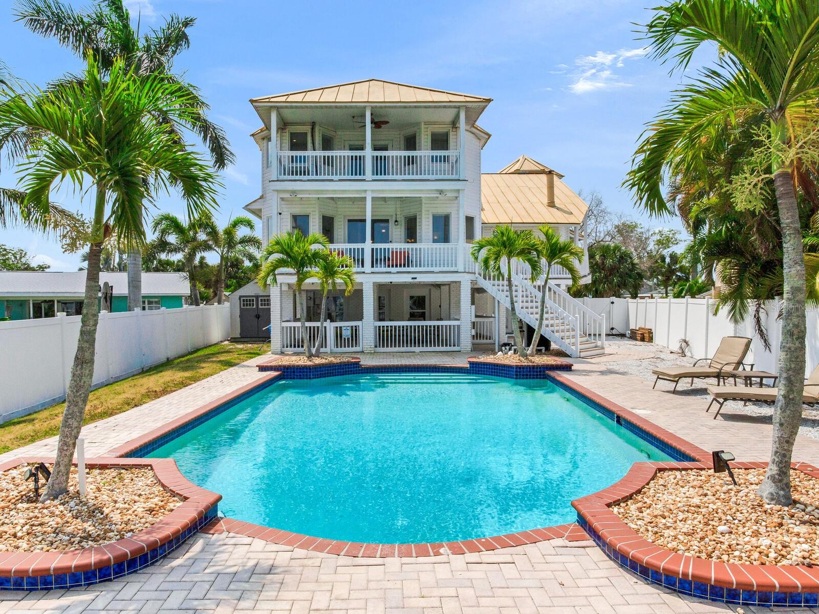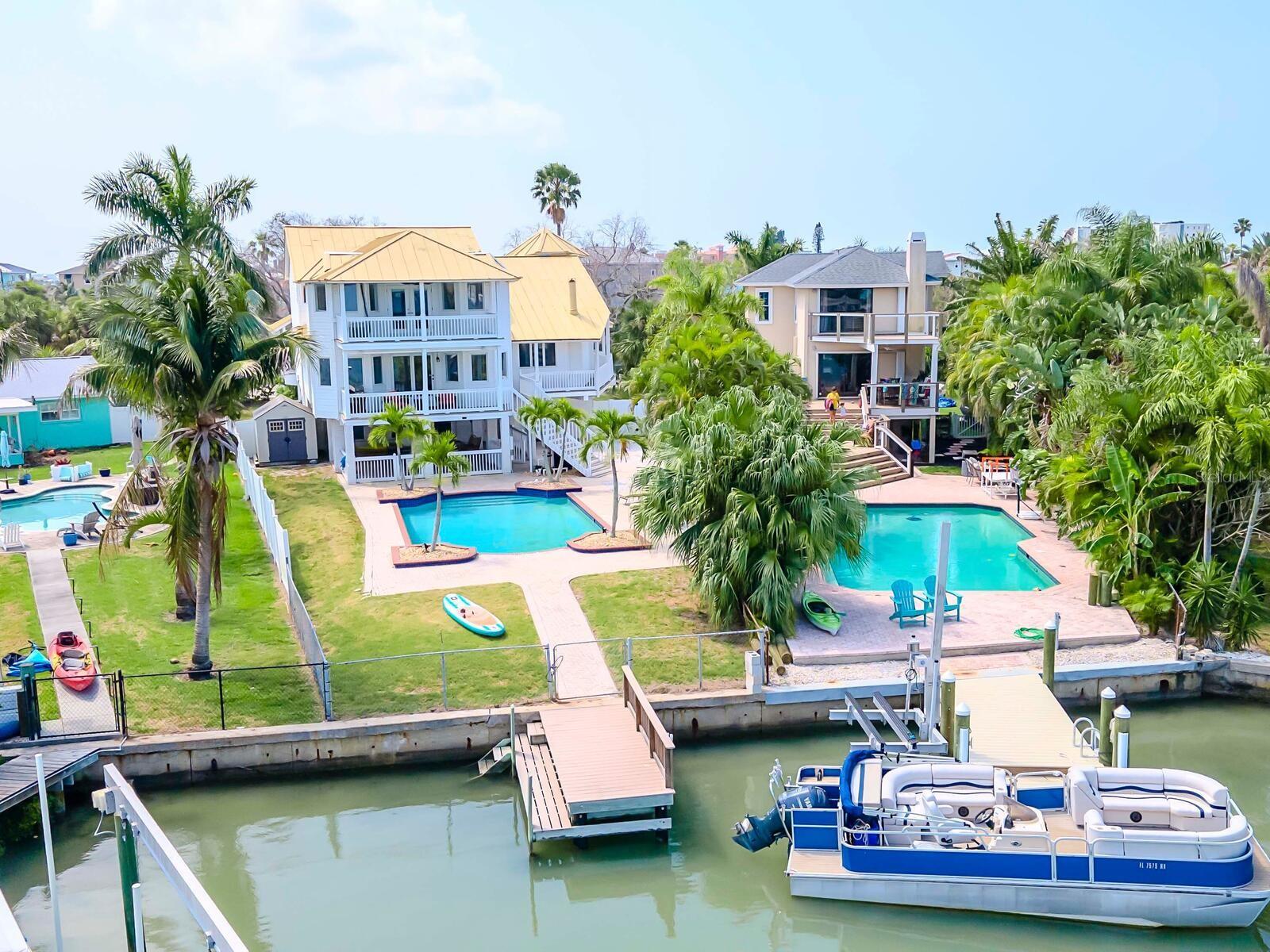 Delicie-se com o epítome da opulência costeira nesta magnífica propriedade em estilo Key West, idealmente posicionada na 414 140th Avenue East, Madeira Beach, FL. Sendo uma das maiores casas de Madeira Beach, esta obra-prima de vários níveis oferece um ambiente amplo e convidativo, adornado com vistas deslumbrantes da Baía de Boca Ciega que certamente irão cativar. Com uma variedade de varandas na frente e nos fundos, e uma varanda envolvente que leva à frente e ao quintal, esta residência integra perfeitamente o deslumbrante ambiente natural em seu design luxuoso. Saia para descobrir o seu paraíso pessoal. A piscina de design personalizado, situada em meio a um deck lindamente pavimentado e um pátio coberto para entretenimento à beira da piscina, convida você a relaxar e aproveitar o sol da Flórida. Do seu quintal, um curto passeio de barco transporta você até o renomado John's Pass, proporcionando acesso fácil às águas abertas do Golfo e a uma variedade vibrante de opções de restaurantes e compras à beira-mar. O Golfo do México, com as suas excepcionais oportunidades de pesca, também fica a apenas uma breve viagem de barco, ideal para os entusiastas de atividades ao ar livre mais exigentes. Elevada acima do padrão, esta casa nunca sofreu inundações, oferecendo tranquilidade e segurança em sua localização privilegiada. A localização privilegiada da propriedade, a poucos passos da praia, garante que você esteja sempre a poucos passos da sua porta da frente das praias arenosas imaculadas e das ondas suaves do Golfo do México. No interior, o nível principal oferece uma transição perfeita para o espaço externo privado, perfeito para entretenimento elegante tendo como pano de fundo vistas cativantes da orla marítima. A casa possui dois quartos principais, um no andar principal com banheiro privativo e varanda. O andar superior é dedicado à segunda luxuosa suíte principal, com um amplo closet e um banheiro privativo inspirado em spa, completo com uma suntuosa banheira de imersão e acabamentos requintados. Aproveite a oportunidade de possuir esta propriedade extraordinária e experimentar o auge da vida costeira. Organize hoje mesmo uma visita privada e eleve o seu estilo de vida neste santuário incomparável de Madeira Beach.