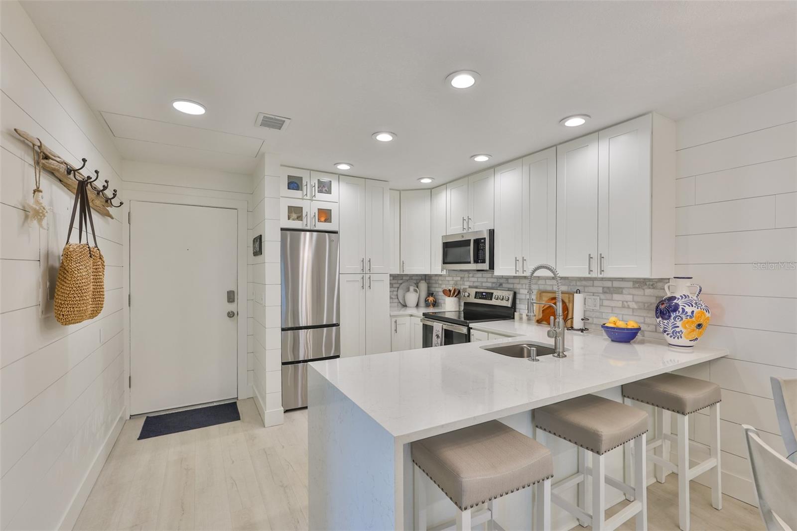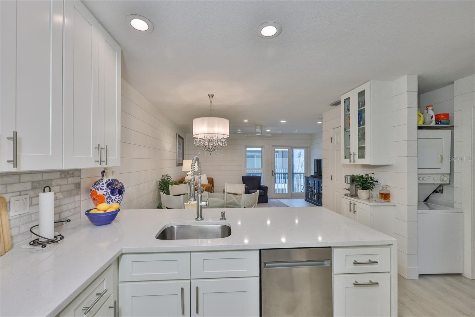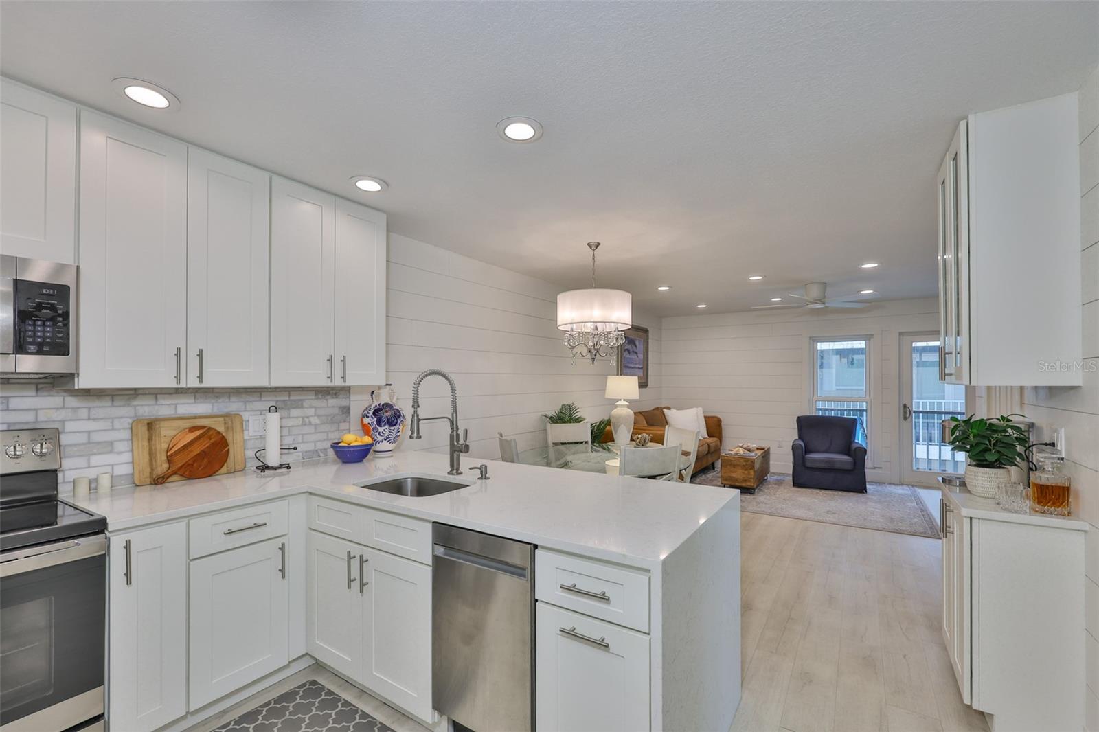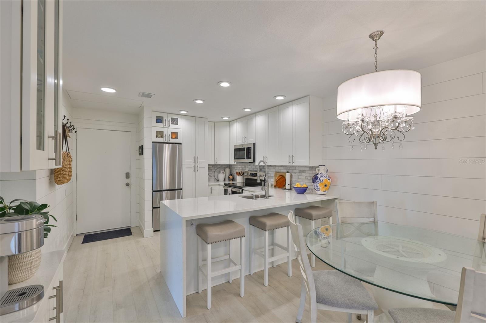 Meticulosamente remodelado e cuidadosamente redesenhado, este conceito aberto e luminoso e elegante unidade de 2 quartos e 1 banheiro no segundo andar oferece uma vida costeira refinada a apenas 50 passos das areias brancas da Praia da Madeira. O layout de conceito aberto é maior do que o esperado, apresentando uma cozinha de design deslumbrante com borda em cascata, bancadas de quartzo, armários com fechamento suave, lixo extensível, Susan preguiçosa, despensa e eletrodomésticos premium de aço inoxidável (todos 3 anos novos). A cozinha flui perfeitamente para a espaçosa área de estar e jantar, estendendo-se até uma serena varanda com tela. O quarto principal inclui um closet personalizado em estilo californiano, enquanto o banheiro Jack & Jill possui balcões de quartzo e um chuveiro com belos azulejos. Atualizações adicionais incluem chuveiro de azulejos. Atualizações adicionais incluem: 2025 Novo SISTEMA CARRIER HVAC (MANIPULADOR DE AR E CONDENSADOR), Condensador e eletricidade elevados ao prédio atual. código, janelas 2021, janelas 2021 totalmente novas, drywall totalmente novo sob o elegante e estiloso shiplap, sótão R30 e isolamento de parede R5, painel elétrico de 100 A com todos os disjuntores novos, acesso ao sótão acima da entrada e lavadora/secadora empilhável. Localizado em condomínio fechado e seguro com duas piscinas aquecidas, jacuzzi, clubhouse, academia, sala de bilhar, cais de pesca e trilhas para caminhada. A uma curta caminhada do ROC Park, da biblioteca, do centro comercial com mercearia, restaurantes, a pé do entretenimento e do mundialmente famoso John's Pass. O bonde de praia e o ônibus urbano estão a poucos passos de distância para explorar. Seja uma residência em tempo integral, um retiro de férias ou um aluguel de curto prazo de alto desempenho (mínimo de 7 dias), esta oportunidade pronta para uso oferece valor excepcional e conveniência costeira. Agende sua exibição privada hoje. Lustre não transmite.