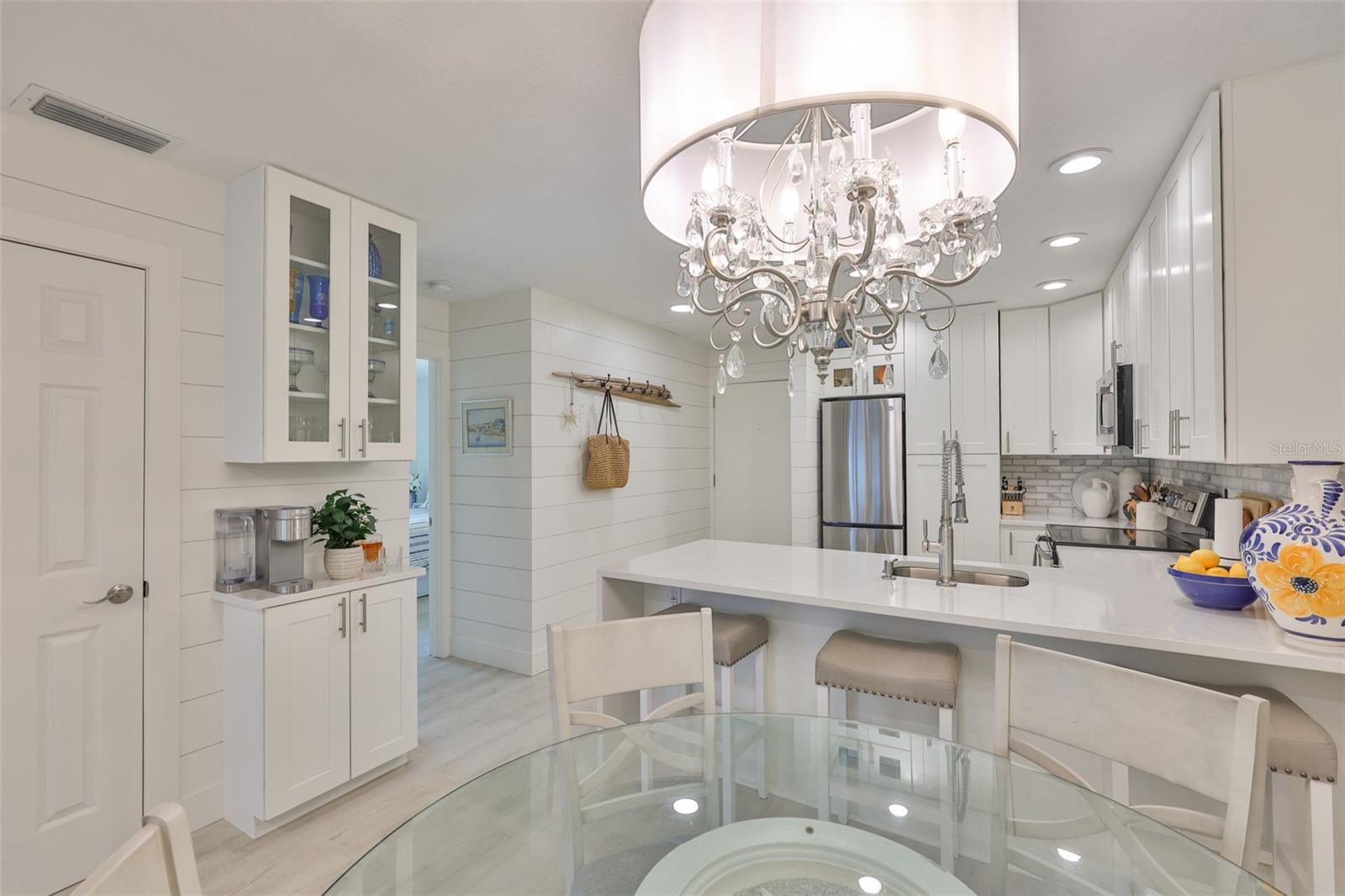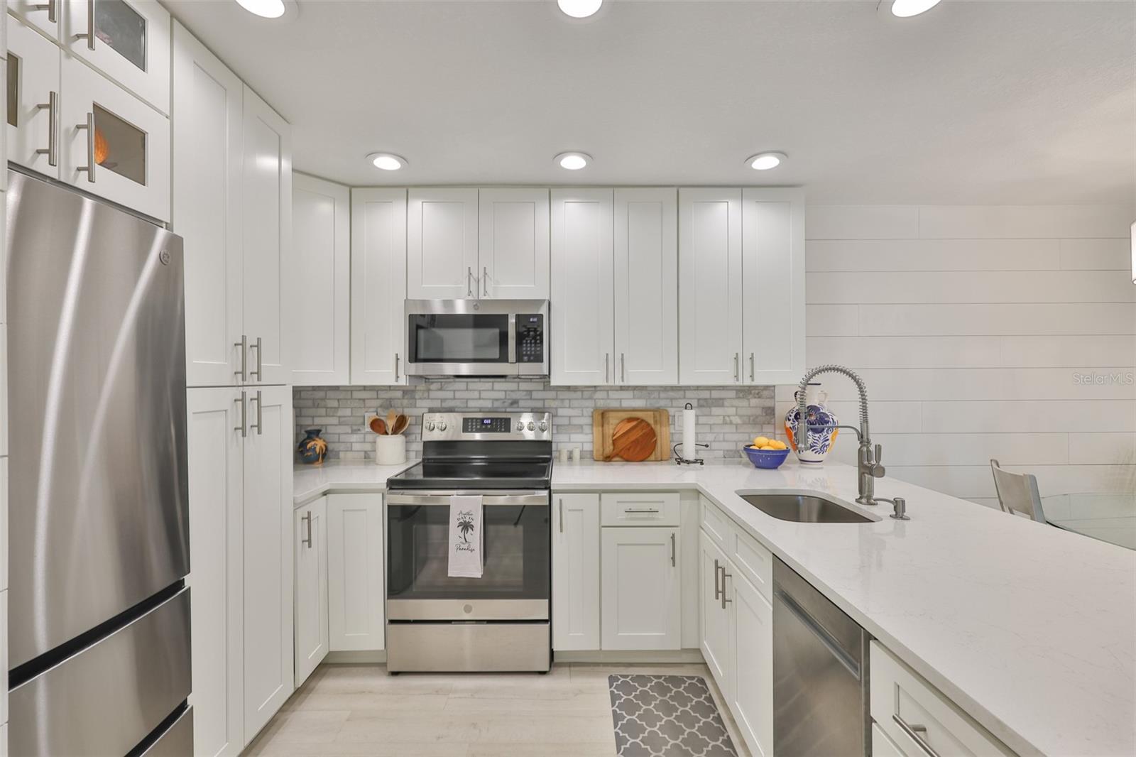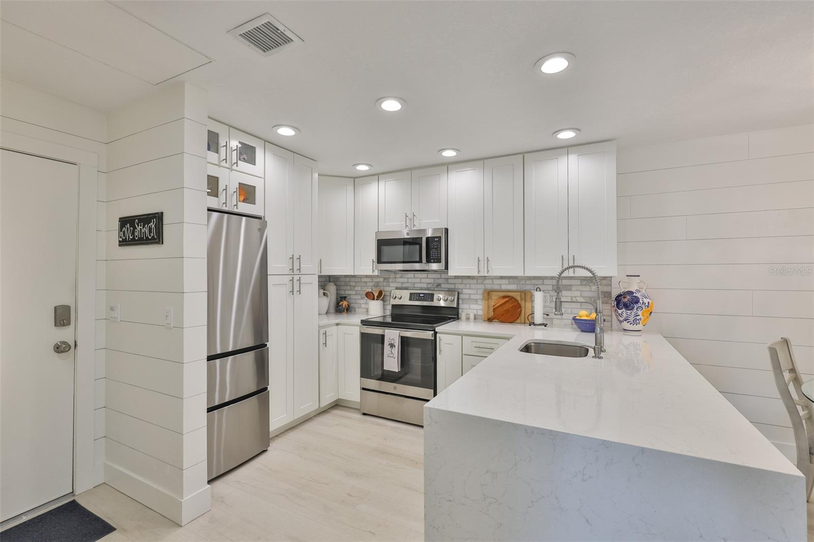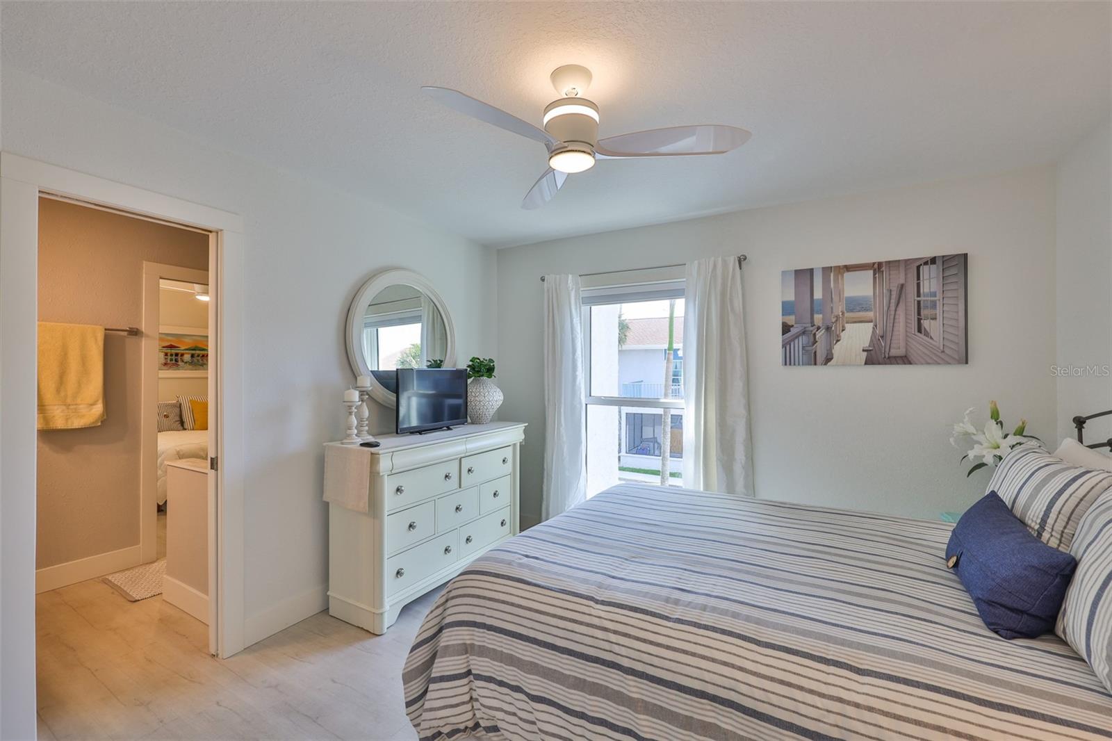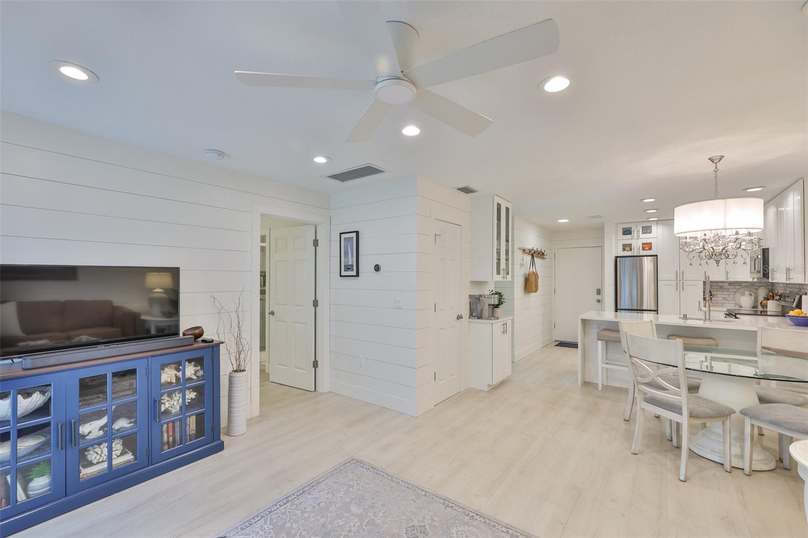 Meticulosamente remodelado e cuidadosamente redesenhado, este conceito aberto e luminoso e elegante unidade de 2 quartos e 1 banheiro no segundo andar oferece uma vida costeira refinada a apenas 50 passos das areias brancas da Praia da Madeira. O layout de conceito aberto é maior do que o esperado, apresentando uma cozinha de design deslumbrante com borda em cascata, bancadas de quartzo, armários com fechamento suave, lixo extensível, Susan preguiçosa, despensa e eletrodomésticos premium de aço inoxidável (todos 3 anos novos). A cozinha flui perfeitamente para a espaçosa área de estar e jantar, estendendo-se até uma serena varanda com tela. O quarto principal inclui um closet personalizado em estilo californiano, enquanto o banheiro Jack & Jill possui balcões de quartzo e um chuveiro com belos azulejos. Atualizações adicionais incluem chuveiro de azulejos. Atualizações adicionais incluem: 2025 Novo SISTEMA CARRIER HVAC (MANIPULADOR DE AR E CONDENSADOR), Condensador e eletricidade elevados ao prédio atual. código, janelas 2021, janelas 2021 totalmente novas, drywall totalmente novo sob o elegante e estiloso shiplap, sótão R30 e isolamento de parede R5, painel elétrico de 100 A com todos os disjuntores novos, acesso ao sótão acima da entrada e lavadora/secadora empilhável. Localizado em condomínio fechado e seguro com duas piscinas aquecidas, jacuzzi, clubhouse, academia, sala de bilhar, cais de pesca e trilhas para caminhada. A uma curta caminhada do ROC Park, da biblioteca, do centro comercial com mercearia, restaurantes, a pé do entretenimento e do mundialmente famoso John's Pass. O bonde de praia e o ônibus urbano estão a poucos passos de distância para explorar. Seja uma residência em tempo integral, um retiro de férias ou um aluguel de curto prazo de alto desempenho (mínimo de 7 dias), esta oportunidade pronta para uso oferece valor excepcional e conveniência costeira. Agende sua exibição privada hoje. Lustre não transmite.