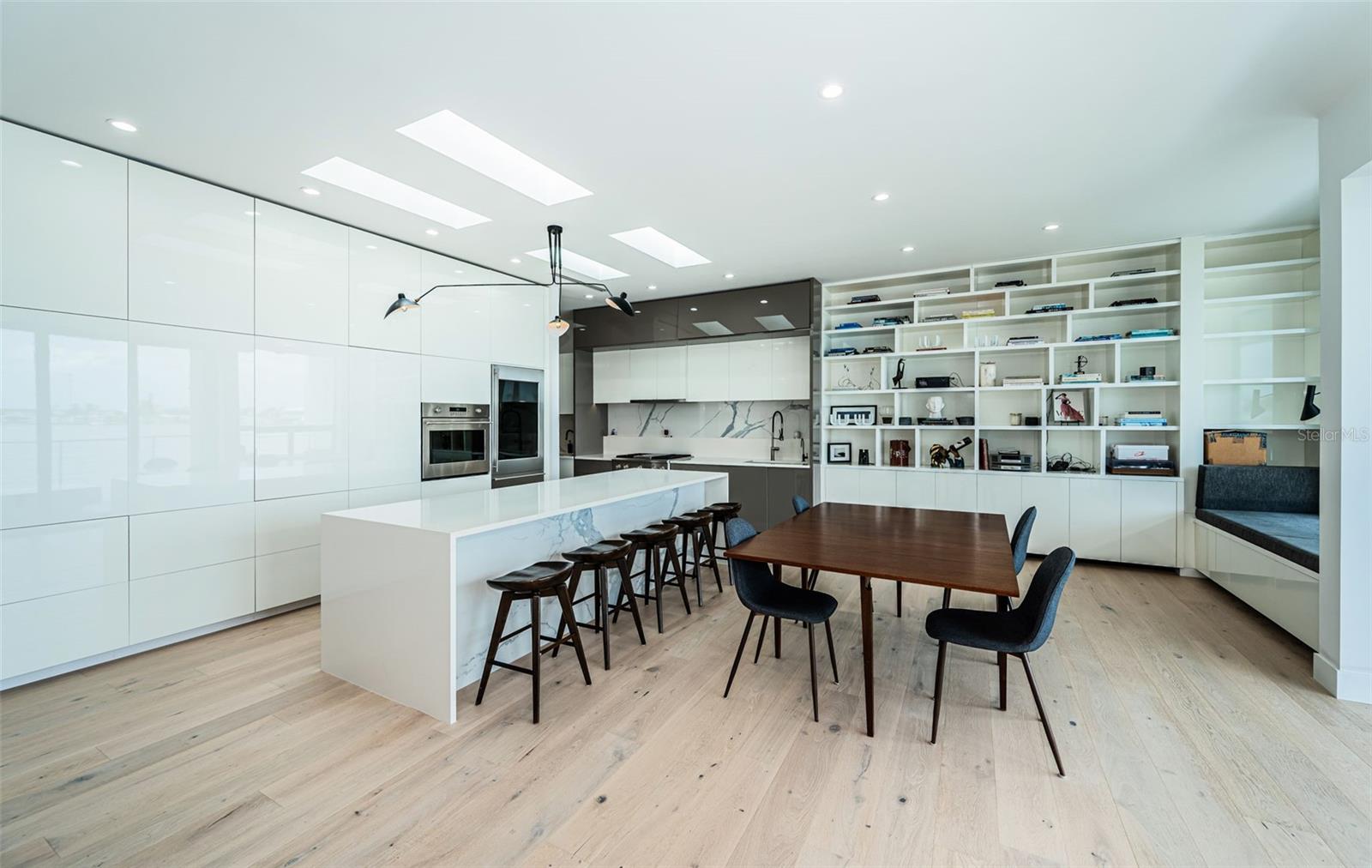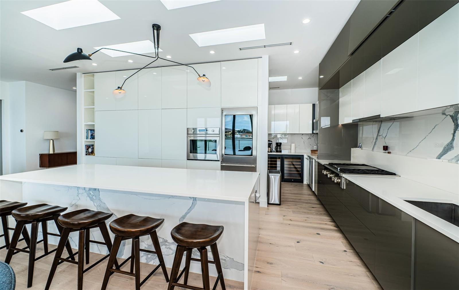 Uma ou mais fotos foram virtualmente encenadas. LUXUOSO E CONTEMPORÂNEO, COM A MISTURA PERFEITA DE ELEGÂNCIA MINIMALISTA, FORMA SUPERIOR E FUNÇÃO AVANÇADA DE LA, ESTA RESIDÊNCIA VISUALMENTE DESLUMBRANTE À BEIRA-MAR FOI CONSTRUÍDA COM IMAGINAÇÃO REFINADA E ANOS DE FUTURO! Um planejamento notável e uma atenção extraordinária aos mínimos detalhes resultaram em uma casa que respira uma simplicidade lindamente rara e limpa. Tetos altos, janelas altas, piso elegante de madeira projetada e acabamentos projetados para “flutuar” por toda a casa proporcionam uma experiência de vida profundamente satisfatória, semelhante à de Andy Worhol. A cozinha de conceito moderno apresenta armários brancos discretos, eletrodomésticos de aço inoxidável de alta qualidade, cozinha a gás, balcões de quartzo, grande bar em ilha e uma maravilhosa despensa multifuncional escondida longe das áreas abertas da casa. Excelentes embutidos oferecem um toque art déco distinto que complementa a iluminação elegante e de última geração e o uso generoso de claraboias. A inspirada área de estar, com sua elegante iluminação de lareira, faz a transição para um fabuloso espaço de jantar aberto com vista para o mar. Através do vidro deslizante embolsado, aprecie vistas grandiosas, amplas e desobstruídas da água, possibilitadas pela construção em balanço de engenharia requintada. Trazendo toda a sua orla à vista, você vai adorar a ampla varanda coberta de 15 metros de largura (aproximadamente) com piso de porcelanato imaculado, fachada externa de mármore, bancada, floreira e gás embutido para cozinhar ao ar livre e fogueira. A suíte do proprietário tem acesso à varanda privativa, embutidos neocontemporâneos e um sistema de closet ricamente detalhado. O banho do proprietário é uma experiência luxuosa e relaxante; com sua própria combinação única de materiais, design e cores, você ficará encantado com a pureza do conceito no chuveiro de efeito chuva parcialmente aberto, na sublime banheira de imersão e na pia dupla personalizada - mesclando aparadores de madeira vintage e superfícies modernas de granito. O grande 2º quarto complementa a suíte do proprietário em estilo e substância. Você será atraído pelo banheiro de hóspedes deliciosamente atraente e pelo incrível uso de luz, azulejos e composição. A luxuosa sala de teatro funciona como um terceiro quarto. O hall de entrada no nível inferior tem uma sensação rica e acolhedora e amplo espaço multifuncional/de armazenamento. Nos fundos, descubra dois grandes decks privativos cobertos à beira-mar com vista para uma linda piscina Pebbletech. Paredão atualizado, doca composta, gerador de backup e muitos extras. Brilhantemente concebido e excepcionalmente bem construído.