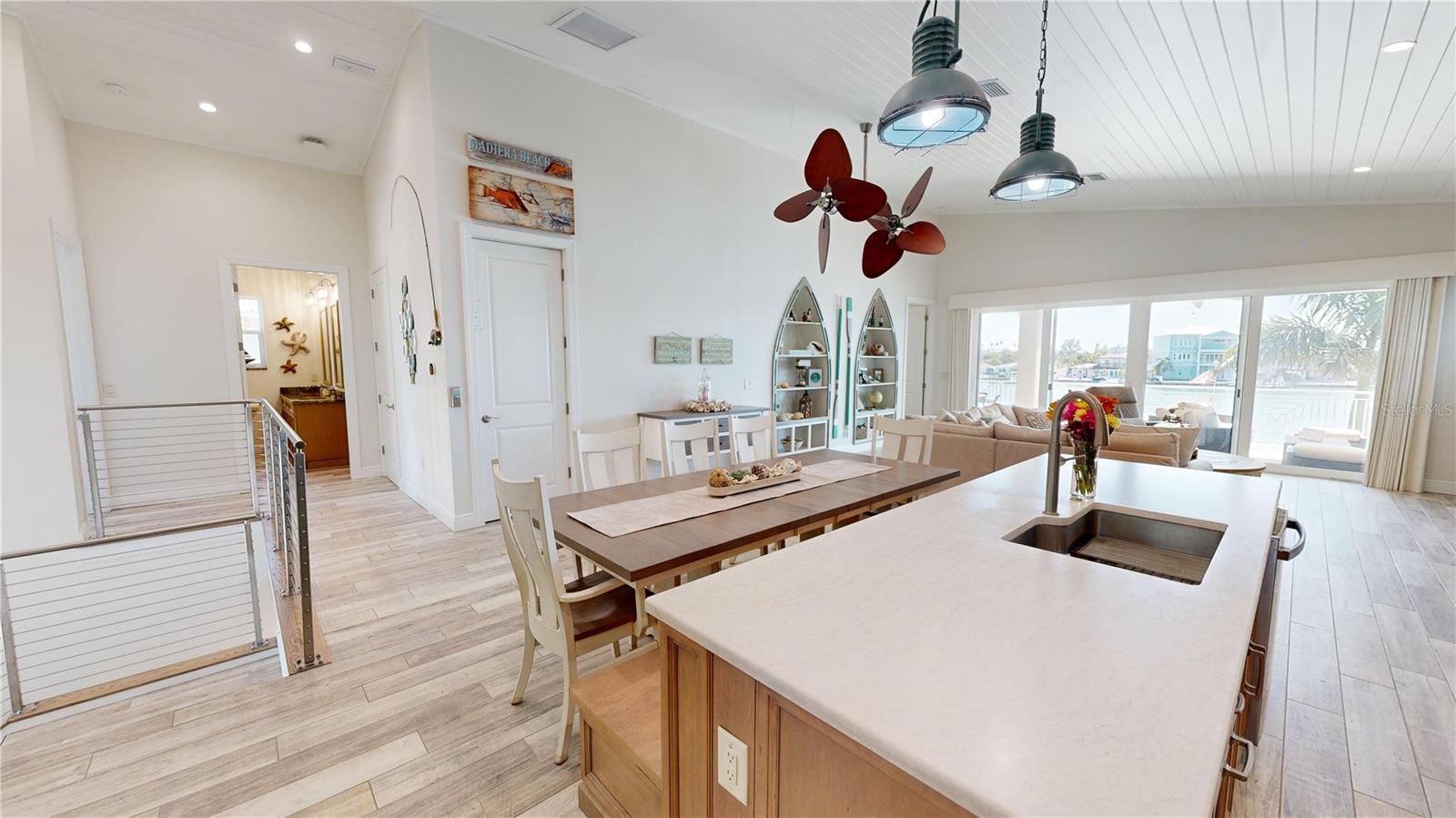 Entre no abraço do conforto costeiro neste paraíso à beira-mar, concluído em 2022. Ainda sob garantia transferível do construtor por mais 7 anos ou mais. O fascínio contemporâneo encontra a essência da vida costeira para uma experiência verdadeiramente incomparável. Meticulosamente projetada com atenção aos detalhes, esta casa reflete as últimas tendências da arquitetura moderna. Entre através das portas duplas de vidro personalizadas, controladas por aplicativo, ambiente de luz, tema subaquático. Ao entrar nesta casa elevada de 25 pés, você é imediatamente atraído pelas amplas vistas do mar em toda a grande sala. O Open Concept Living oferece tetos abobadados macho e fêmea de 10 a 14 pés de altura, interiores espaçosos e fluidos que conectam perfeitamente as áreas de estar, jantar e cozinha, criando um espaço perfeito para entretenimento e relaxamento. A cozinha apresenta eletrodomésticos GE Profile de última geração, complementados por um exaustor inteligente que funciona como um hub touchscreen para acesso à Internet, entretenimento, receitas e câmeras de vigilância doméstica. Todas as portas internas têm núcleo sólido de 2,5 metros e as janelas PGT são equipadas com persianas de madeira personalizadas. Experimente a conveniência da tecnologia de ponta com recursos integrados de tecnologia de casa inteligente para segurança, iluminação e controle climático. Estão incluídos na venda 6 TVs Samsung inteligentes com fio e um sistema estéreo Denon com zonas inteligentes, controlado pelo aplicativo de telefone HEOS. Sete câmeras de segurança de alta definição e visão noturna cobrem o perímetro das casas e podem ser visualizadas e controladas via telefone, smart TVs ou hub. Aproveite as vistas da água e o estilo de vida da Flórida com transições perfeitas através do PGT, controles deslizantes classificados como furacões. Os espaços exteriores são pensados para a diversão, com um relvado fresco e adequado para animais de estimação, um putting green personalizado e um amplo pátio coberto para acolher encontros. O quintal é seguro para animais de estimação e crianças, com cerca de alumínio que leva ao paredão de 2019 com escoamento de drenagem francês para manter o quintal seco. A doca composta tem um elevador de barco de 10K lb e um segundo elevador bônus para um corredor de ondas, barco menor ou caiaque. Traga suas varas de pesca para esta doca personalizada com iluminação verde, equipada com eletricidade, água e uma estação de limpeza de peixes. Fique tranquilo com o Gerador Generac de autoteste para toda a casa, garantindo a continuidade da energia. Economize em serviços públicos com a eficiência de um tanque de propano enterrado de 250 galões atualmente usado para operar aquecedor de água, gerador e churrasqueira. Espaços residenciais adicionais e opcionais foram facilitados por instalações elétricas e hidráulicas pré-instaladas já instaladas. A enorme garagem para 3 carros tem portas de garagem com classificação de vento/impacto Genie de 145 mph, acessíveis por telefone ou controle remoto. Pegue sua correspondência na caixa de correio pelicano de grandes dimensões, exclusiva e encomendada pelo artista, e traga mantimentos da garagem com facilidade no elevador personalizado com painéis de carvalho, para 4 pessoas e 900 libras. Situado na desejável comunidade insular privada de Bay Point Estate, 833 Bay Point Dr oferece proximidade com belas praias, comodidades locais e um estilo de vida costeiro vibrante.