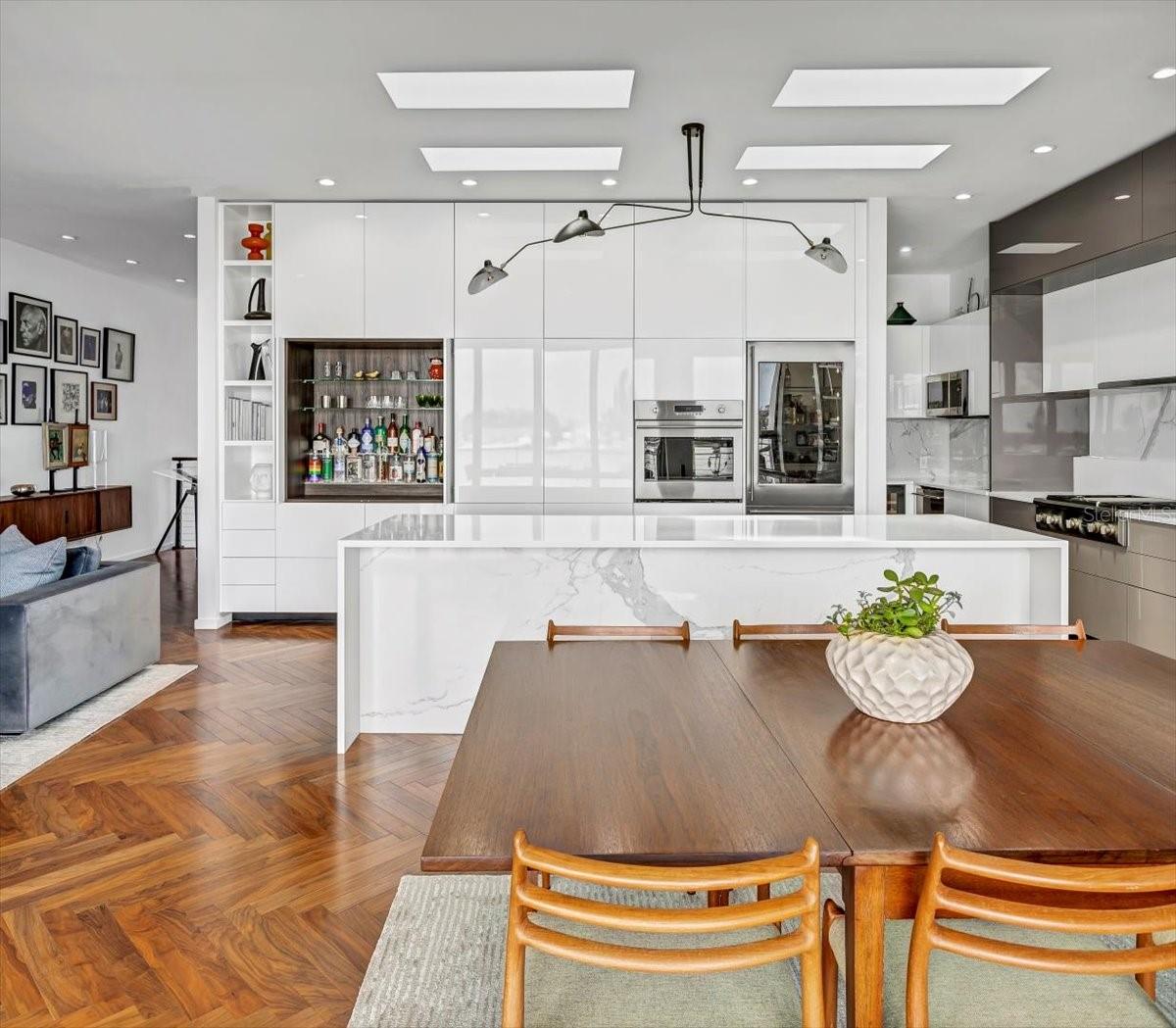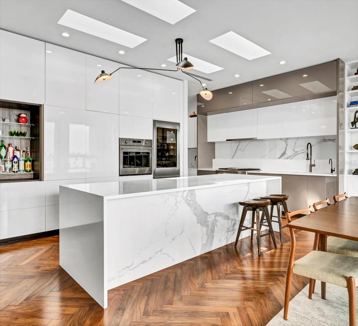 LUXUOSO E CONTEMPORÂNEO, COM A MISTURA PERFEITA DE ELEGÂNCIA MINIMALISTA, FORMA SUPERIOR E FUNÇÃO AVANÇADA, ESTA PROPRIEDADE À BEIRA-MAR VISUALMENTE DESLUMBRANTE FOI CONSTRUÍDA COM IMAGINAÇÃO REFINADA E ANOS DE FUTURO! Um planejamento notável e uma atenção extraordinária aos mínimos detalhes resultaram em uma casa que respira uma simplicidade lindamente rara e limpa. Tetos altos, janelas altas, piso de madeira em espinha de peixe selecionado individualmente/à mão e acabamentos projetados para “flutuar” por toda a casa, proporcionam uma experiência de vida profundamente satisfatória, semelhante à de Andy Warhol. A cozinha de conceito moderno apresenta armários brancos discretos, eletrodomésticos de aço inoxidável de alta qualidade, cozinha a gás, balcões de quartzo, grande bar em ilha e uma excelente despensa multifuncional escondida longe das áreas abertas da casa. Excelentes embutidos oferecem um toque art déco distinto que complementa a iluminação elegante e de última geração e o uso generoso de claraboias. A excepcional área de estar, com sua elegante iluminação de lareira, faz a transição para um fabuloso espaço de jantar aberto com vista para o mar. Através do vidro deslizante embolsado, aprecie vistas grandiosas, amplas e desobstruídas da água, possibilitadas pela construção em balanço de engenharia requintada. Trazendo toda a sua orla à vista, você vai adorar a ampla varanda coberta de 15 metros de largura (aproximadamente) com piso de porcelanato imaculado, fachada externa de mármore, bancada, floreira e gás embutido para cozinhar ao ar livre e fogueira. A suíte do proprietário tem acesso à varanda privativa, embutidos neocontemporâneos e um sistema de closet ricamente detalhado. O banho do proprietário é uma experiência luxuosa e relaxante. Com sua combinação única de materiais, design e cores, você ficará encantado com a pureza do conceito no chuveiro com efeito de chuva parcialmente aberto, na sublime banheira de imersão e na pia dupla personalizada - mesclando um aparador de madeira vintage e superfícies modernas de granito. O grande 2º quarto complementa a suíte do proprietário em estilo e substância. Você ficará encantado com o apelo surpreendente do banheiro de hóspedes e seu incrível uso de luz, azulejos e composição. A luxuosa sala de teatro pode ser facilmente transformada em um terceiro quarto. O hall de entrada no nível inferior tem uma sensação rica e acolhedora e amplo espaço multifuncional/de armazenamento. Nos fundos, descubra dois grandes decks privativos cobertos unidos por uma área de sofá-cama parcialmente fechada – todos com vista para uma linda piscina Pebbletech. Quintal com paisagismo exuberante, paredão atualizado, enorme doca composta, gerador para toda a casa e muitos extras. Brilhantemente concebido e excepcionalmente bem construído. Apólice de seguro contra inundações presumível de $ 654,00 anualmente.