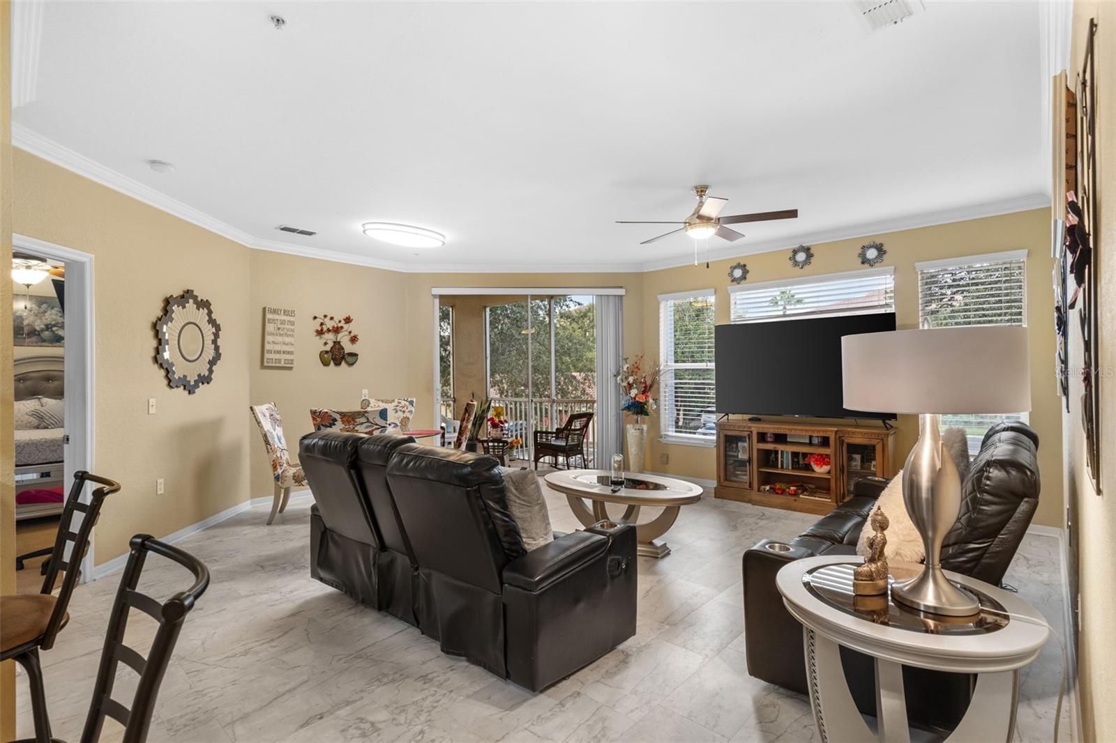 Descubra o conforto e o estilo da Flórida neste deslumbrante condomínio de 2 quartos e 2 banheiros, perfeitamente situado no cobiçado Visconti West. Ao entrar, você será recebido por uma planta aberta e arejada que exala calor e sofisticação. A sala de estar apresenta piso moderno em estilo azulejo, adicionando um toque elegante ao espaço, enquanto sancas elegantes aprimoram o design geral com um acabamento refinado. A cozinha destaca-se como o coração desta casa, apresentando belas bancadas em granito e eletrodomésticos de alta qualidade em aço inoxidável que combinam funcionalidade e elegância. Desfrute de conforto durante todo o ano com um sistema HVAC totalmente novo e novas luminárias elegantes que banham a casa com um brilho acolhedor. Uma lavadora e secadora convenientes estão incluídas, adicionando facilidade à sua rotina diária. Saia para sua varanda privada para apreciar a vista serena da comunidade ou utilize o armário de armazenamento adicional para todas as suas necessidades organizacionais. Situada no segundo andar de um condomínio fechado e seguro, esta residência oferece privacidade e uma localização privilegiada perto de Winter Park e das principais rodovias. A Homeowners Association (HOA) melhora seu estilo de vida com acesso a uma academia, piscina comunitária e quadras de tênis, oferecendo uma variedade de opções recreativas. As atualizações recentes incluem novos telhados em toda a comunidade, garantindo valor agregado e tranquilidade. Uma das características mais impressionantes é a vista deslumbrante do Lago Shadow logo atrás da comunidade, oferecendo um cenário pitoresco para a sua vida cotidiana. Não perca a oportunidade de fazer deste condomínio excepcional a sua nova casa - agende hoje mesmo uma visita e experimente o auge da vida confortável e conveniente!