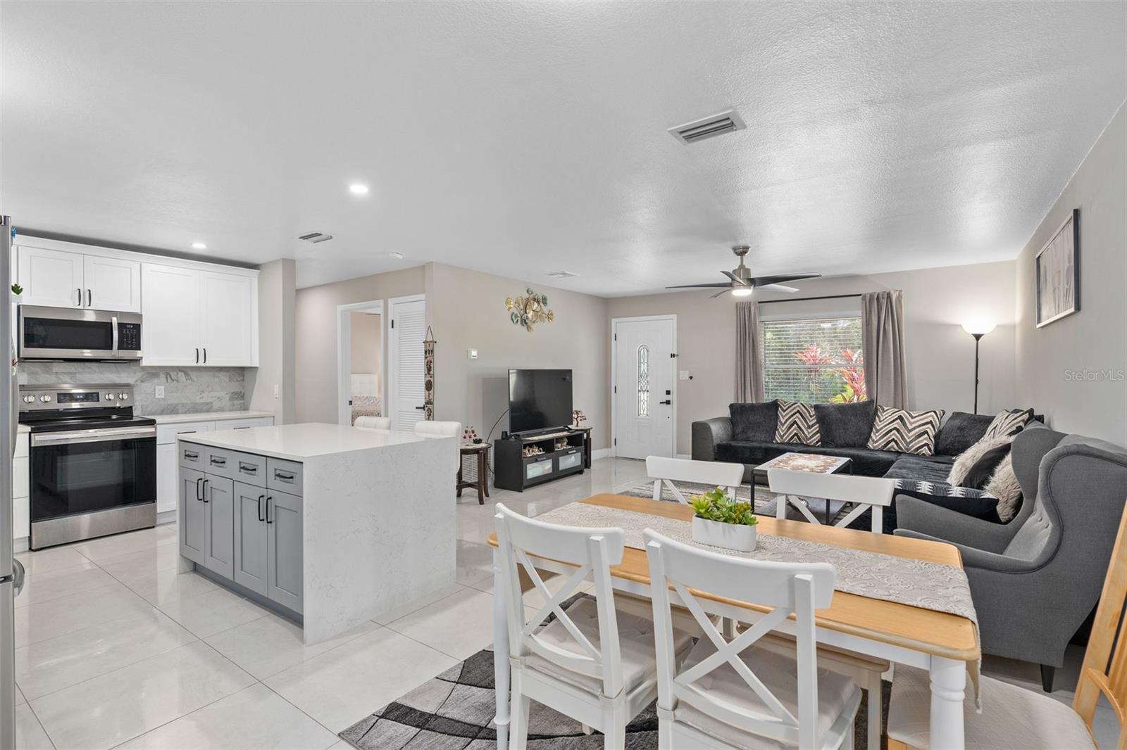 Ajuste do preço! Esta casa maravilhosamente atualizada de 3 quartos e 2 banheiros com uma sala de família bônus e nenhum HOA foi notável atualizado e atualizado de cima para baixo! Ao pisar na porta da frente, você será recebido com a sala de estar, cozinha e sala de jantar de conceito aberto brilhante com ladrilhos de última geração atualizados, janelas atualizadas, uma ilha de granito para combinar com as bancadas de granito, armários brancos reluzentes, novas torneiras e backsplash de pedra personalizada! Ao se mover pelo corredor, você verá o banho de hóspedes totalmente atualizado com sua vaidade de pedra e banheira de chuveiro. O quarto primário é totalmente pavimentado em laminado largo e sofisticado, possui um armário de duplo alcance e um ventilador de teto atualizado! O banho principal também foi totalmente atualizado com paredes de azulejos, detalhes em seixos e uma vaidade de pedra. A sala da família cobre todo o lado da casa, tem sua própria entrada de porta de vidro deslizante e segura uma maravilhosa lareira a lenha. A sala da sala da Flórida / área de varanda fechada possui cortinas personalizadas, um teto de queda e um novo carpete para todos os fins. Telhado (2021), 4 toneladas A/C (2021). Tudo isso em pouco menos de um quarto de hectare com jardinagem personalizada e sem HOA! Venha ver esta linda casa e faça sua casa hoje!