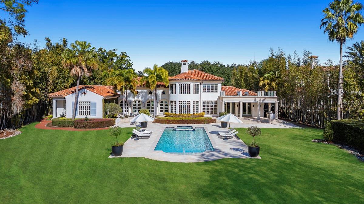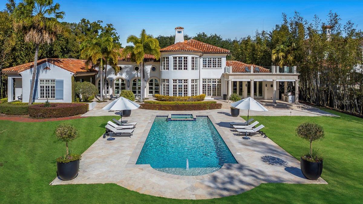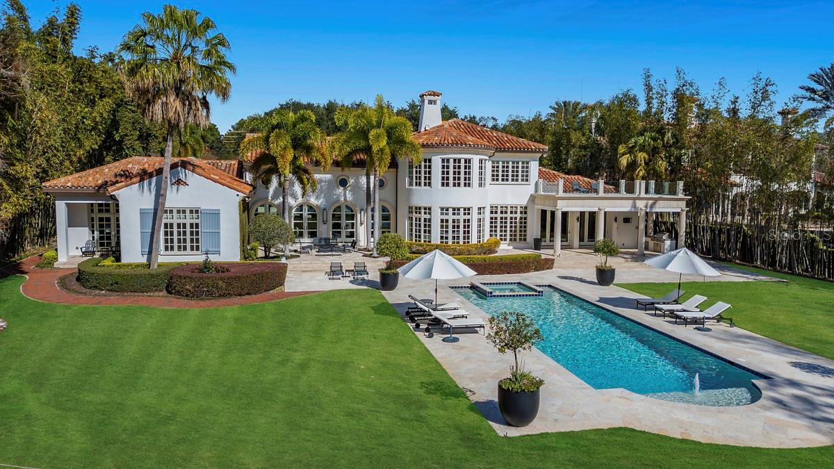 Atrás dos portões particulares ao longo das margens do lago Maitland, esta elegante propriedade do Mediterrâneo ao estilo Mizner oferece uma oportunidade extraordinária de possuir uma obra-prima de beira do lago atemporal na cadeia de lagos de Winter Park. Abrangendo aproximadamente dois acres de jardins meticulosamente bem cuidados emoldurados por palmas das mãos e carvalhos maduros, esta propriedade excepcional combina a arquitetura clássica com comodidades de última geração e luxo moderno. Originalmente construído com artesanato intransigente e totalmente reformado nos últimos anos, os interiores da casa, projetados por Ted Maines, exalam sofisticação, apresentando acabamentos de ponta com curadoria, embutidos personalizados e iluminação de designers por toda parte. A casa principal oferece 6.634 pés quadrados, enquanto a sala de mídia isolada possui 676 pés quadrados, e o apartamento do segundo andar acima da sala de mídia tem 864 pés quadrados. A residência principal inclui quatro quartos espaçosos, cada um com banheiros e armários de Walk-in, além de um escritório/biblioteca imponente e uma impressionante sala de estar de marca registrada Grand Mizner com um teto de madeira de 24 pés. Esta área de entretenimento adicional é ladeada por duas paredes de portas francesas em arco, uma oferecendo vistas deslumbrantes do lago Maitland e a outra abertura para um pátio tranquilo, criando uma conexão perfeita com os espaços ao ar livre lindamente projetados da casa. Uma dramática sala de jantar formal mostra uma parede curva de janelas que enquadram vistas espetaculares do lago, enquanto a cozinha do chef está equipada com aparelhos comerciais e abre para uma sala de reuniões graciosa, ideal para a vida cotidiana e o entretenimento casual. No andar de cima, a luxuosa suíte primária serve como um retiro privado com sua lareira, um espaçoso camarim personalizado, um banho de spa com banheira de imersão e chuveiro a vapor e acesso a um terraço na cobertura com grades de vidro e vistas panorâmicas do lago. Uma estrutura separada na propriedade inclui uma sala de teatro/audição de última geração e um apartamento de hóspedes de um quarto totalmente designado acima, completo com cozinha e área de estar. A vida ao ar livre é igualmente impressionante, com uma cozinha coberta de lanai e verão fora da sala da família, um amplo terraço ao ar livre que se estende da grande sala e um deck de piscina de travertino no estilo resort, cercado por um paisagismo exuberante. Um caminho de caminhada em Trex mais novo leva ao cais de barco coberto com elevador, completo com um elevador de jet ski, espaço de armazenamento condicionado e acesso direto à cadeia de lagos de Winter Park. Os recursos adicionais incluem quatro carregadores de EV, um sistema de iluminação inteligente da Lutron, um sistema de vigilância de segurança de 12 câmeras com integração HomeKit, Internet de fibra de alta velocidade de três provedores e uma reserva de água de 500 galões que apoia o sistema de aspersão de incêndio na casa principal. Uma garagem circular de pavimentadora, com entrada automatizada de portão e uma quadra de motor generosa conclui a abordagem. Em um dos desejáveis enclaves à beira do lago de Maitland/Winter Park, esta propriedade privada oferece serenidade e conveniência incomparáveis a poucos minutos das renomadas lojas e restaurantes da Park Avenue, hospitais da área, principais estradas e aeroportos executivos e internacionais. Consulte os anexos da MLS para obter uma lista de aprimoramentos adicionais na propriedade pelo proprietário.