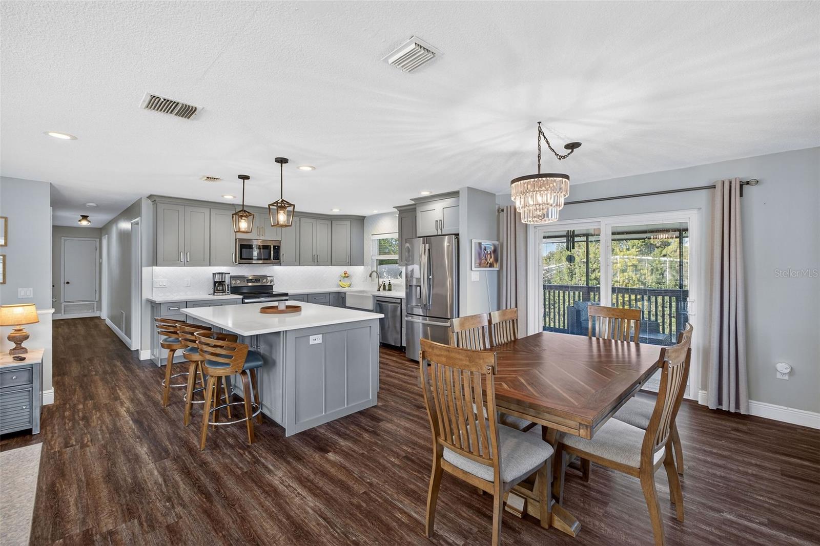 Perfeitamente posicionada na tão procurada comunidade de Maitland, esta casa lindamente atualizada oferece uma combinação excepcional de espaço, estilo e funcionalidade projetada para conforto diário e entretenimento sem esforço. Com 2.376 pés quadrados de área útil, a planta de dois andares oferece flexibilidade e privacidade, com cinco quartos, três banheiros completos e várias áreas de estar que se adaptam facilmente à vida familiar, às necessidades de trabalho em casa ou à hospedagem de hóspedes. O piso laminado de madeira flui pelas principais áreas de estar e é complementado por iluminação embutida, ventiladores de teto e persianas em todas as janelas. O nível inferior da casa oferece excelente separação de espaço, apresentando uma espaçosa sala de família ou escritório, dois quartos adicionais e um banheiro completo totalmente novo (2026). Este nível é ideal para convidados, familiares ou um escritório doméstico privado, permitindo que todos desfrutem de sua própria área de estar confortável. No coração da casa, a cozinha aberta, a área de jantar e a área de estar criam um local de encontro natural. Totalmente renovada em 2020, a cozinha apresenta armários cinza em estilo shaker, bancadas de quartzo, backsplash de azulejos brancos e uma grande ilha com capacidade para três pessoas. Eletrodomésticos de aço inoxidável, uma pia de cerâmica branca e iluminação embutida completam o espaço, tornando-o igualmente adequado para refeições casuais ou entretenimento em grande escala. O layout aberto permite que o cozinheiro fique conectado com os hóspedes enquanto aprecia a vista das áreas de jantar, de estar e de estar ao ar livre. No final do corredor você passará por dois quartos. A suíte principal está localizada no final do corredor e oferece um retiro tranquilo com um banheiro privativo lindamente reformado, concluído em 2021. Este banheiro possui uma impressionante pia dupla em azul royal com bancada de quartzo, uma parede totalmente revestida de azulejos e chuveiro com vidro sem moldura e iluminação em tons dourados e acessórios de banho atualizados que adicionam um toque refinado de luxo. Saia para um quintal projetado para a verdadeira vida na Flórida e entretenimento inesquecível. A piscina gerada por sal, recapeada em 2022, apresenta uma nova proteção solar, fontes elegantes e aquecimento para diversão durante todo o ano. Novos pavimentos instalados em 2022 circundam a piscina e conectam os espaços de convivência ao ar livre, incluindo um deck recentemente ampliado e um pátio coberto ideal para refeições ao ar livre ou relaxar à sombra. O pátio totalmente cercado tem acabamento com grama artificial de baixa manutenção e uma grande cerca viva de privacidade, criando uma aparência limpa e polida enquanto maximiza o espaço exterior utilizável. A localização privilegiada da casa aumenta ainda mais seu apelo, a poucos minutos do Maitland Community Park, que oferece playgrounds, quadras de tênis, basquete e raquetebol, trilhas para caminhada e pavilhões para piquenique. A Rampa para Barcos do Lago Maitland fica a 13 minutos e restaurantes e lojas nas proximidades proporcionam conveniência diária. Esta é uma rara oportunidade de possuir uma casa pronta para morar com atualizações atenciosas, vida ao ar livre excepcional e um endereço em Maitland altamente desejável. TELHADO - 2023 HVAC - 2010 Aquecedor de água - 2025 Bomba de piscina - 2025