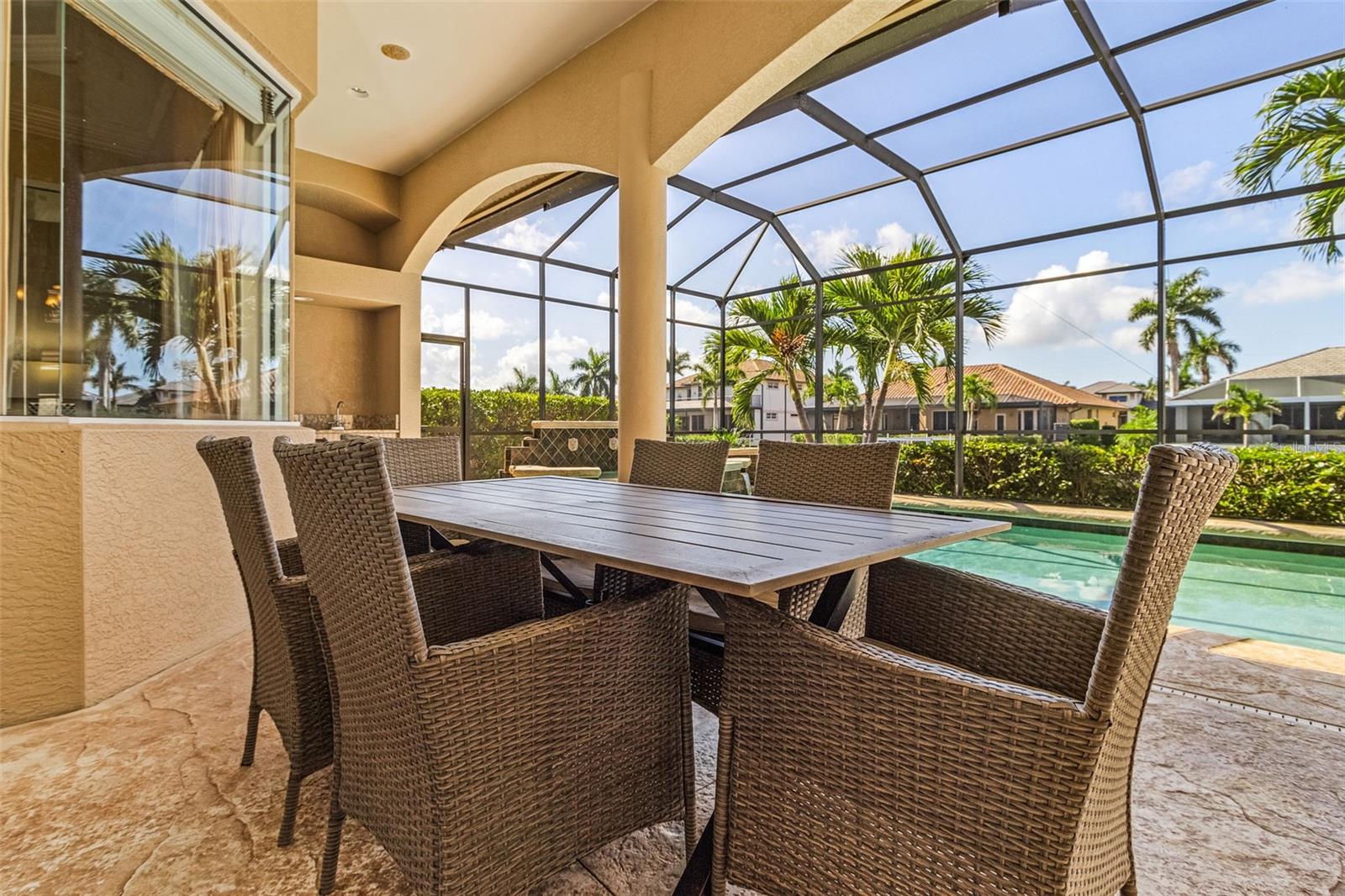 Propriedade de acesso ao Golfo de Marco Island! Esta deslumbrante casa de 4 quartos e 4 banheiros oferece a combinação perfeita de luxo, conforto e conveniência, tudo sem o incômodo de um HOA. Ao chegar, você será envolvido por uma convidativa planta aberta, ideal para entreter ou simplesmente relaxar com seus entes queridos. A espaçosa cozinha, com eletrodomésticos de aço inoxidável, dispõe de uma conveniente barra de café da manhã e amplo balcão, além de eletrodomésticos de aço inoxidável de última geração, facilitando muito o preparo das refeições. Encontre refúgio na ampla suíte principal, onde a tranquilidade o aguarda. Mime-se no luxuoso banheiro privativo, completo com pia dupla, chuveiro separado e banheira de imersão rejuvenescedora. Além disso, aproveite a conveniência de um closet, que oferece amplo espaço de armazenamento para todas as necessidades do seu guarda-roupa. Lá fora, descubra o seu paraíso particular, pois esta propriedade possui um quintal pitoresco que dá acesso a um canal sereno. Relaxe à beira da piscina aquecida e do spa, perfeito para diversão e entretenimento durante todo o ano. Esteja você organizando um churrasco com amigos ou relaxando após um longo dia, este oásis ao ar livre certamente impressionará. Localizada na cobiçada área de Marco Island, conhecida por suas praias imaculadas, restaurantes vibrantes e inúmeras oportunidades recreativas, esta casa oferece o epítome da vida na Flórida. Não perca a oportunidade de experimentar o luxo e a serenidade desta propriedade excepcional – agende hoje mesmo a sua exibição!