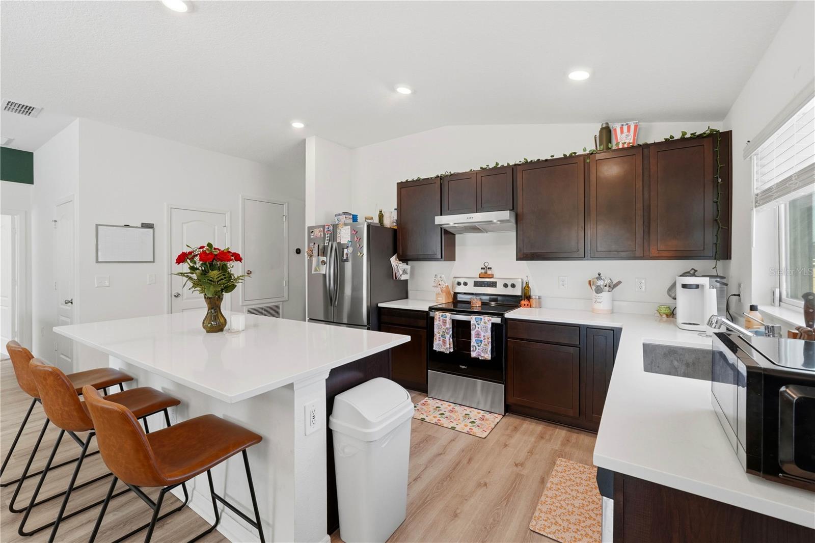 Descubra esta deslumbrante casa quase nova de 4 quartos e 2 banheiros que combina perfeitamente conforto moderno com eficiência energética! Construída há apenas 2 anos, esta casa apresenta uma planta espaçosa e aberta, repleta de luz natural, ideal para entretenimento e vida cotidiana. A bela cozinha tem vista para a área de estar principal e possui uma grande ilha, bancadas de quartzo, armários de 36 polegadas e muito espaço para preparação. A suíte principal oferece um grande closet e banheiro privativo com combinação de chuveiro/banheira. Os destaques adicionais incluem uma unidade 15 SEER A/C, termostato inteligente Ecobee 3 Lite Energy Star Wi-Fi, aquecedor de água híbrido com eficiência energética, entrada com chave inteligente, controle remoto de garagem e um quintal cercado de vinil com uma varanda coberta - perfeito para relaxar ou receber convidados. Com garagem para 2 carros e pronta para morar, esta casa tem de tudo. Agende sua exibição hoje – você vai querer chamar esta de casa!!