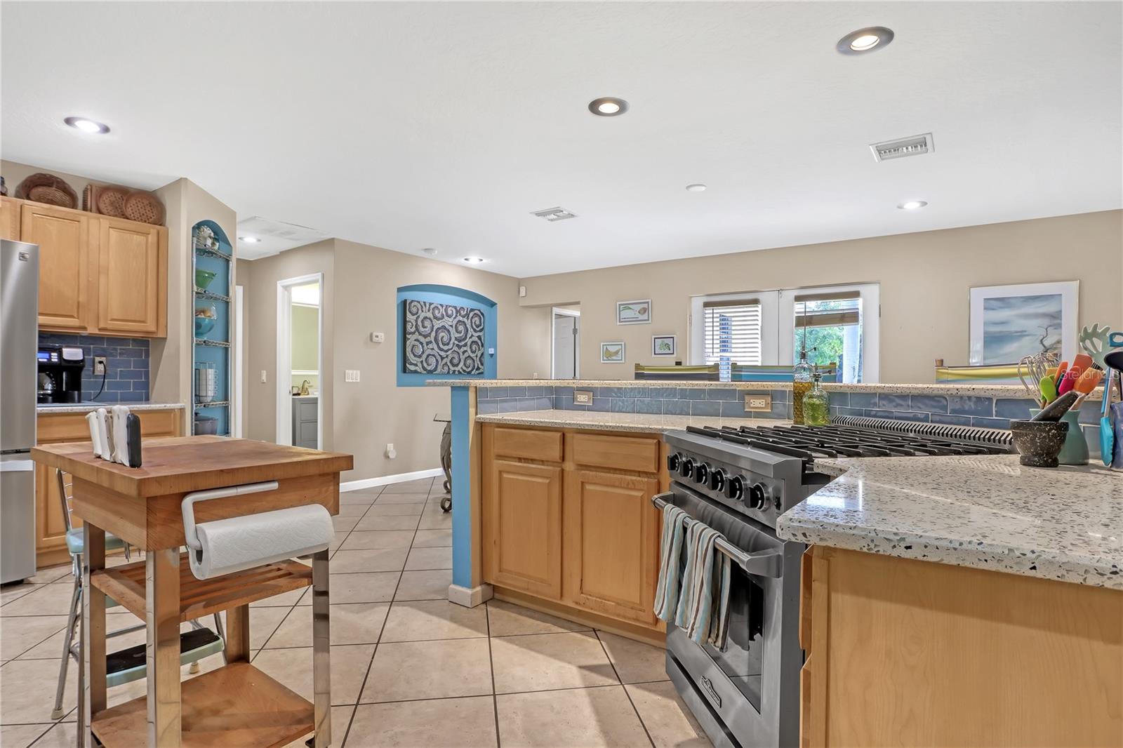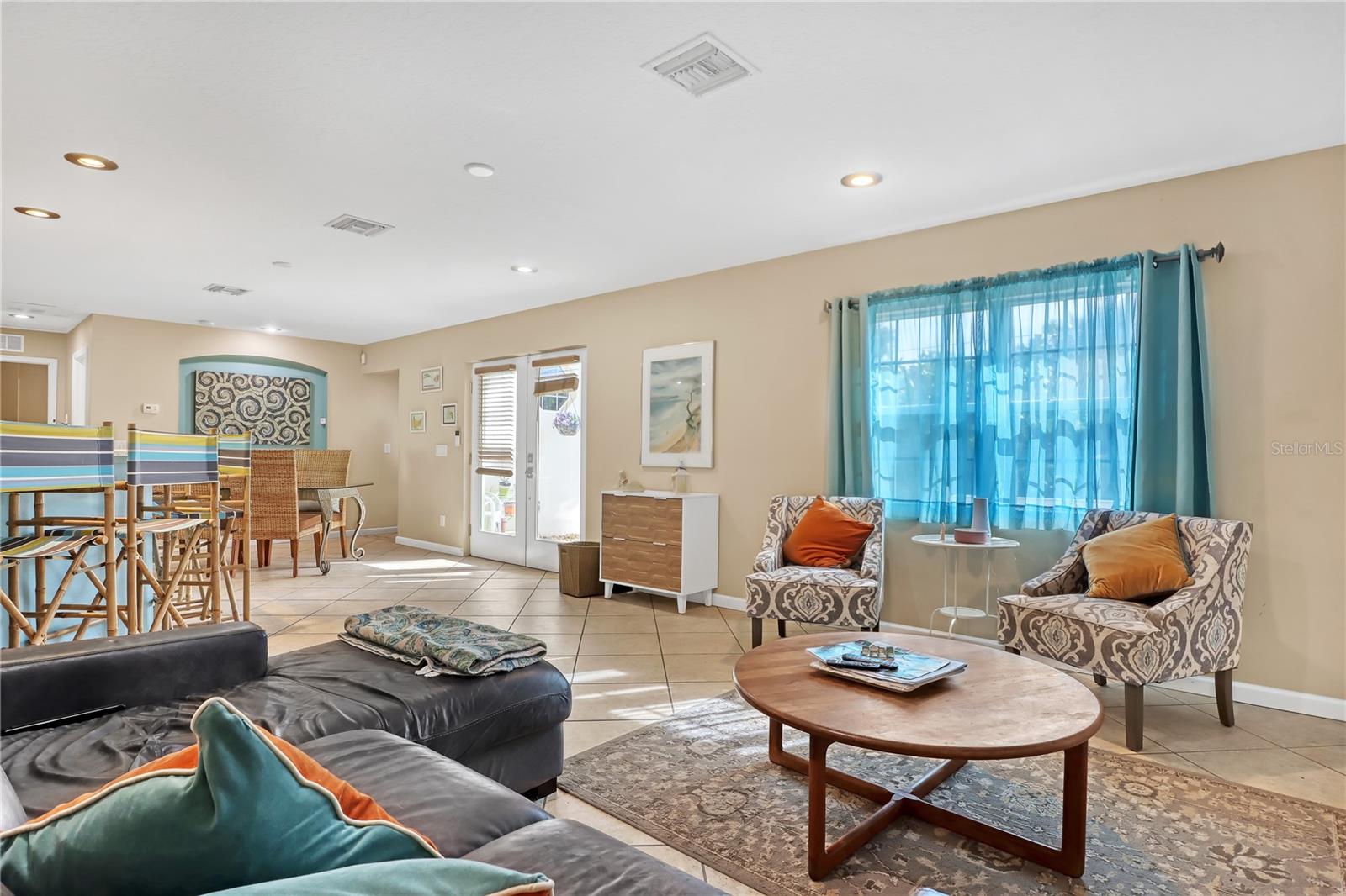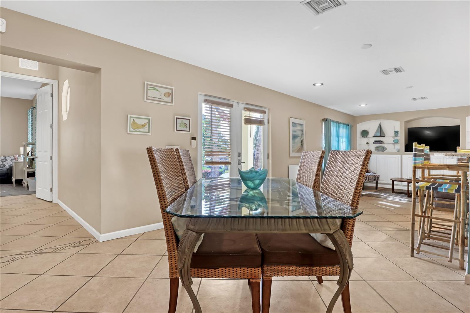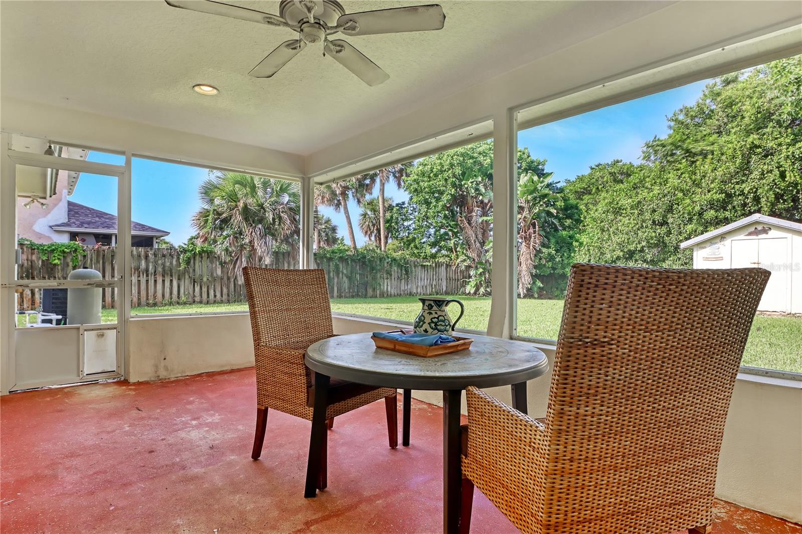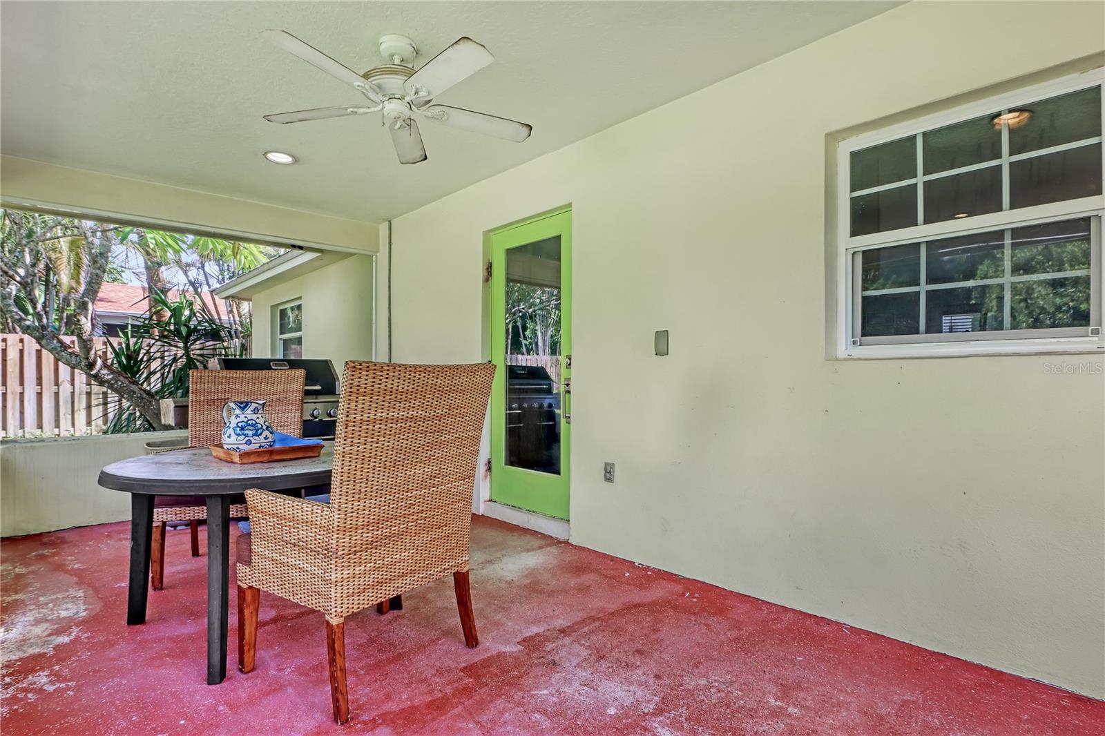 Pátio, portas francesas, chuveiro externo, portas de correr, armazenamento