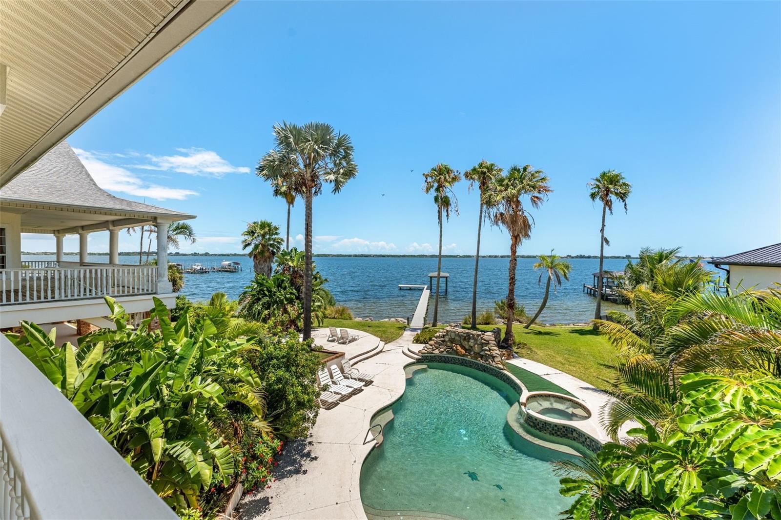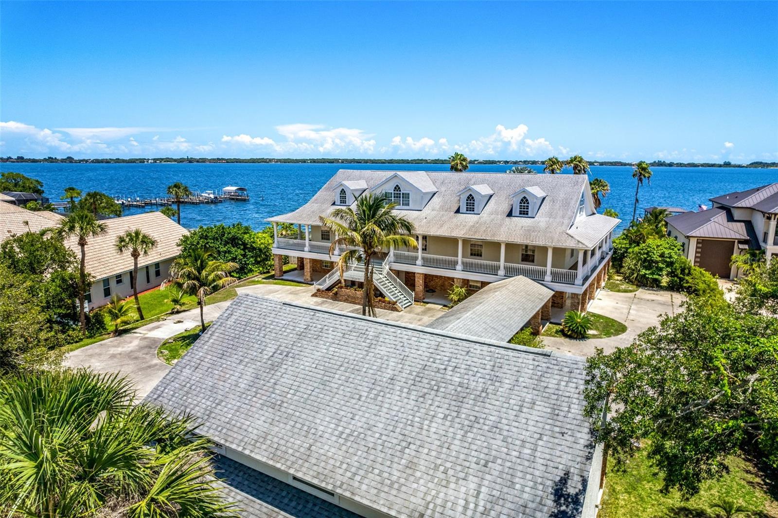 Ampla propriedade à beira-mar com vistas panorâmicas sobre o rio Indiano! Experimente o auge da vida na Flórida e a versatilidade incomparável nesta impressionante propriedade de 3 andares às margens do Indian River. Com 8 quartos e 7 banheiros, esta casa foi projetada para acomodar uma variedade de ambientes e estilos de vida. O primeiro andar possui uma suíte de sogros/hóspedes de 2 quartos/1 banheiro e uma suíte babá/adolescente de 1 quarto/1 banheiro com acesso à casa principal, destacando o design magistral. Cada espaço residencial é privado e acessível, tornando-o ideal para famílias multigeracionais ou para aquelas com funcionários residentes. Embora os acabamentos interiores mantenham um charme clássico, a enorme sala e a cozinha foram projetadas para entretenimento em grande escala. Uma ampla ilha de cozinha funciona como o coração da casa, rodeada por várias janelas que inundam o espaço com luz natural e oferecem vistas desafogadas sobre o rio, enquanto duas cozinhas adicionais tornam este imóvel verdadeiramente único. A casa principal apresenta uma elegância atemporal com armários e pisos em madeira maciça de carvalho, bem como a porta principal que dá acesso à escada de entrada do hall de entrada de 3 andares. O quarto principal possui um amplo banheiro com chuveiro com vários jatos, uma banheira elevada, uma pia dupla, além de armários para ele e para ela. No terceiro andar, encontre dois amplos quartos com loft de separação que podem ser adaptados às suas necessidades, seja home theater, academia ou quartos adicionais. Uma varanda envolvente no segundo andar oferece vistas deslumbrantes e uma experiência de vida interna e externa perfeita. Situado em um terreno de 1,01 acre com 135 pés de frente serena para o Indian River, descubra um santuário com uma cozinha ao ar livre, bem como uma piscina subterrânea para o máximo em relaxamento e entretenimento. Utilize a garagem anexa para três carros, além do pórtico frontal que leva a estacionamento adicional e armazenamento dentro da garagem individual para 5 a 6 carros/RV, alta o suficiente para adicionar uma oficina no segundo andar. A conveniência e a localização são apenas outro bônus adicional, estando próximo da Pineda Causeway, das praias locais, dos restaurantes, das principais rodovias, da Base da Força Espacial Patrick, de grandes corporações, incluindo Northrop Grumman e Harris, bem como do Cabo Canaveral. Esta propriedade não é apenas uma casa; é um investimento num estilo de vida que valoriza a tranquilidade da vida ribeirinha e a alegria das atividades ao ar livre. Não deixe esta oportunidade desaparecer. Agende uma exibição privada e experimente em primeira mão o fascínio desta joia à beira-rio.
