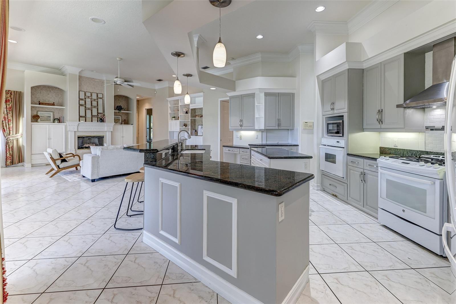 Impressionante propriedade à beira do lago em beco sem saída privado Esta casa de 5 camas de 5 camas personalizadas e 4 de banho fica em um lote de ½ acres com fachada direta do lago. As características incluem um telhado de ladrilhos, paisagismo exuberante, garagem de 3 carros grandes e garagem circular. No interior, desfrute de tetos de 12 pés com moldagem por tripla coroa e vistas amplas do oásis ao ar livre. A piscina e o spa, rastreados, apresentam 4 cachoeiras, além de uma cozinha de verão e pátio coberto perfeito para entretenimento. A sala de jantar formal assenta 14 com armários embutidos, enquanto a espaçosa sala da família oferece uma lareira, embutido e controles deslizantes para a piscina. A suíte primária inclui portas francesas para a piscina, armários duplos e uma banheira jato. Todos os quartos são generosamente dimensionados com armários grandes. Luxo, privacidade e à beira do lago Living esta casa tem tudo.