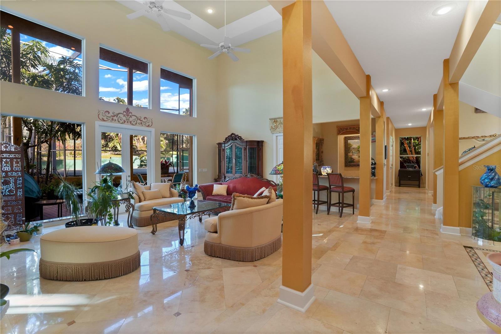 Bem-vindo a esta propriedade deslumbrante localizada na comunidade Still Water, em South Merrit Island. Esta impressionante casa de 4 quartos, 3 banheiros e 3.739 pés quadrados se expande em um terreno de um acre e possui sua própria quadra de tênis de saibro, piscina subterrânea luxuosa em forma de lagoa, spa wi-fi tranquilo de grandes dimensões e doca comunitária privada. Ao entrar na casa, você é saudado por uma planta aberta, tetos abobadados de catedral, mármore travertino, janelas do chão ao teto e luz natural que se espalha por todo o espaço. A área de estar tem vista para a varanda e possui uma lareira a gás emoldurada com prateleiras embutidas personalizadas e um bar pessoal. A cozinha recém-renovada de 2023 fica ao lado da área de estar, tornando esta a área perfeita para férias, e possui bancadas de quartzo, backsplash de pedra personalizado, micro-ondas embutido, muito espaço de armazenamento, uma copa e, claro, um lindo quintal. visualizações. Além disso, o primeiro andar é completo com escritório em estilo executivo, espaço para refeições formais e todos os quartos de hóspedes. Siga a escada até o segundo andar, onde você será recebido por uma varanda elevada com vista para o primeiro andar. Aqui você encontrará o quarto principal que vem completo com sua própria varanda externa privativa, closet, bem como armários personalizados e um banheiro recém-reformado com banheira de imersão e box amplo. Quando você não estiver relaxando em seu retiro tranquilo ou aproveitando o pôr do sol no cais privado de sua comunidade, não deixe de mergulhar no estilo de vida da Ilha Merritt e da NASA. Com os lançamentos de foguetes acontecendo agora mais do que nunca, você certamente verá mais do que alguns em seu quintal. Novo telhado de telha 2023. Isto é mais do que uma casa; é um estilo de vida. Não perca a oportunidade de experimentar o melhor da vida à beira-mar em Merritt Island. Agende sua exibição privada hoje mesmo!