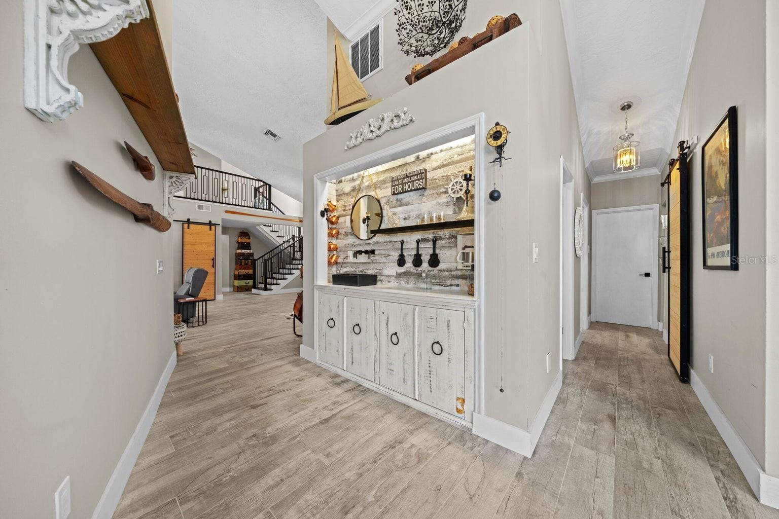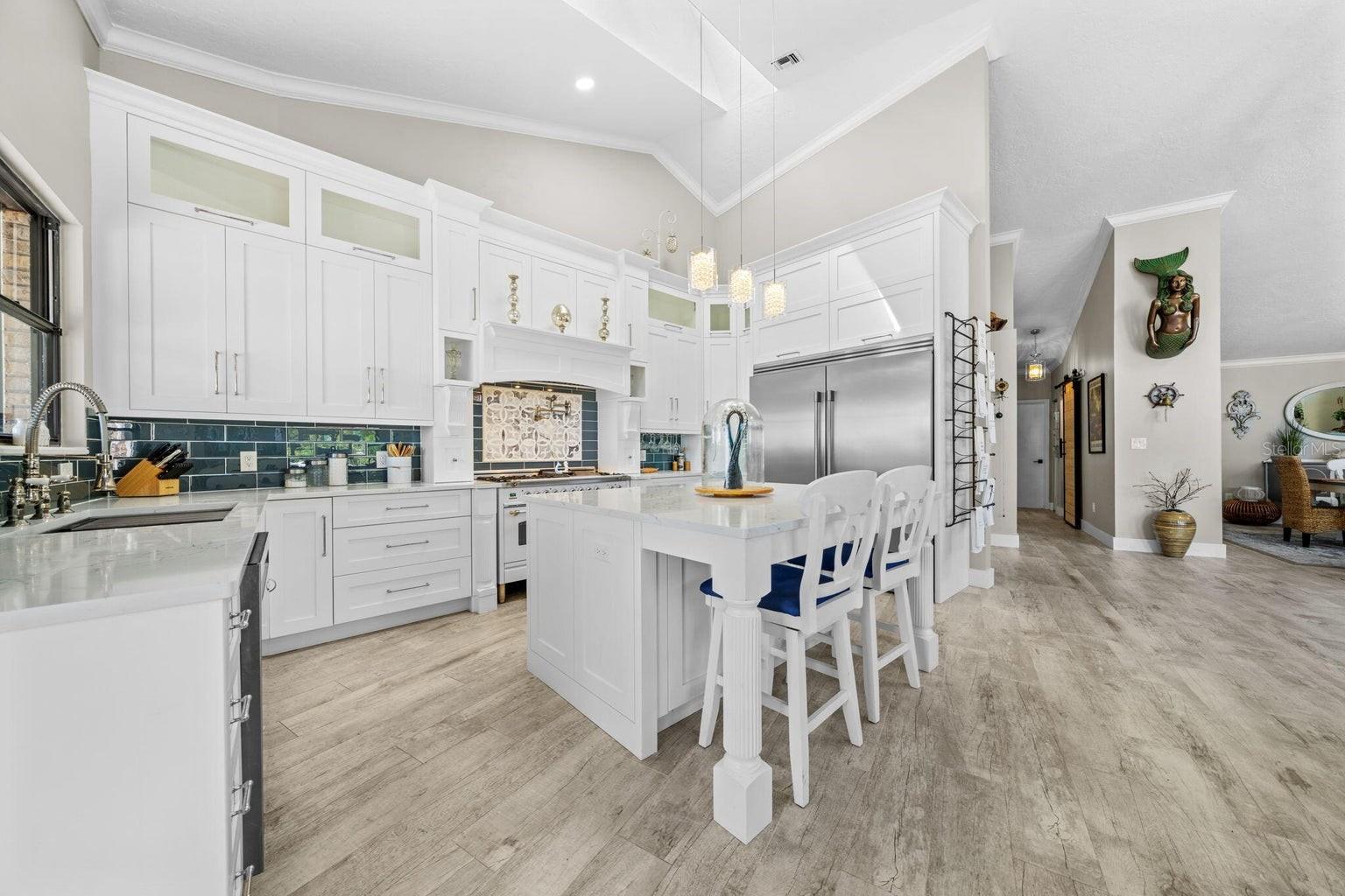 Estamos de volta e melhores do que nunca! Paredão totalmente novo, atualizações elegantes, acabamentos de alta qualidade! Esta linda casa à beira-rio exala uma atmosfera relaxante, mas opulenta, perfeita para entretenimento e vida cotidiana. Situada em quase meio acre de propriedade de primeira linha em South Merritt Island, esta casa de 3 quartos/3,5 banheiros fica a menos de 10 minutos de mais de 5 acessos gratuitos à praia. A remodelação recente apresenta melhorias mais recentes, como piso de porcelana Ashford, balcões de quartzo, eletrodomésticos de luxo, pintura interna nova, iluminação atualizada, produtos de banho contemporâneos, ferragens de porta atualizadas, lareira a gás e duas portas de celeiro chiques. Recursos adicionais desejáveis incluem duas docas (um elevador de 6.500 lb), uma doca para lançar caiaques e pranchas de remo, uma varanda com piscina e spa (nova bomba 2021), um telhado de telha de alumínio de 50 anos, cofre no chão do quarto, um novo A/ C, e persianas elétricas contra furacões. Mudança maravilhosa!