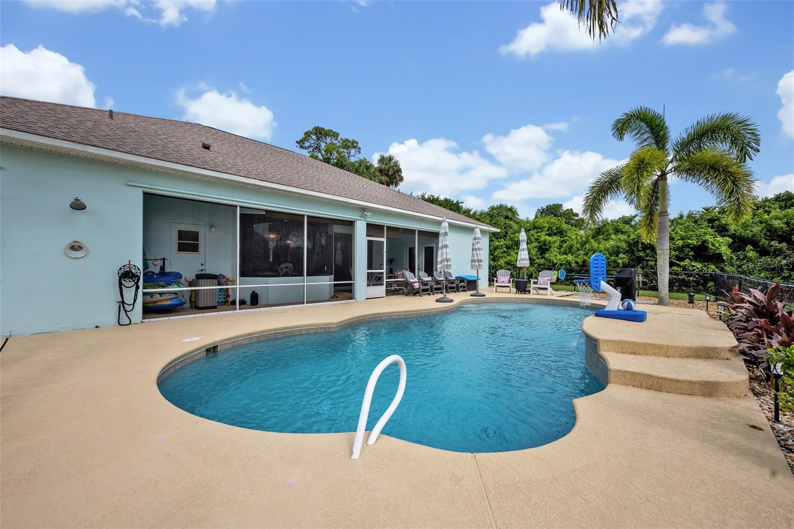 **Bem-vindo à 4220 Savannah Trail, Merritt Island, Flórida!** Faça de cada dia férias nesta casa lindamente atualizada de 4 quartos e 2 banheiros que oferece a combinação perfeita de comodidades modernas e charme costeiro. Entre para descobrir uma planta baixa e aberta com armários totalmente novos e bancadas de quartzo na cozinha, perfeitamente complementadas por luminárias atualizadas em toda a casa. Os espaços de estar são projetados para oferecer conforto e estilo, proporcionando um cenário ideal para relaxar e se divertir. O espaço exterior é um verdadeiro retiro. Aproveite a piscina cintilante com uma nova bomba de piscina, célula de sal, luz de piscina e um sistema remoto Hayward automatizado para controle sem esforço. O novo paisagismo aumenta a atratividade da propriedade, e o quintal oferece uma vista tranquila para o lago, várias árvores frutíferas e um divertido poço de ferradura para diversão ao ar livre. Você também pode apreciar a bela vista do lançamento de foguetes direto do seu quintal, adicionando um toque único e emocionante à sua casa. A casa também possui novos eletrodomésticos de aço inoxidável e novos abridores de portas de garagem com garantia vitalícia. Com um teto 2020 e unidade AC, junto com pintura externa 2022, você pode morar com tranquilidade. Localizada em um bairro desejável, a apenas 15 minutos da praia e do Cabo, a 10 minutos da rampa para barcos do parque Kelly, convenientemente localizada perto de lojas e escolas de primeira linha, esta casa é imperdível. Não perca a oportunidade de possuir esta casa deslumbrante e atualizada em Merritt Island!