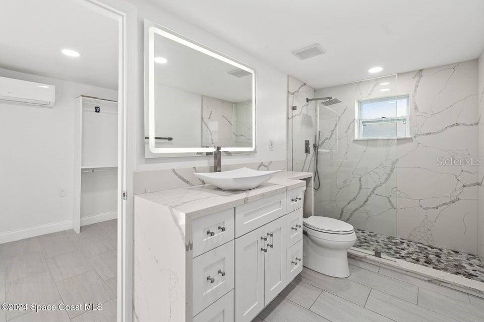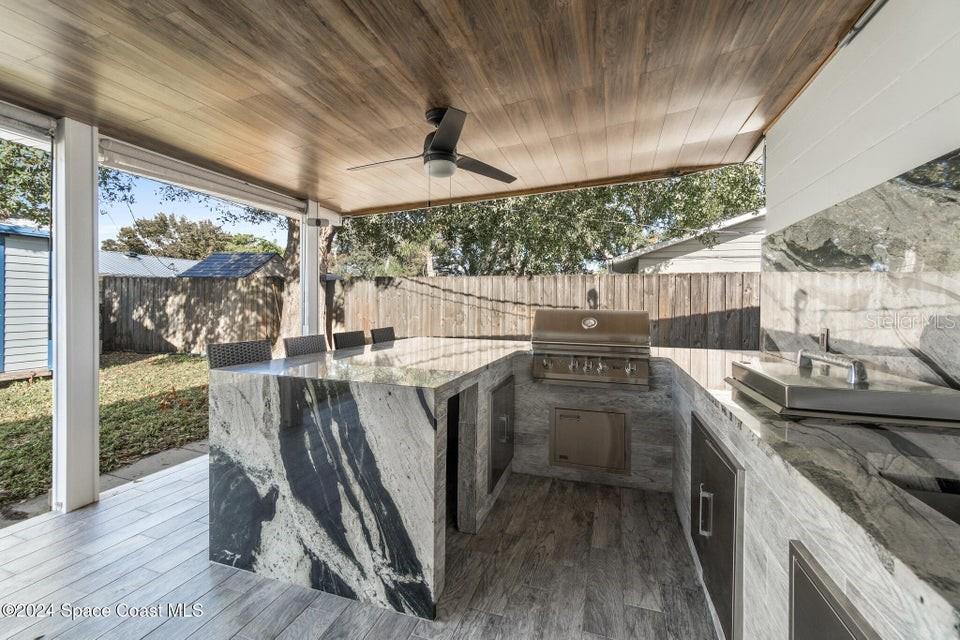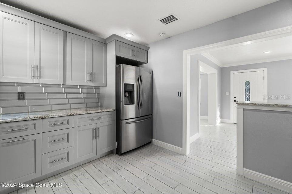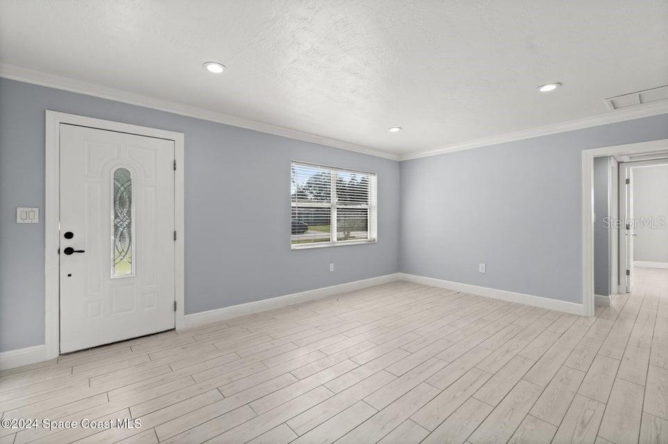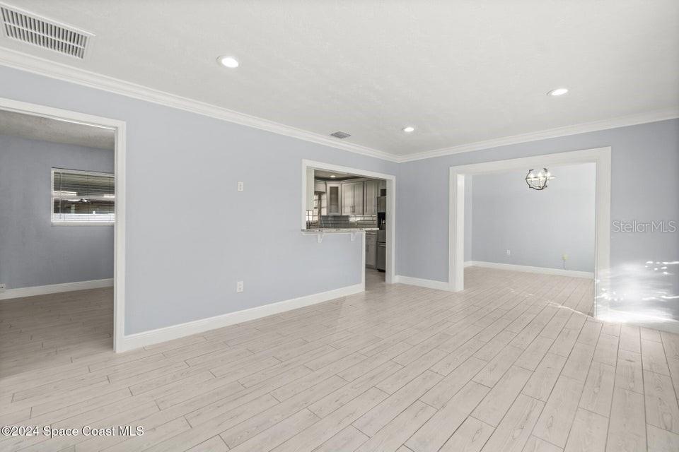 Esta casa de 3 quartos/2 banheiros lindamente renovada oferece luxo moderno e conforto em uma localização ideal. Com piso de madeira totalmente novo, acessórios elegantes e portas de celeiro deslumbrantes, esta propriedade exala charme e sofisticação. O quarto principal possui um enorme closet com prateleiras embutidas, oferecendo amplo armazenamento. Ambos os banheiros foram completamente atualizados com luxuosos acabamentos em mármore e backsplashes elegantes, enquanto a cozinha possui bancadas, backsplash e eletrodomésticos de última geração totalmente novos, perfeitos para cozinhar e se divertir. O telhado é novo, proporcionando tranquilidade por muitos anos. Saia para desfrutar de um amplo quintal com pátio coberto e uma nova cozinha externa, ideal para realizar reuniões ou simplesmente relaxar em seu oásis privado. Além disso, um galpão espaçoso oferece armazenamento extra. Localizada na área muito procurada de Merritt Island, esta casa fica a poucos minutos de restaurantes locais, áreas comerciais e a apenas 10 minutos da praia.