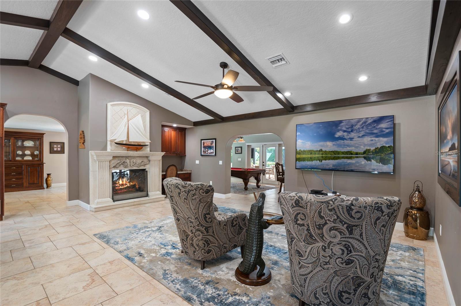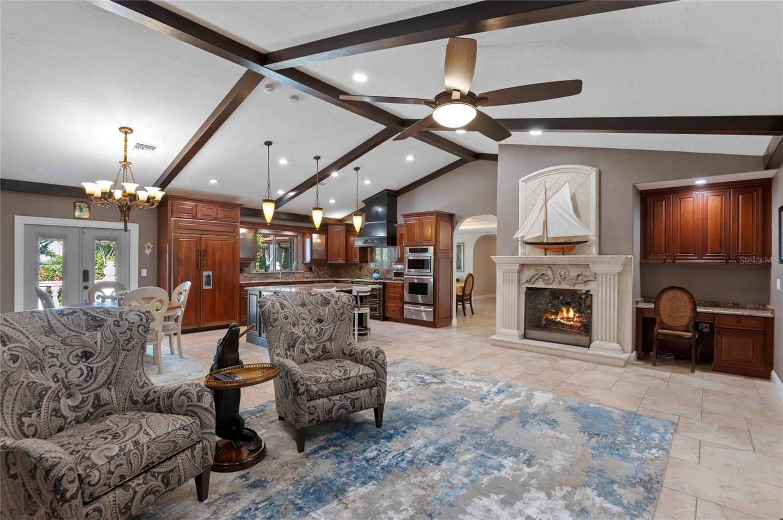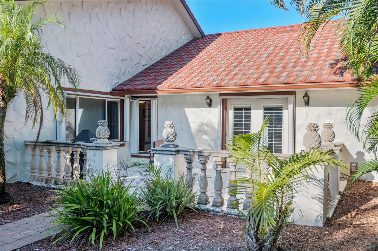 Seu paraíso particular na Ilha Merritt o aguarda! Esta propriedade fechada à beira-mar ocupa mais de 2 acres entre os rios Banana e Indian. A propriedade inclui uma longa entrada ladeada por palmeiras reais, jardins paisagísticos profissionais e um oásis no quintal com piscina e toneladas de melhorias! Dentro da casa térrea em estilo mediterrâneo, você encontrará pisos de porcelana, arcos, tetos de bandeja e lareiras de pedra ornamentadas. A cozinha é aberta para a sala de estar e possui tetos abobadados, armários de cerejeira, balcões de granito (além de um lindo backsplash de laje) e uma enorme ilha central com assentos no topo do bar. A poucos passos de distância, você pode jantar ao ar livre e apreciar a vista para o mar no pátio de pedra da frente. A sala familiar/sala na parte traseira da planta oferece bar completo e acesso ao deck da piscina. A área de piscina e spa protegida é um local perfeito para entretenimento, completa com cozinha ao ar livre e áreas de estar. Além do recinto, a propriedade inclui um exuberante quintal, uma área de pergolado/fogueira e muitas árvores frutíferas (mamão, goiabeira, bananeira, limão, manga e abacate) que criam um muro de privacidade. A garagem também possui 3 estações de carregamento Tesla. Através da Tropical Trail, você pode construir um cais e navegar com seu barco por inúmeras praias ao longo da costa. O requintado quarto principal possui lareira e acesso a um pátio privado. O banheiro impressiona com uma pia dupla em cerejeira, um enorme chuveiro personalizado e um closet do tamanho de um quarto. A planta bem projetada desta casa coloca todos os quartos em cantos opostos para máxima privacidade, e cada quarto tem acesso a um banheiro. Na verdade, atrás da garagem para mais de 3 carros (sem escadas!), você encontrará quartos de hóspedes privados com entrada separada – adequados para famílias multigeracionais ou hóspedes de curta duração. Merritt Island é uma fatia exclusiva do Sunshine State, dividida em zonas para escolas de primeira linha e localizada a poucos minutos (de carro) de shopping centers, praias e do Cabo Canaveral. O trabalho artesanal necessário para a construção desta propriedade de mais de 4.000 pés quadrados em Merritt Island deve ser visto pessoalmente. Agende seu passeio o quanto antes.