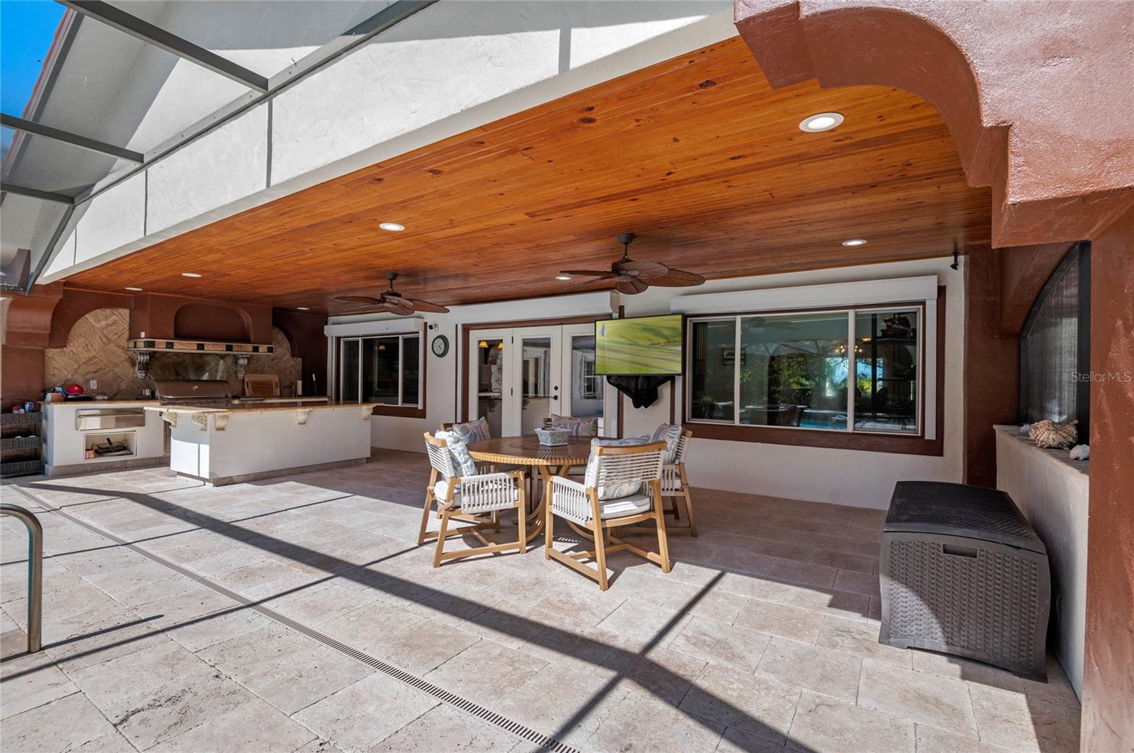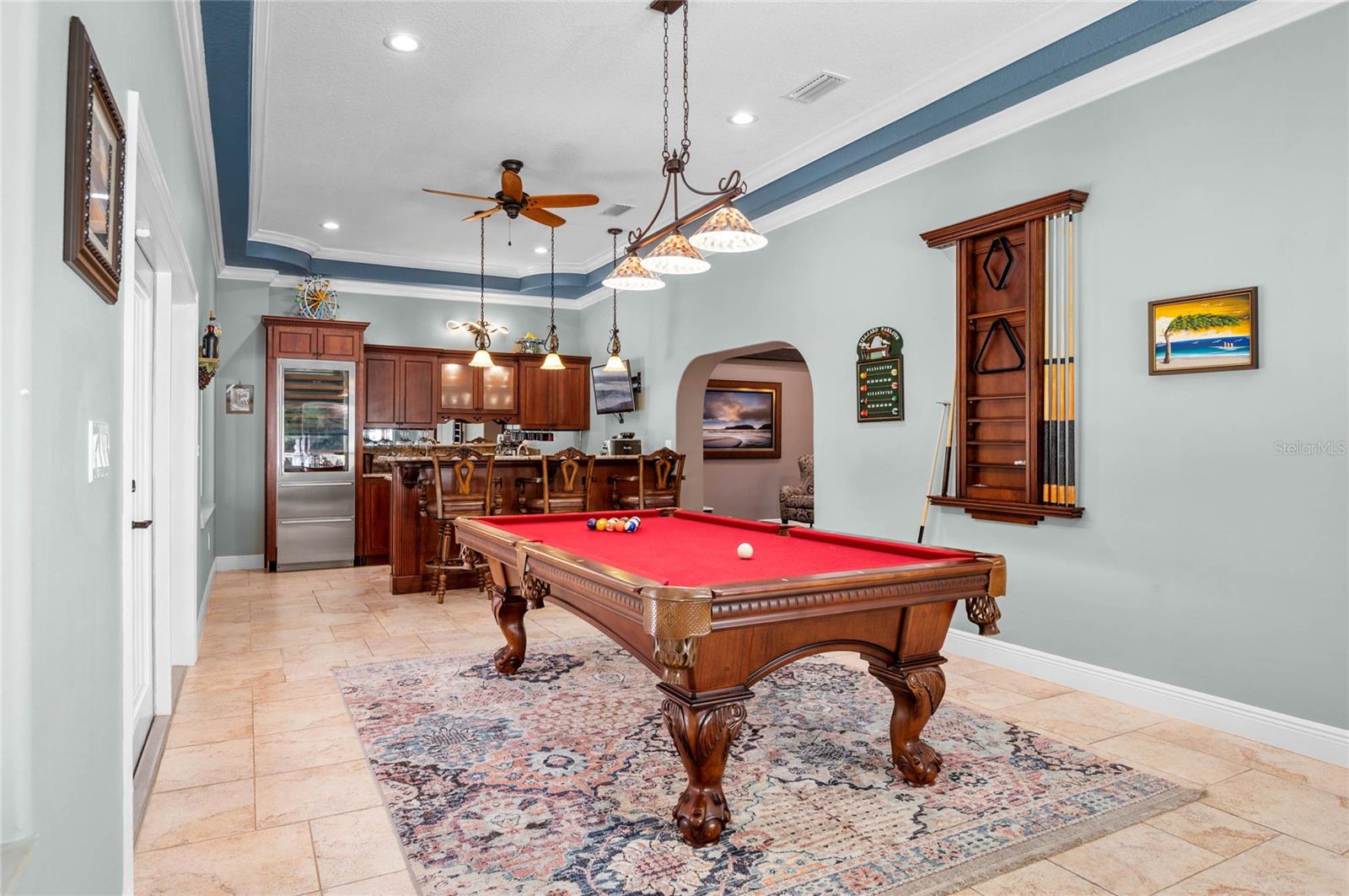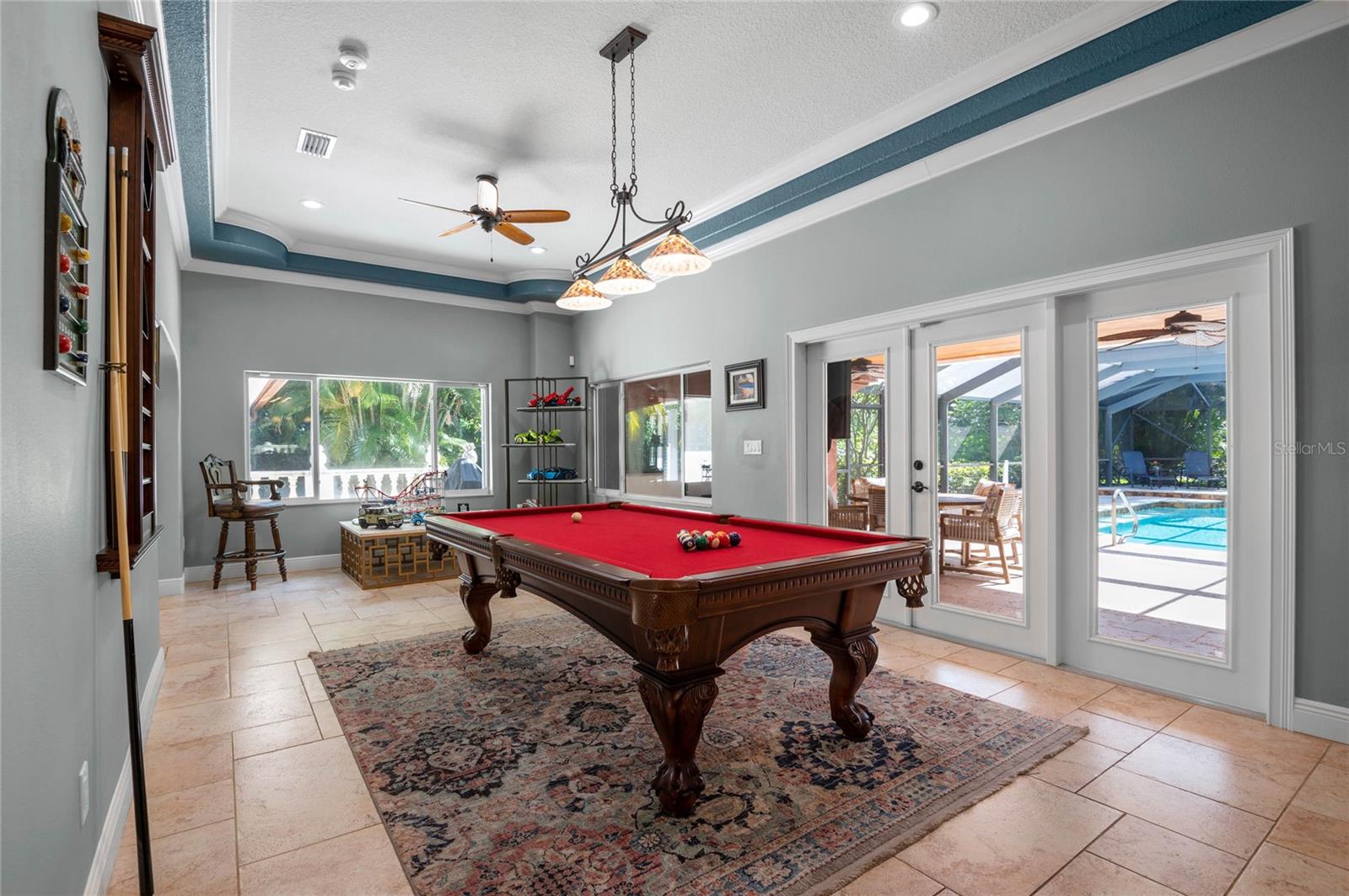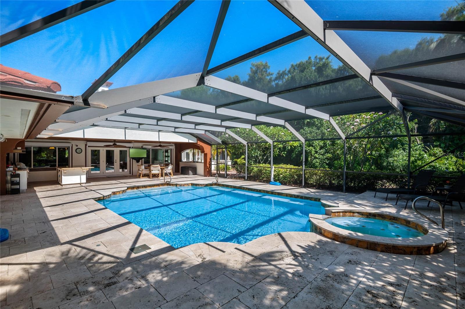 Seu paraíso particular na Ilha Merritt o aguarda! Esta propriedade fechada à beira-mar ocupa mais de 2 acres entre os rios Banana e Indian. A propriedade inclui uma longa entrada ladeada por palmeiras reais, jardins paisagísticos profissionais e um oásis no quintal com piscina e toneladas de melhorias! Dentro da casa térrea em estilo mediterrâneo, você encontrará pisos de porcelana, arcos, tetos de bandeja e lareiras de pedra ornamentadas. A cozinha é aberta para a sala de estar e possui tetos abobadados, armários de cerejeira, balcões de granito (além de um lindo backsplash de laje) e uma enorme ilha central com assentos no topo do bar. A poucos passos de distância, você pode jantar ao ar livre e apreciar a vista para o mar no pátio de pedra da frente. A sala familiar/sala na parte traseira da planta oferece bar completo e acesso ao deck da piscina. A área de piscina e spa protegida é um local perfeito para entretenimento, completa com cozinha ao ar livre e áreas de estar. Além do recinto, a propriedade inclui um exuberante quintal, uma área de pergolado/fogueira e muitas árvores frutíferas (mamão, goiabeira, bananeira, limão, manga e abacate) que criam um muro de privacidade. A garagem também possui 3 estações de carregamento Tesla. Através da Tropical Trail, você pode construir um cais e navegar com seu barco por inúmeras praias ao longo da costa. O requintado quarto principal possui lareira e acesso a um pátio privado. O banheiro impressiona com uma pia dupla em cerejeira, um enorme chuveiro personalizado e um closet do tamanho de um quarto. A planta bem projetada desta casa coloca todos os quartos em cantos opostos para máxima privacidade, e cada quarto tem acesso a um banheiro. Na verdade, atrás da garagem para mais de 3 carros (sem escadas!), você encontrará quartos de hóspedes privados com entrada separada – adequados para famílias multigeracionais ou hóspedes de curta duração. Merritt Island é uma fatia exclusiva do Sunshine State, dividida em zonas para escolas de primeira linha e localizada a poucos minutos (de carro) de shopping centers, praias e do Cabo Canaveral. O trabalho artesanal necessário para a construção desta propriedade de mais de 4.000 pés quadrados em Merritt Island deve ser visto pessoalmente. Agende seu passeio o quanto antes.