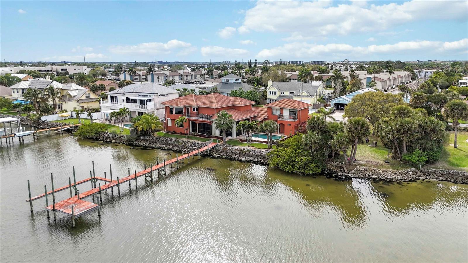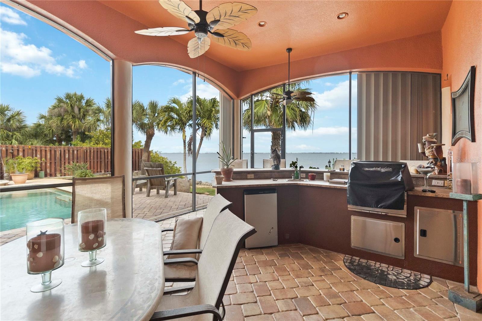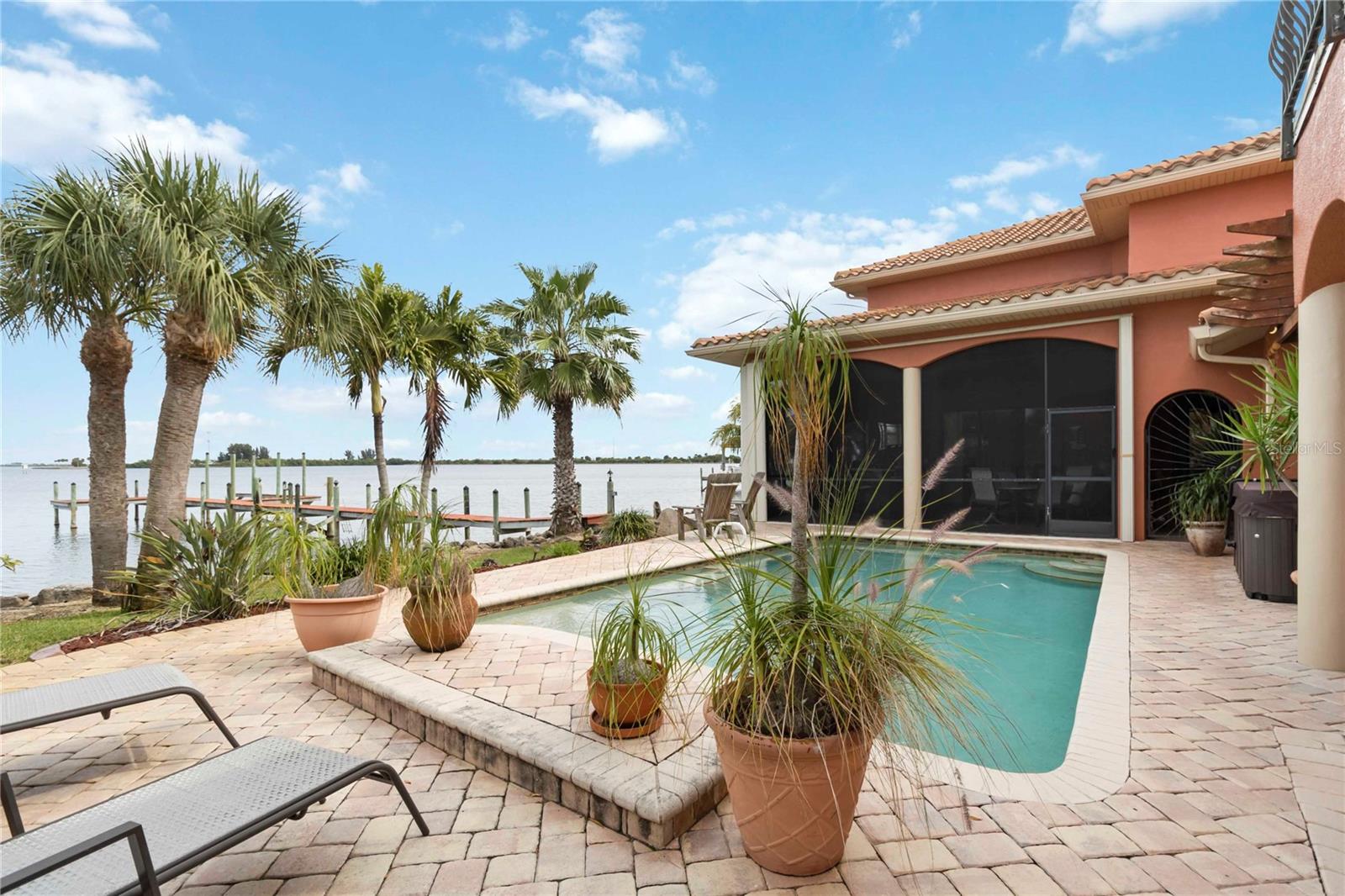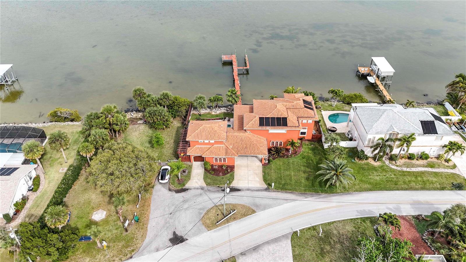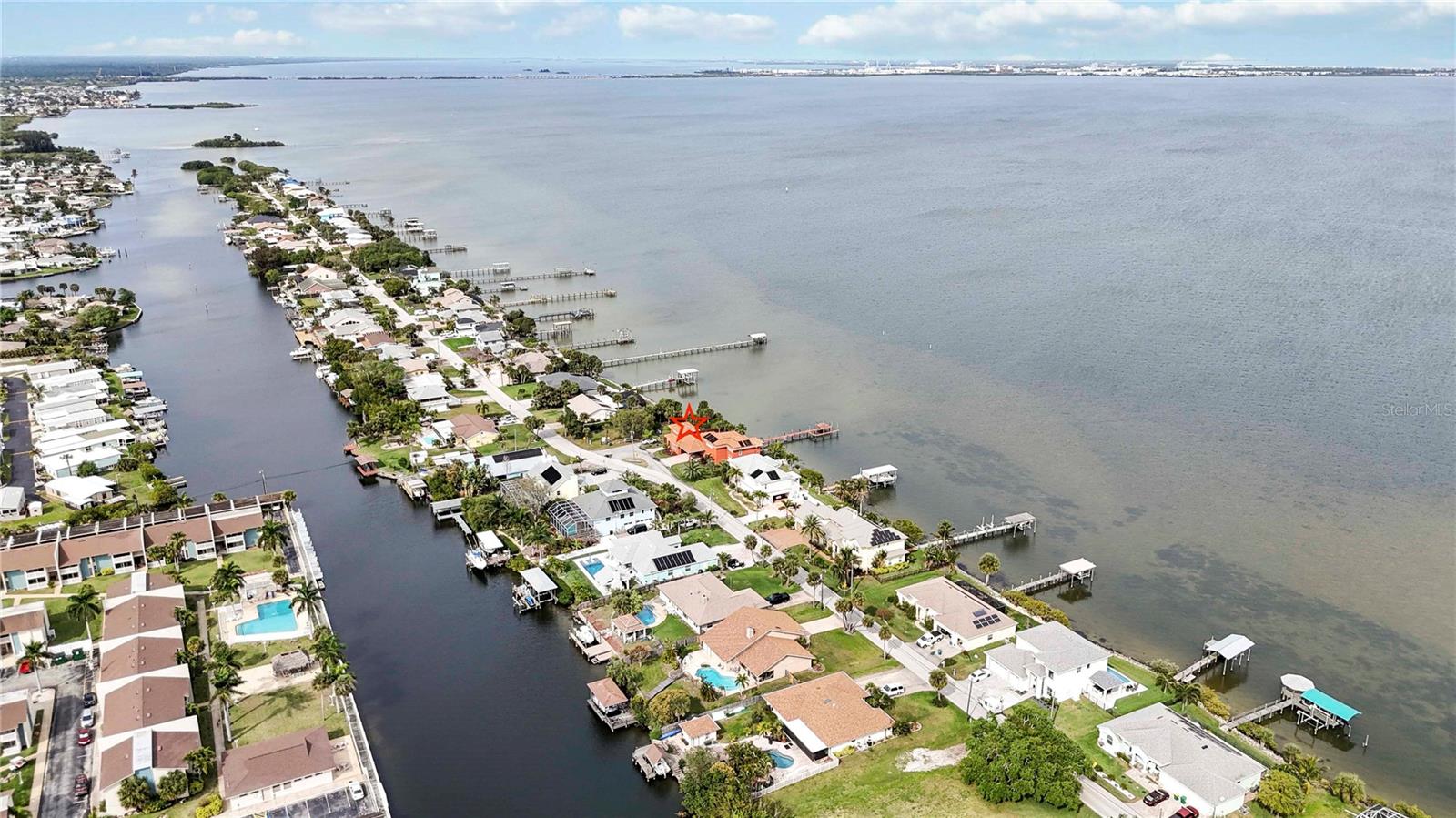 Espere até ver esta VISTA! Vistas amplas dos navios de cruzeiro ao norte e Cocoa Beach ao sul! O nascer do sol é de tirar o fôlego! Casa de luxo construída sob medida diretamente no Rio Banana! Esta casa possui um lindo telhado de telha, 4 quartos, 4 banheiros, cozinha gourmet, tetos amplos, lareiras a gás (2) muito armazenamento extra, linda piscina com painéis solares e luxuosa cozinha externa coberta e blindada. O 4º quarto/casa de banho é uma ''suite'' no piso superior acima da garagem que poderá servir como um excelente escritório privado ou quarto de hóspedes, completo com a sua própria varanda privada com vista para a piscina e para o rio! A garagem é para 3 carros de grandes dimensões e tem entradas separadas para permitir espaço de trabalho extra. Vale ressaltar que esta casa foi construída 32 '' acima do topo da estrada e é sólida. A doca tem potência de 50amp, água e rampa para barco de 35'. A forma como esta casa está situada no lote oferece muita privacidade! Há também um pequeno parque ao norte.
